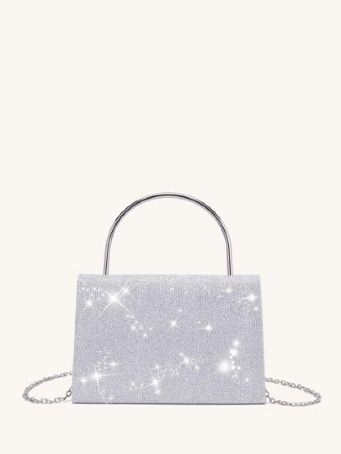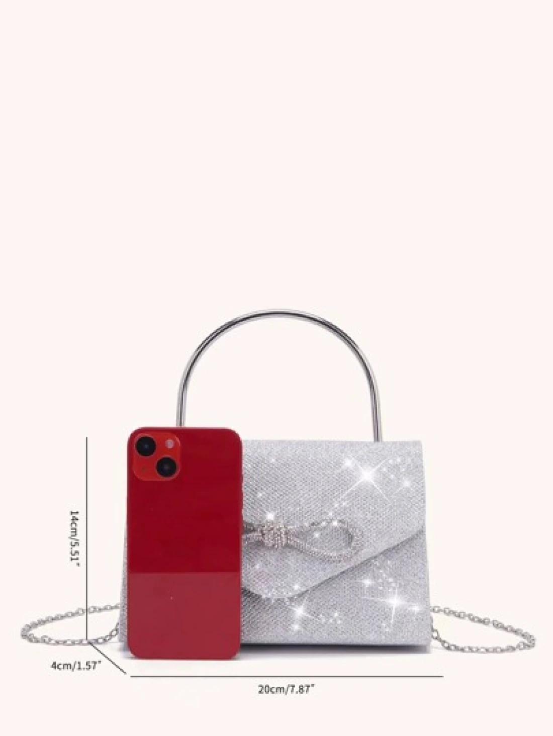 Glittering Evening Bag With Rhinestone Bow Decor Detachable Chain Strap Shoulder Bag Elegant Solid Color Party Clutch