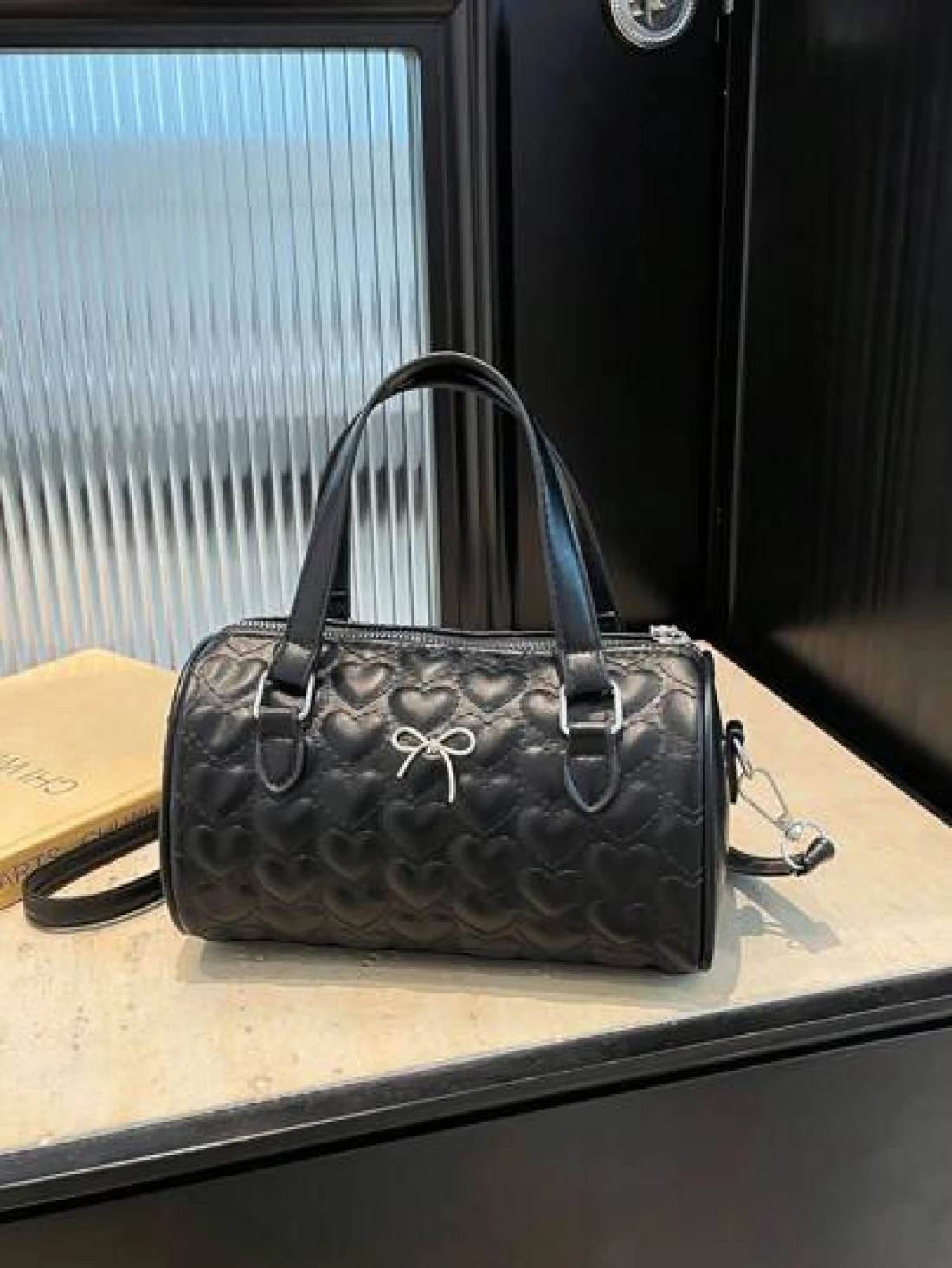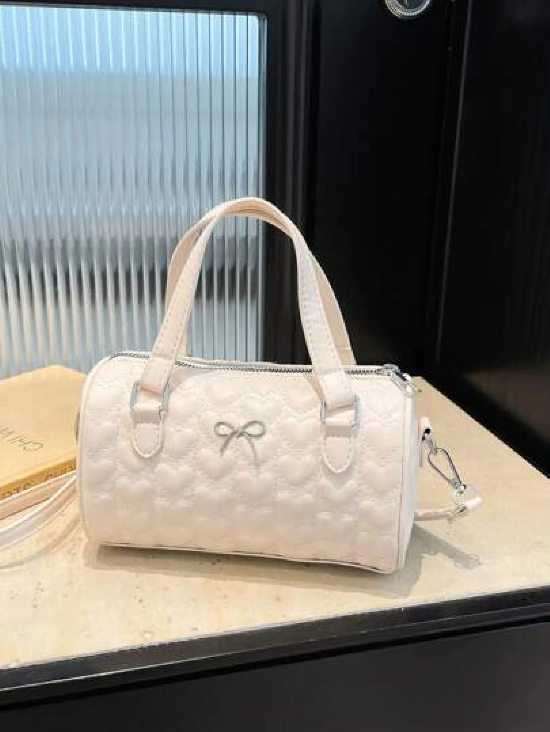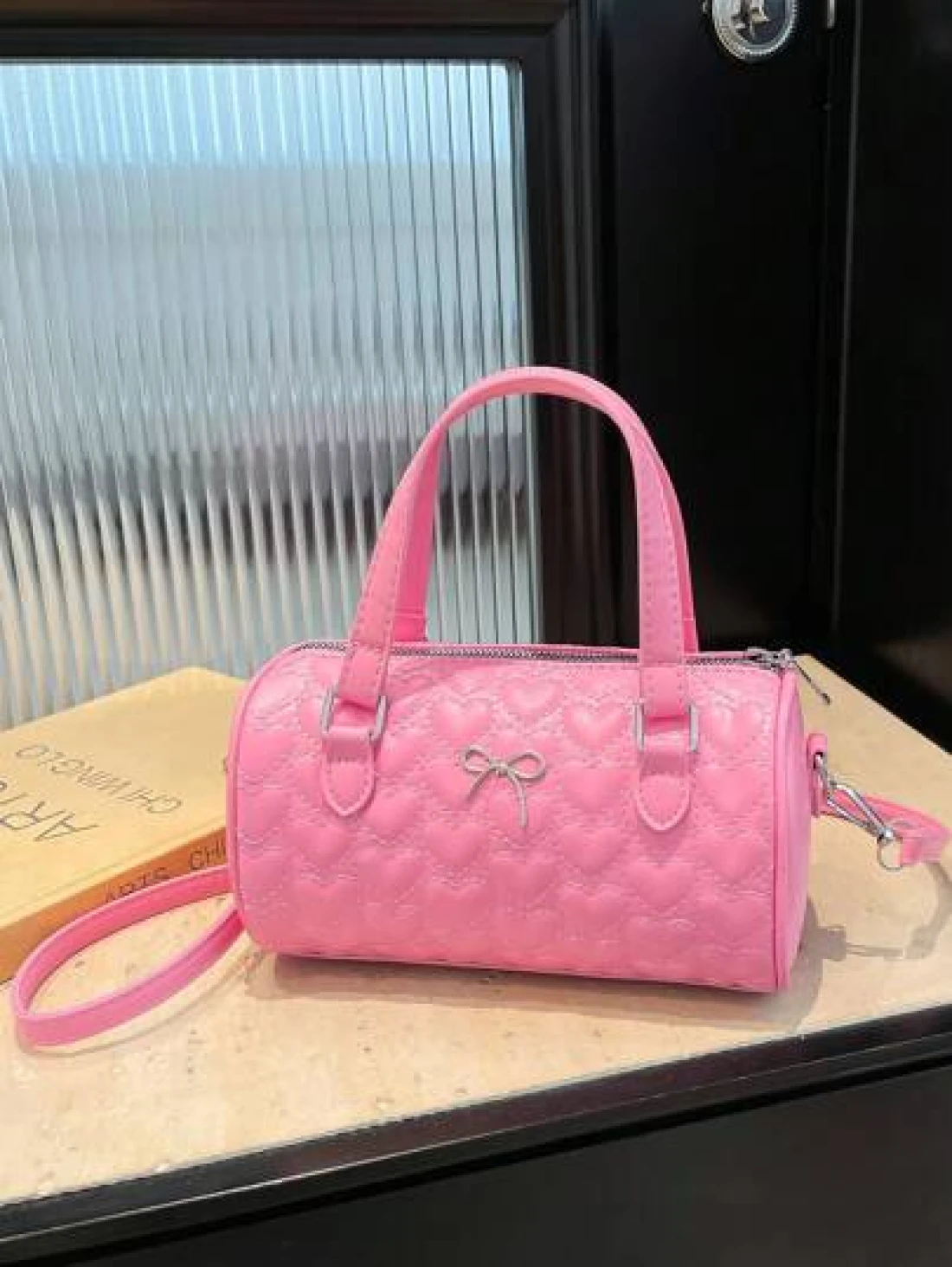 1 Pc New Design Girls Solid Color Heart Quilted Pattern Pu Material Barrel Shaped Handbag Adjustable Detachable Shoulder Strap For Crossbody Or Hand Carry Zipper Closure Stylish And Versatile For Outings Shopping Gatherings Or As A Gift For Friends