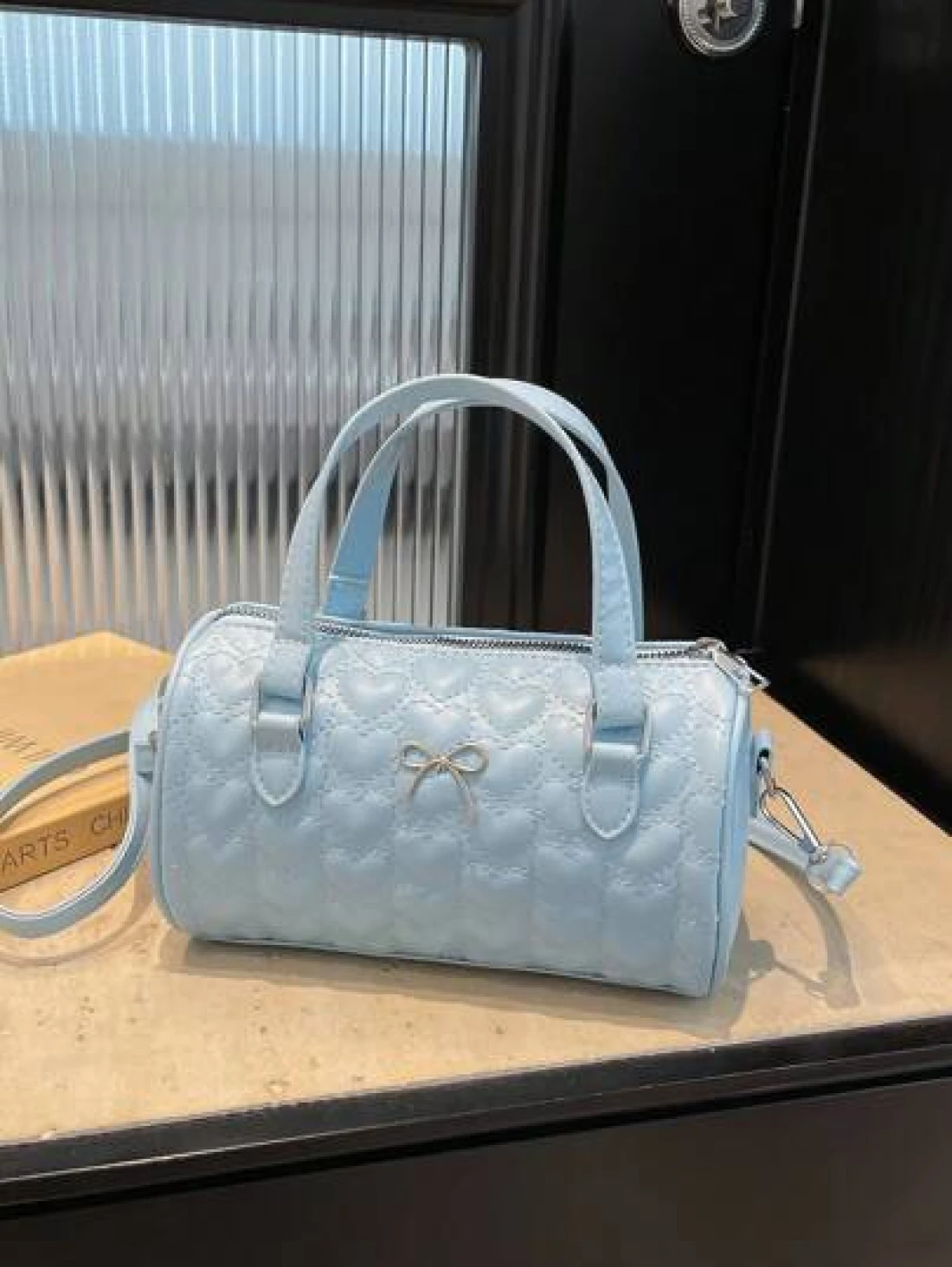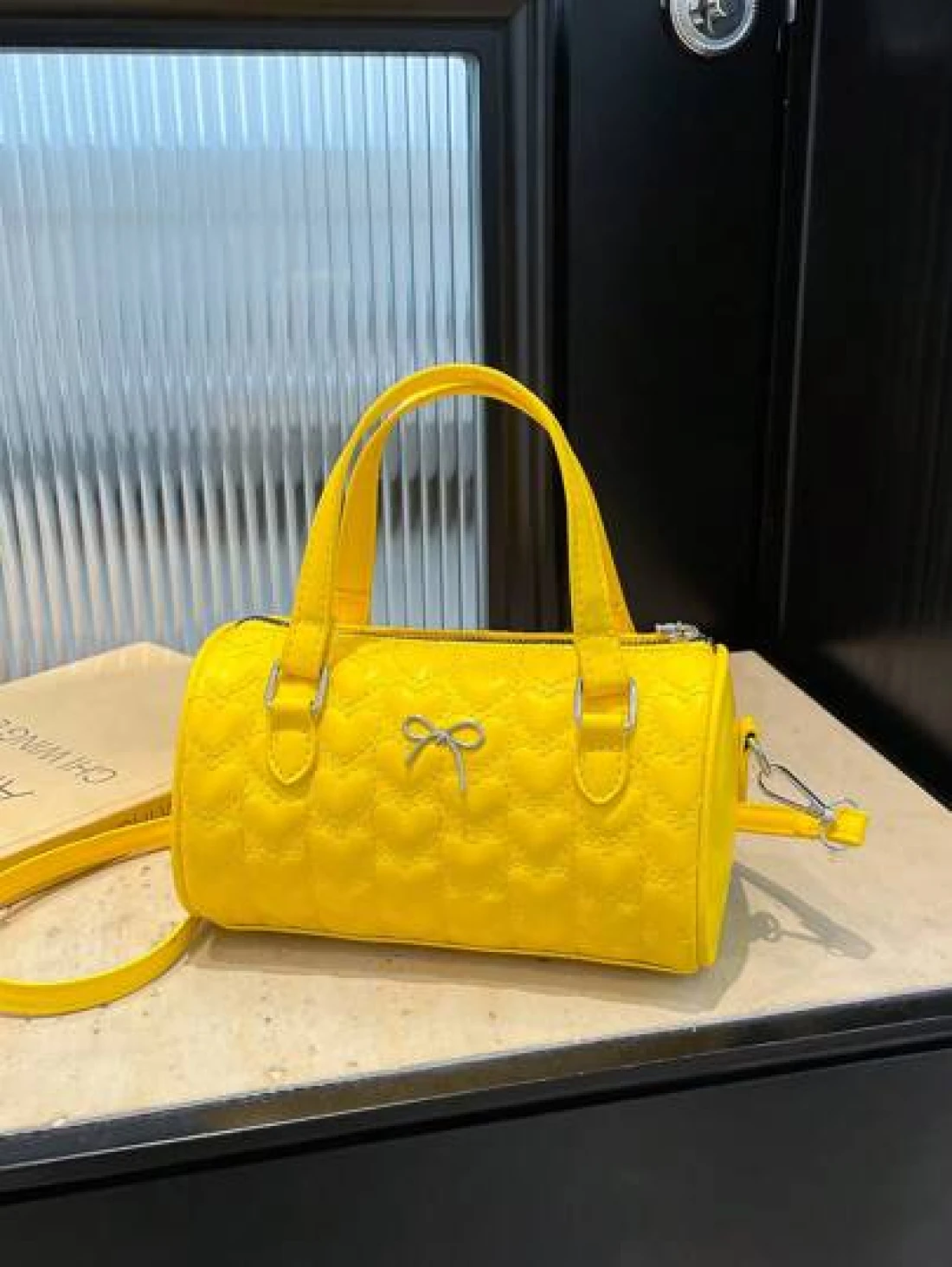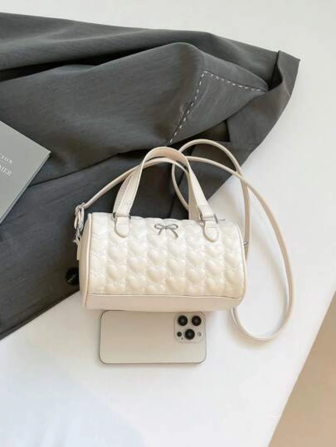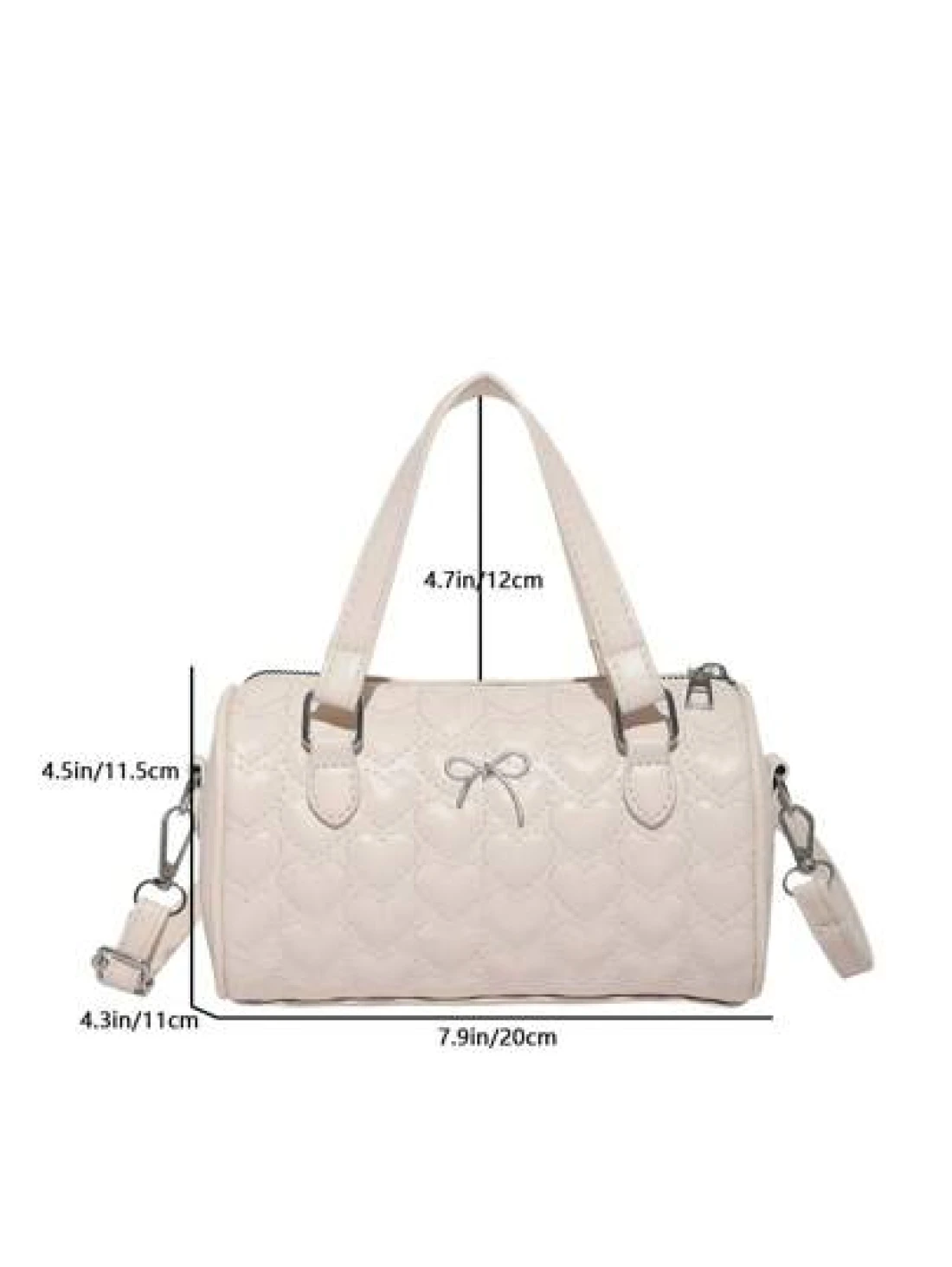 1 Pc New Design Girls Solid Color Heart Quilted Pattern Pu Material Barrel Shaped Handbag Adjustable Detachable Shoulder Strap For Crossbody Or Hand Carry Zipper Closure Stylish And Versatile For Outi
