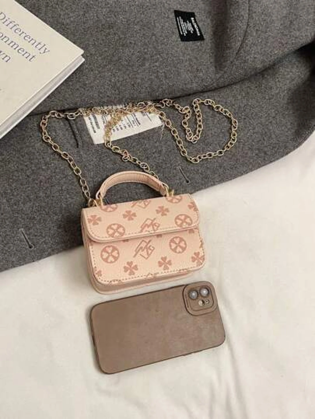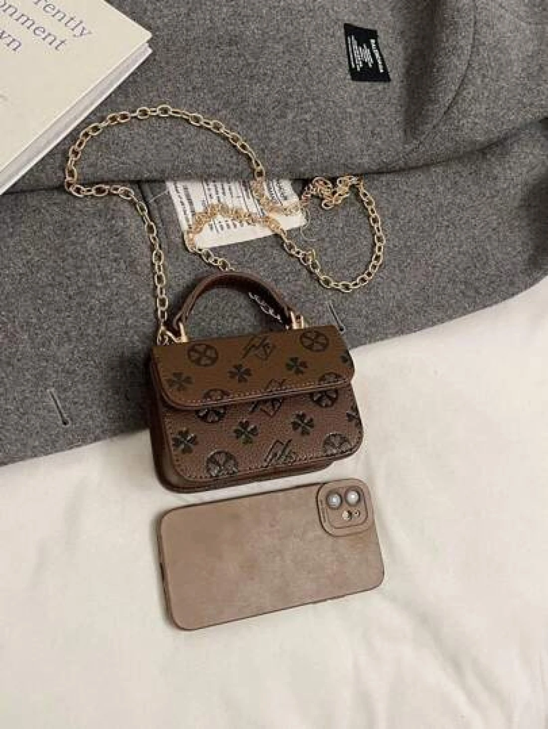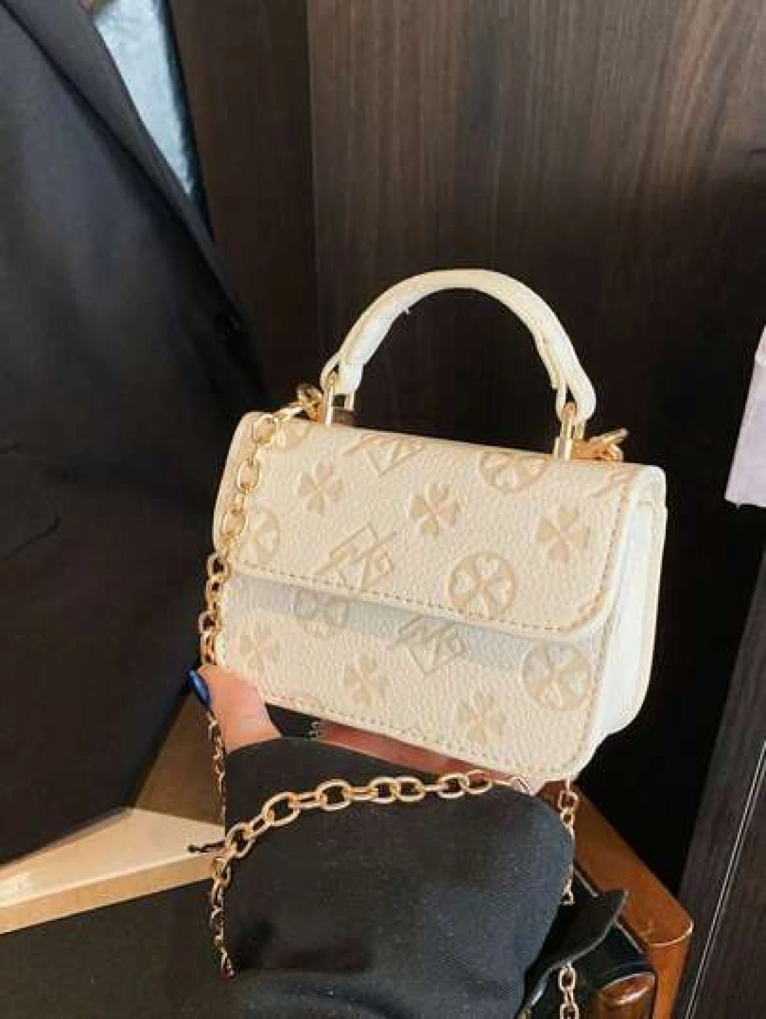 1 Piece Of Fashionable And Simple Printed Cute Handbag Letter Embossed Versatile Mini Handbag Small Square Bag Fashionable Lipstick Bag Pu Material With Fashionable Chain Shoulder Strap Magnetic Buckl