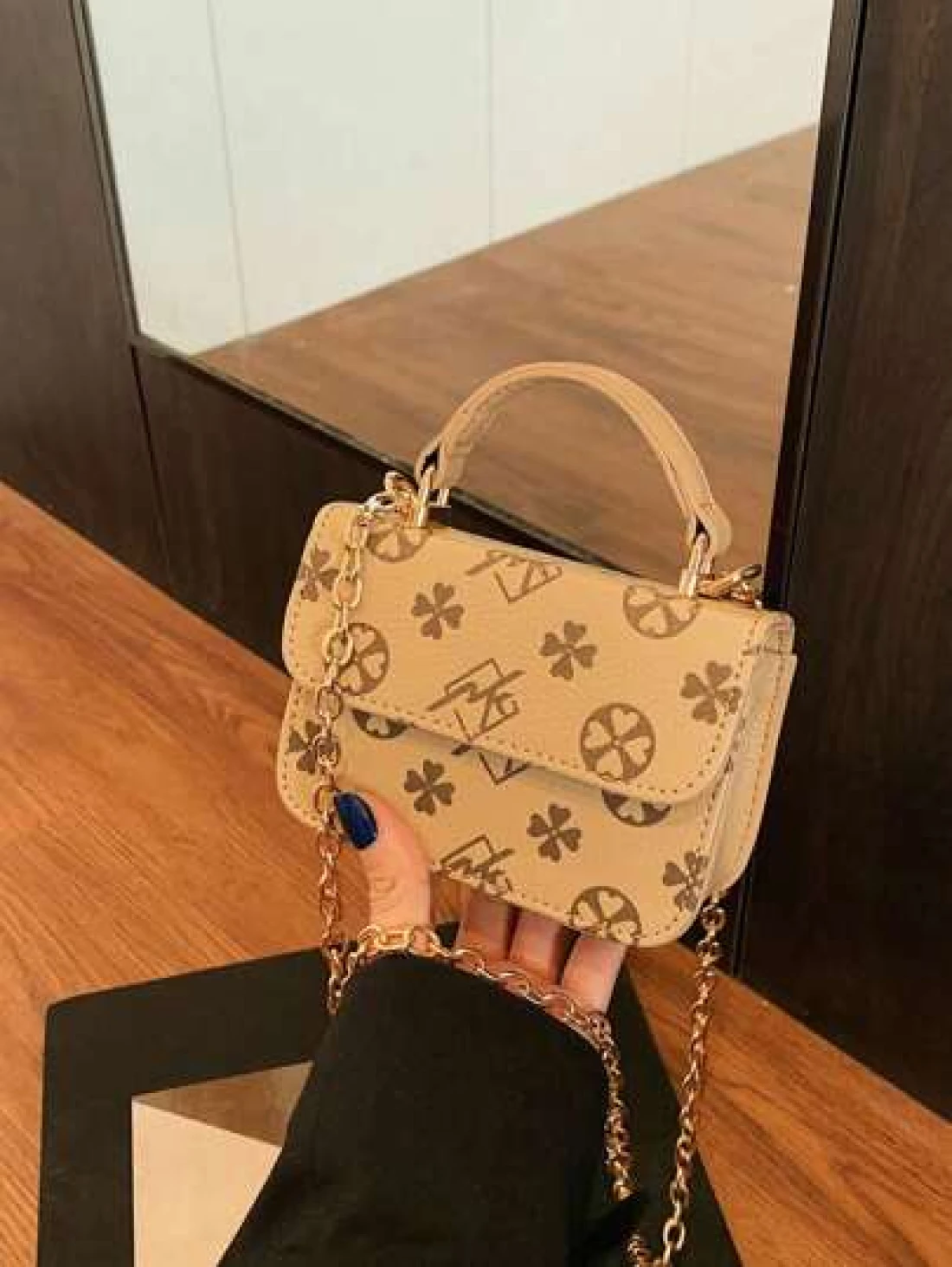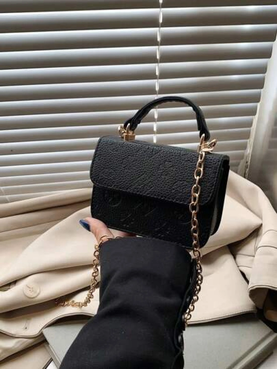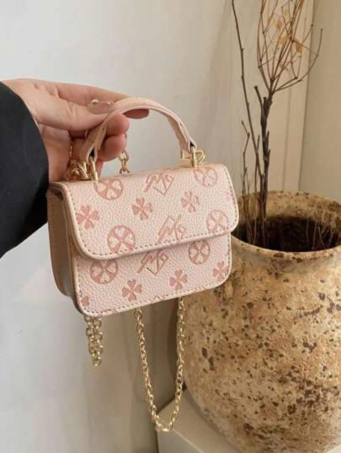 1 Piece Of Fashionable And Simple Printed Cute Handbag Letter Embossed Versatile Mini Handbag Small Square Bag Fashionable Lipstick Bag Pu Material With Fashionable Chain Shoulder Strap Magnetic Buckl