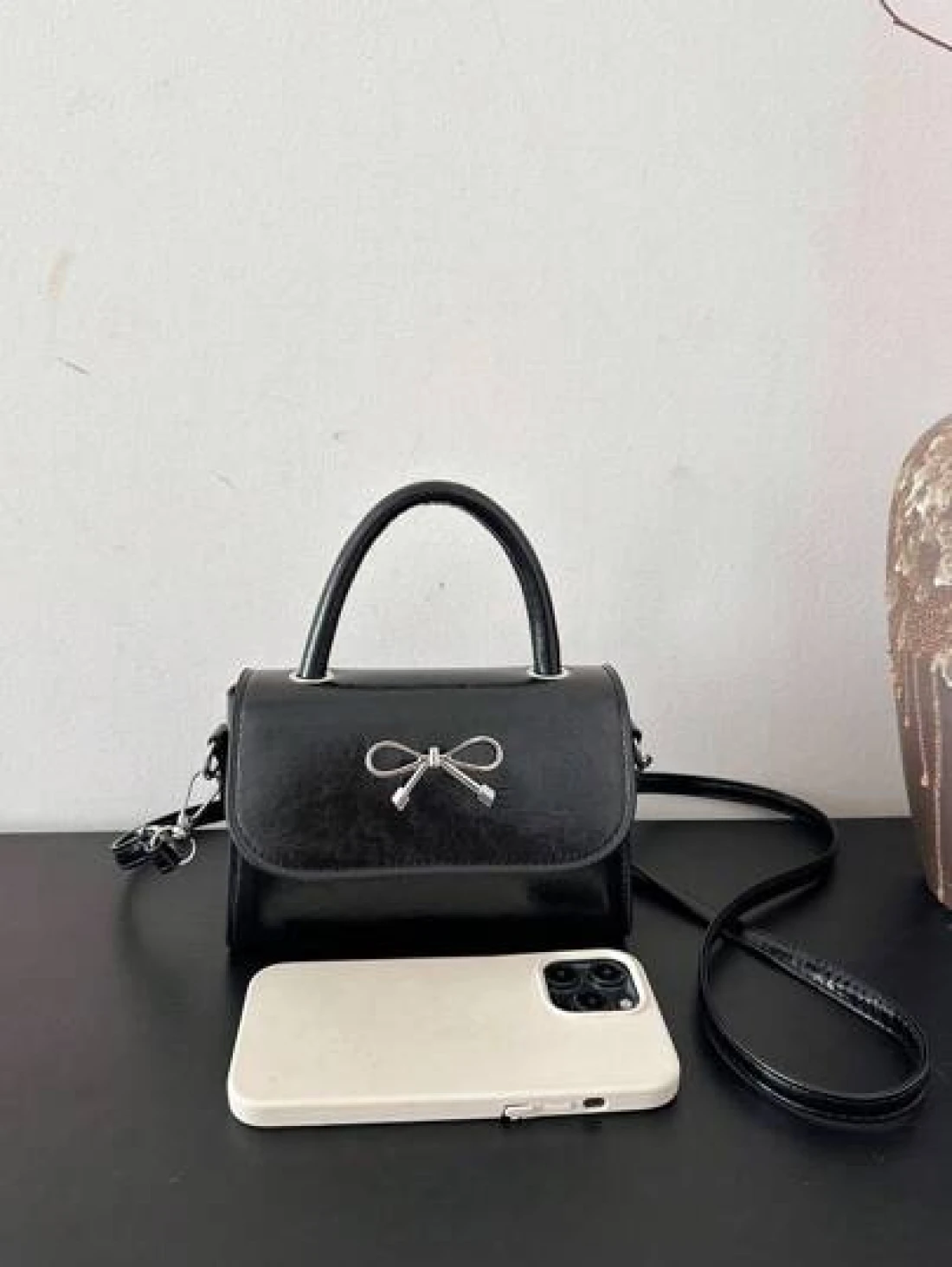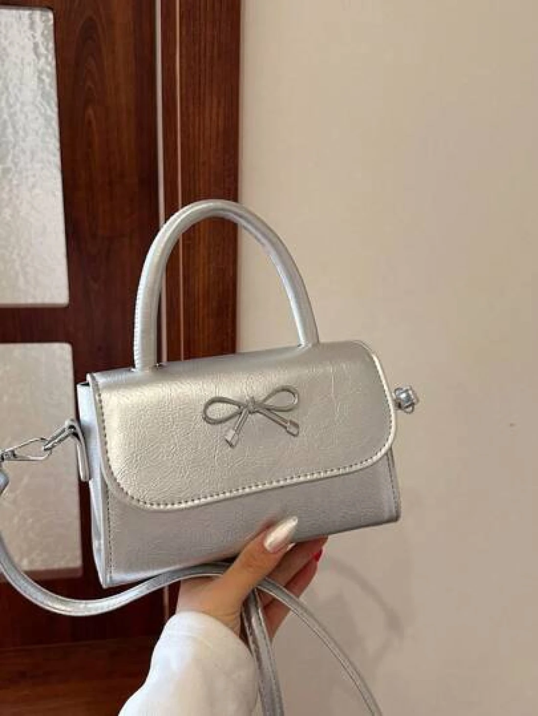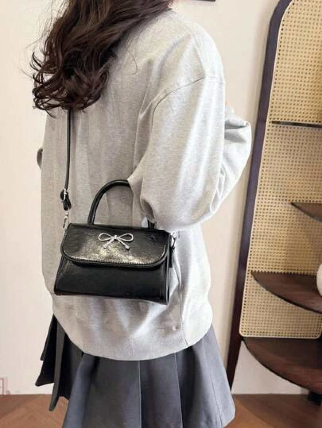 1pc Gentle And Sweet Bow Fashion Handbag Versatile Ins Shoulder Crossbody Bag Stylish And Gentle Small Square Bag With Bow Decoration Pu Material Magnetic Buckle Closure Crossbody Bag High End Solid C