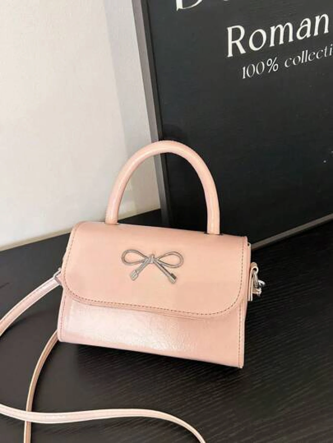 1pc Gentle And Sweet Bow Fashion Handbag Versatile Ins Shoulder Crossbody Bag Stylish And Gentle Small Square Bag With Bow Decoration Pu Material Magnetic Buckle Closure Crossbody Bag High End Solid Color Matching Suitable For Girls To Go Shopping Daily Use Put Mobile Phones And Wallets Girl Princess Style Handbag Crossbody Bag