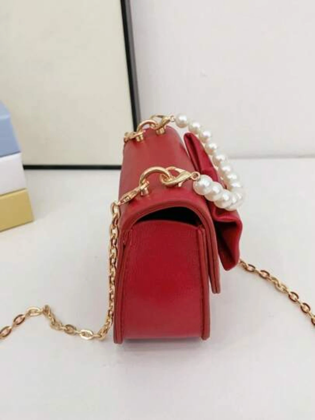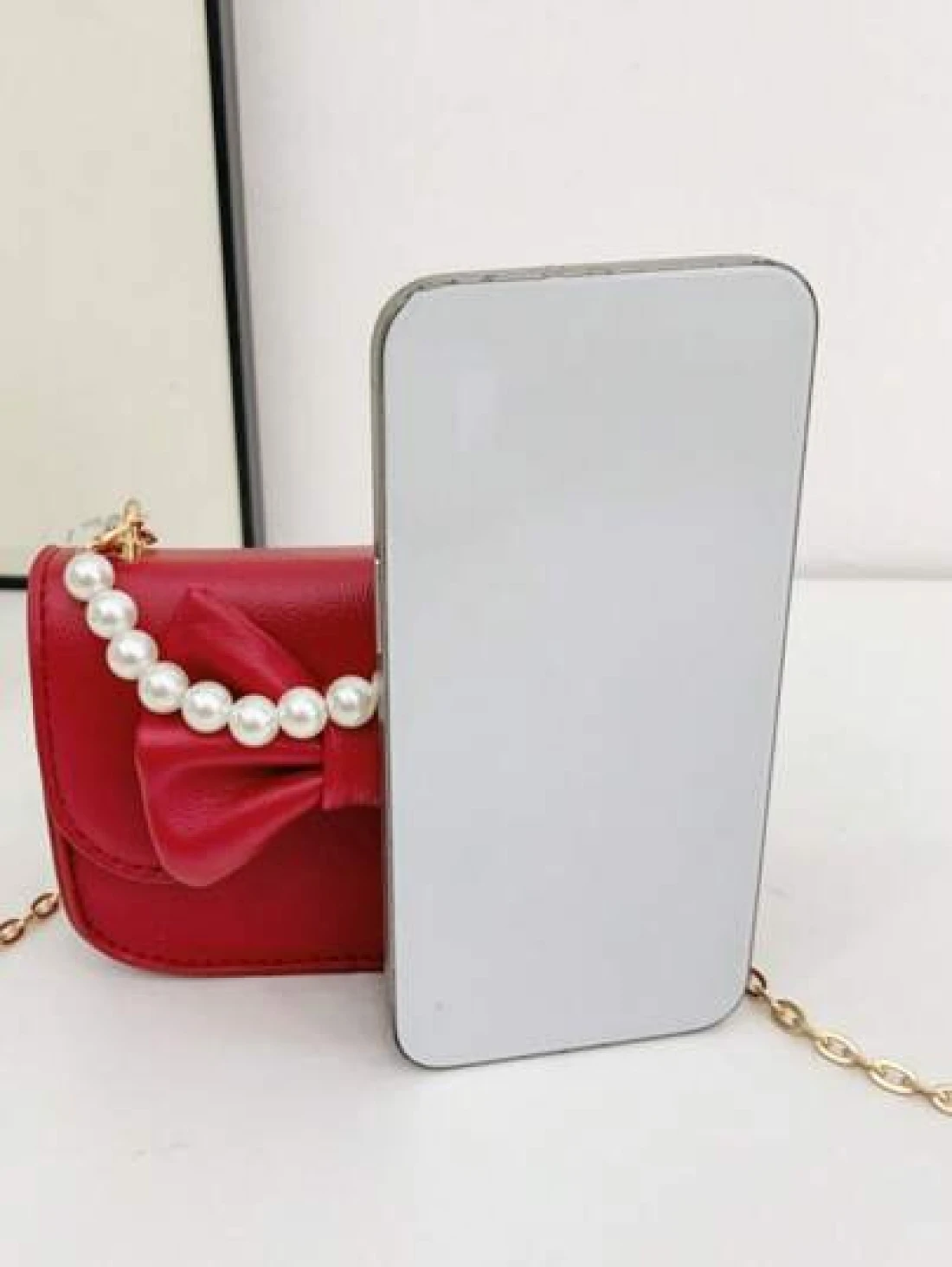 1pc Flap Closure Pu Korean Version Ins Little Girl Bag Fashion Solid Color Cute Bow Sweet Flap Princess Mini Bag Accessories Small Bag Coin Purse Suitable For All Occasions Faux Pearl Handbag Small Sq