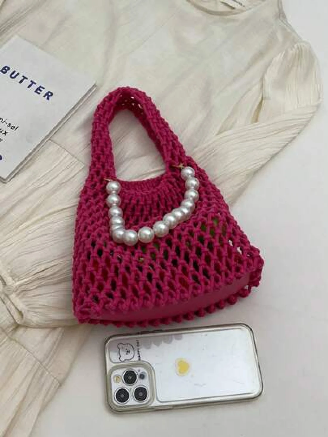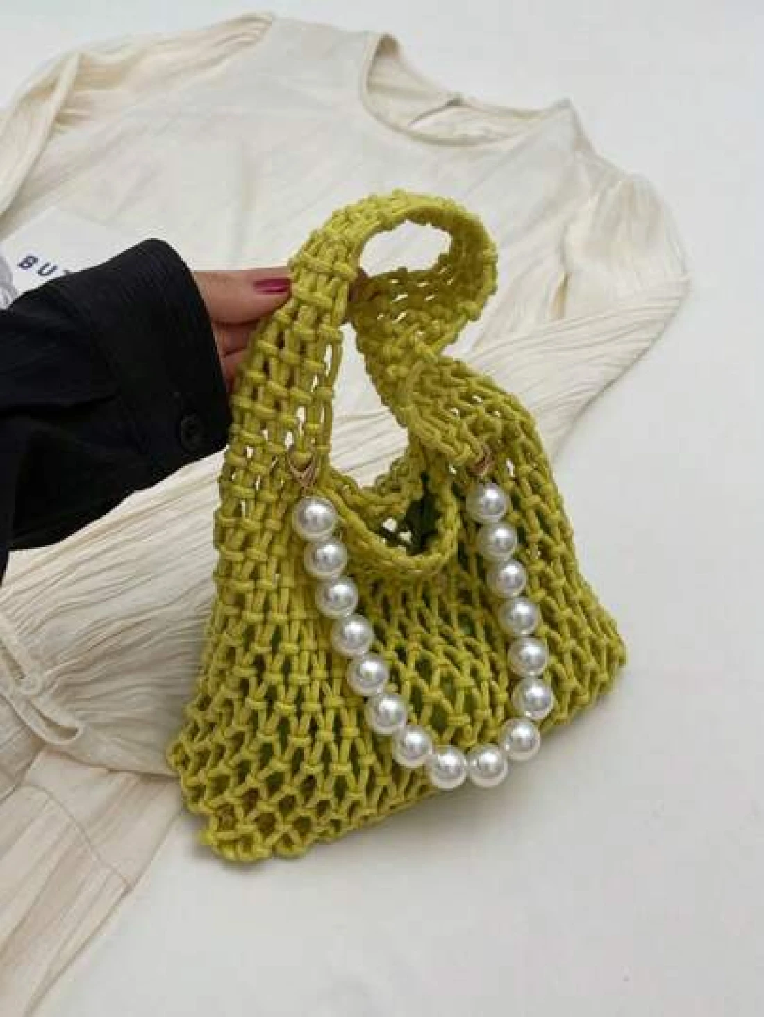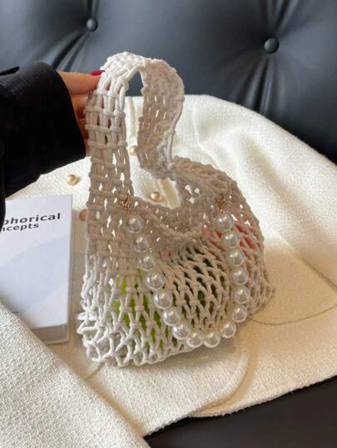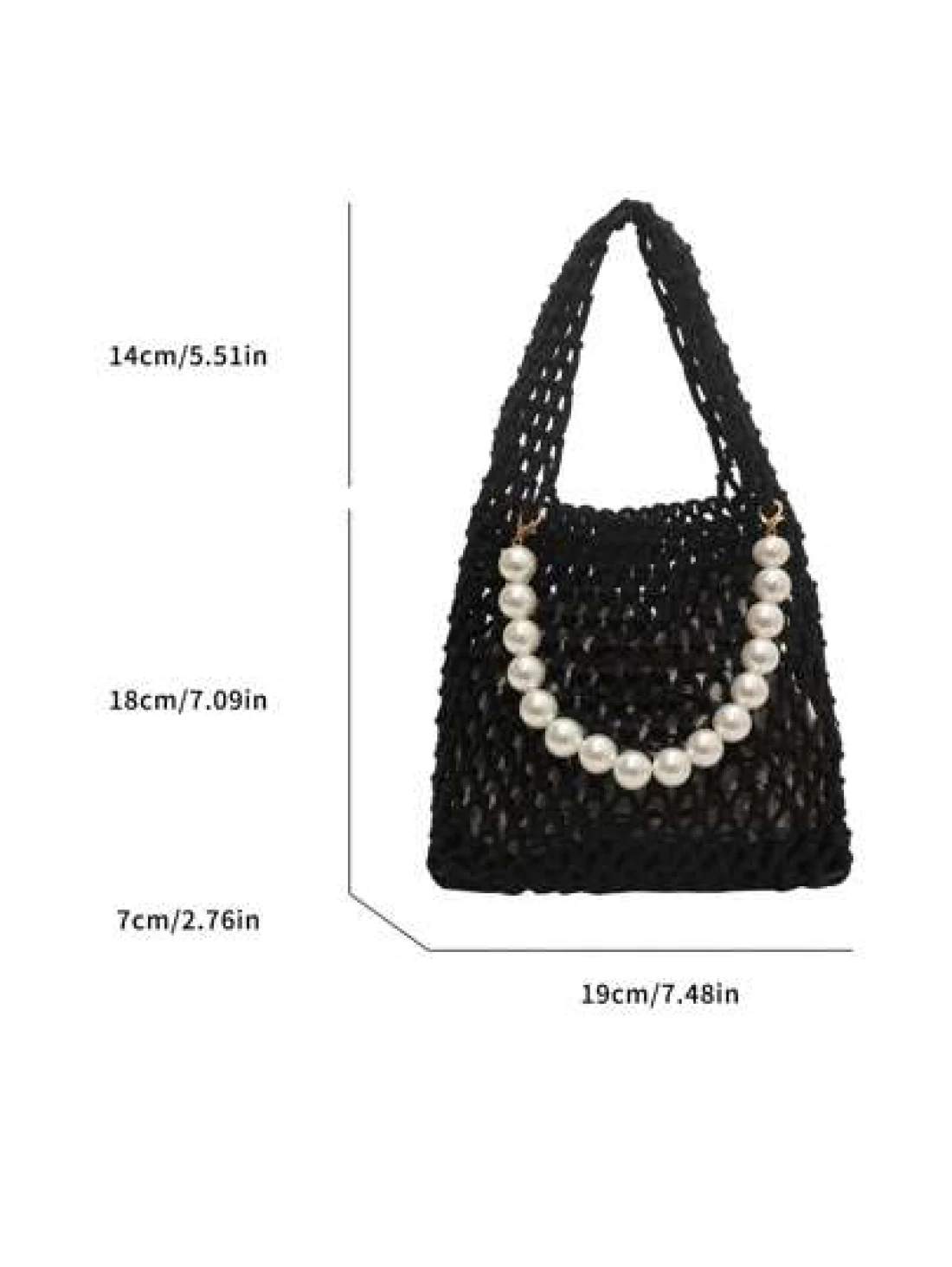 1pc Handbag Open Top Opening And Closing Niche Pearl Hollow Design Bag For Girl New Summer Fashion Braided Small Bag Casual And Versatile Beach Bag Suitable For Daily Outings And Vacations A Perfect Gift For Girls