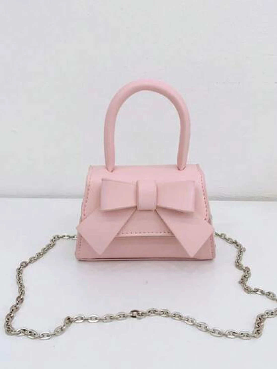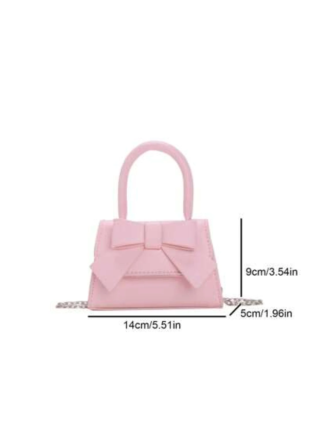 1pc Pu Magnet Closure Mini Fashion Cartoon Cute Sweet Bow Handbag Niche Design For Out To Play Change Lipstick Bag Korean Chain Shoulder Messenger Bag Suitable For Out School Commuting Daily Use Is A