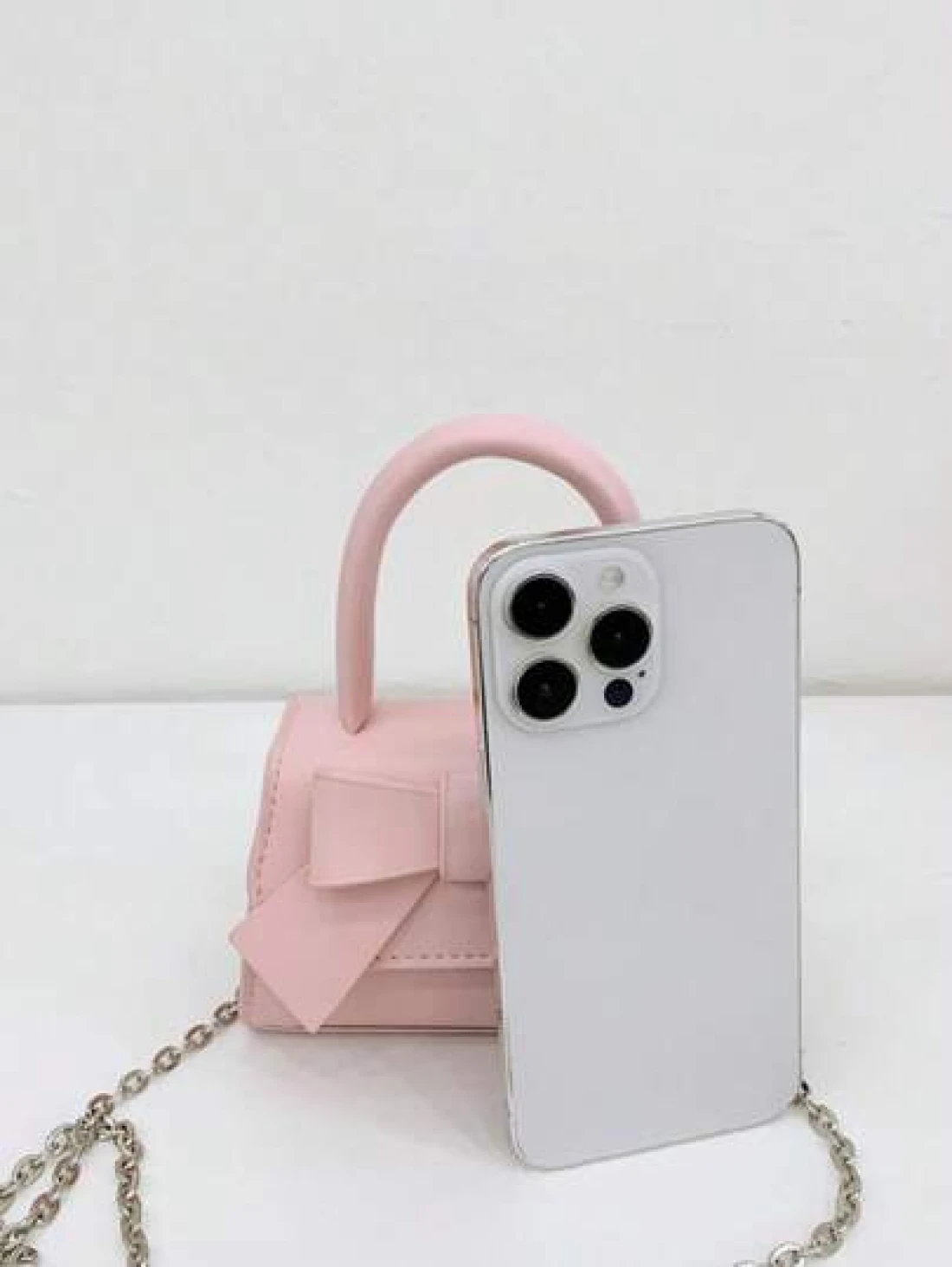 1pc Pu Magnet Closure Mini Fashion Cartoon Cute Sweet Bow Handbag Niche Design For Out To Play Change Lipstick Bag Korean Chain Shoulder Messenger Bag Suitable For Out School Commuting Daily Use Is A Perfect Gift For Teenagers