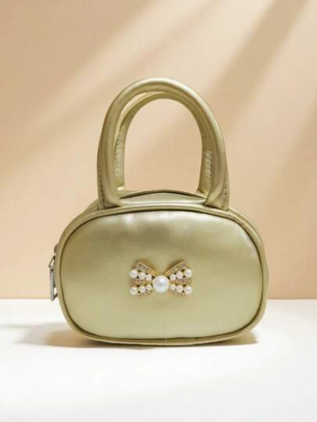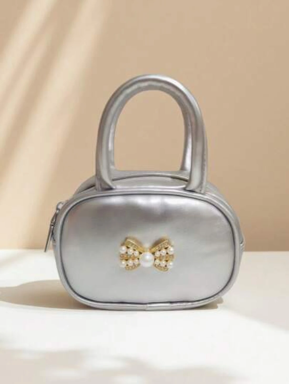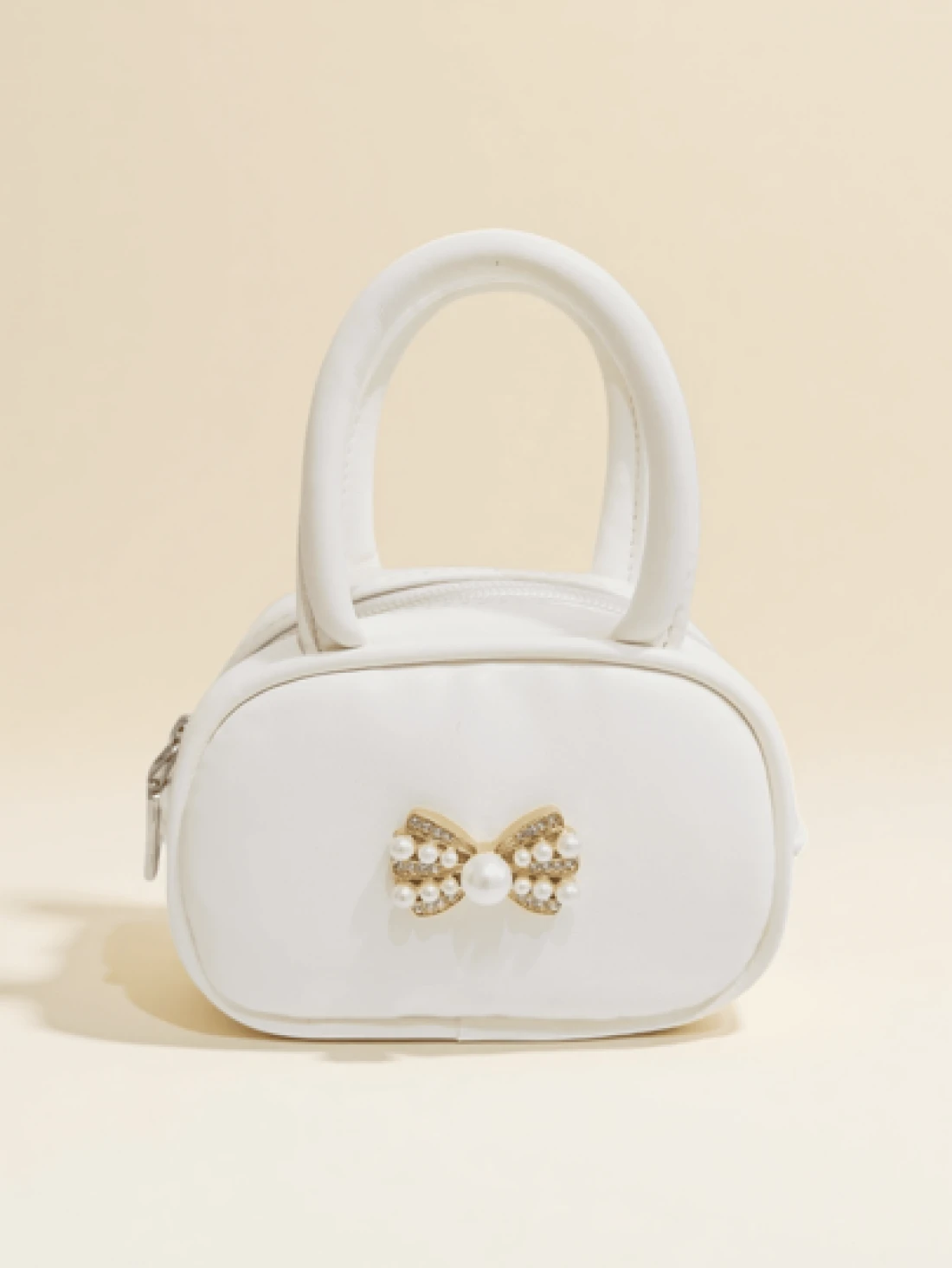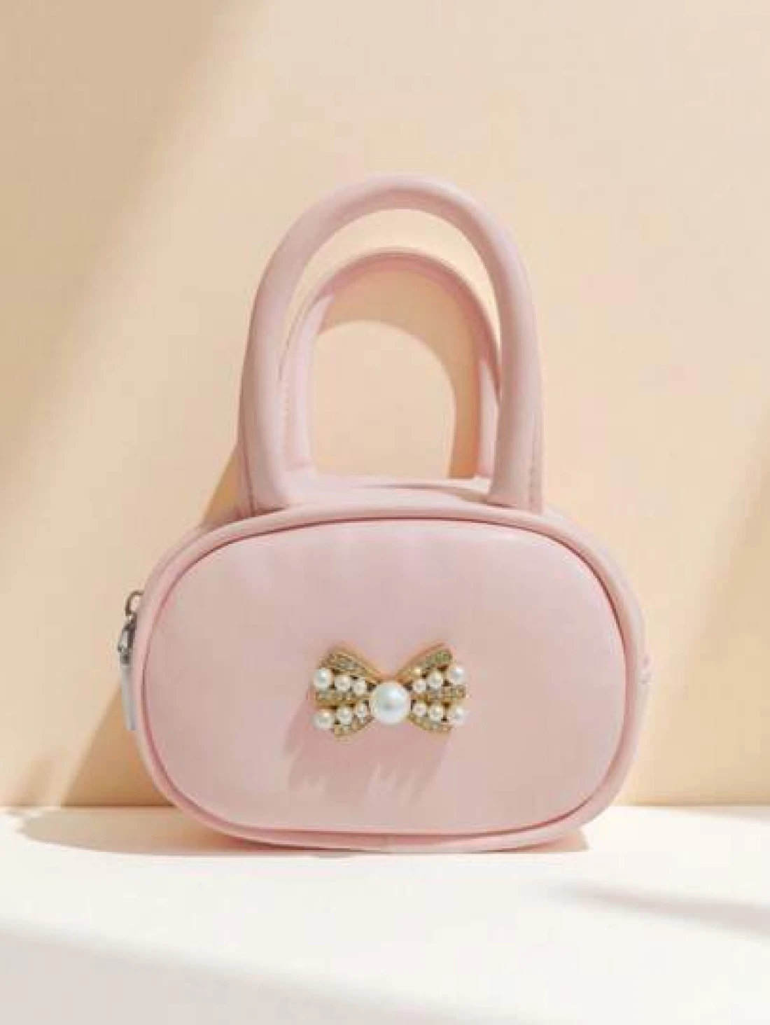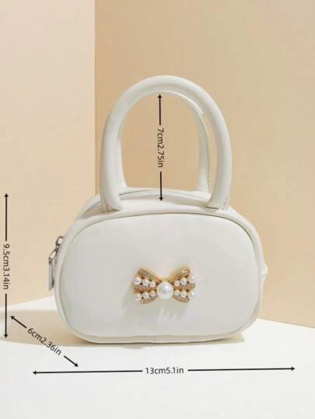 Children s Bag With Pearl Rhinestone Bow Decor Fashion New Style Girls Handbag Holiday Gift Princess Mini Bag Coin Purse Simple Small Round Bag