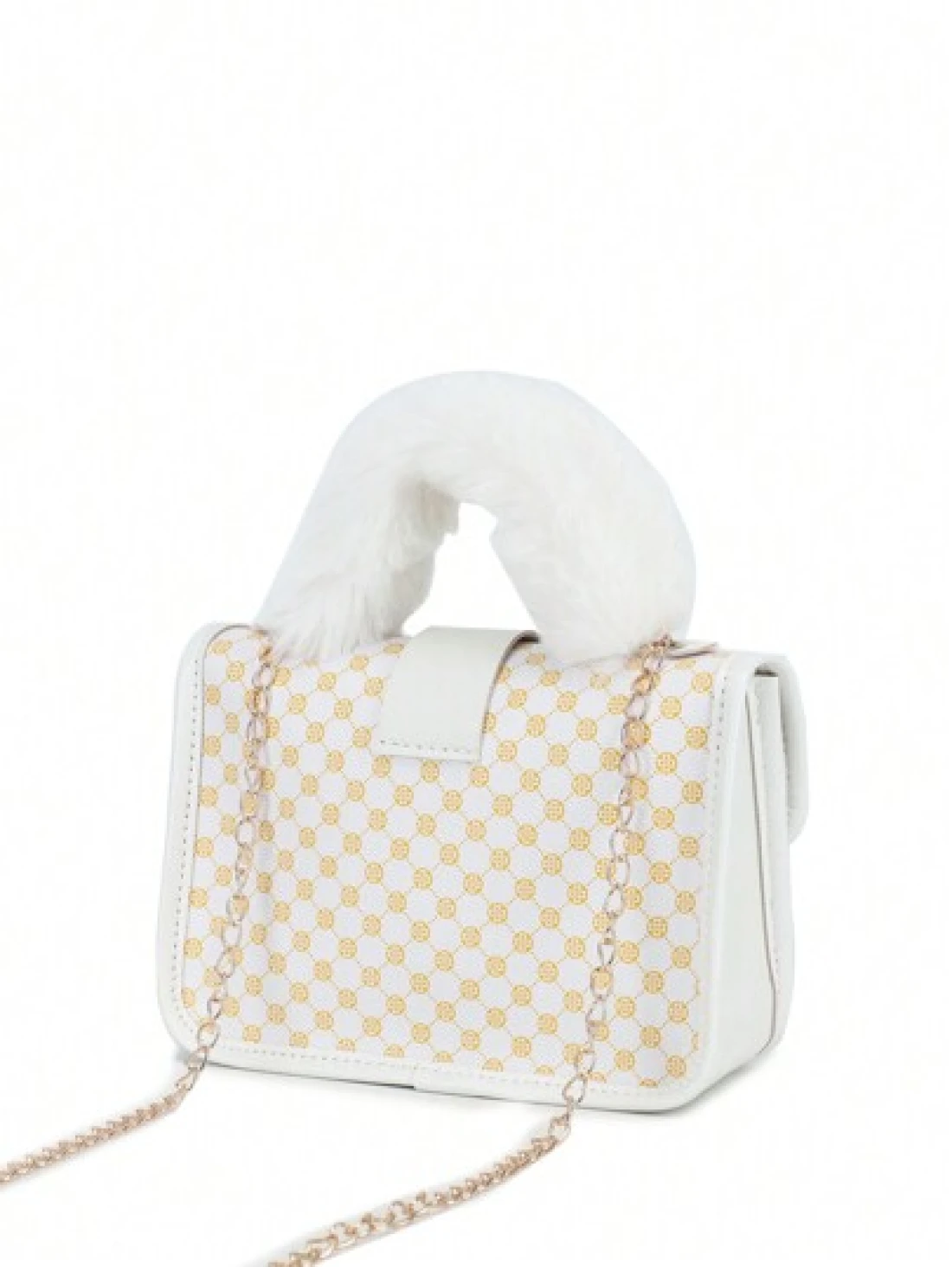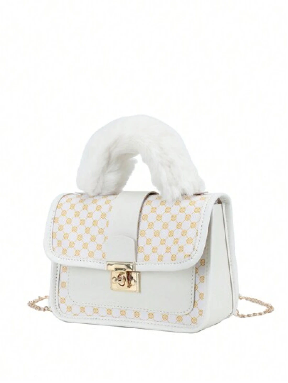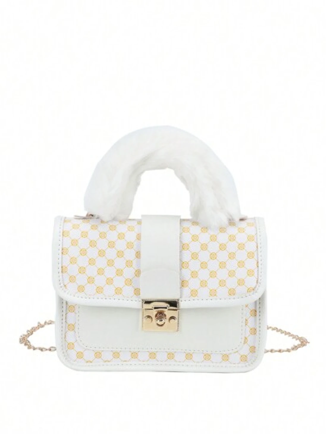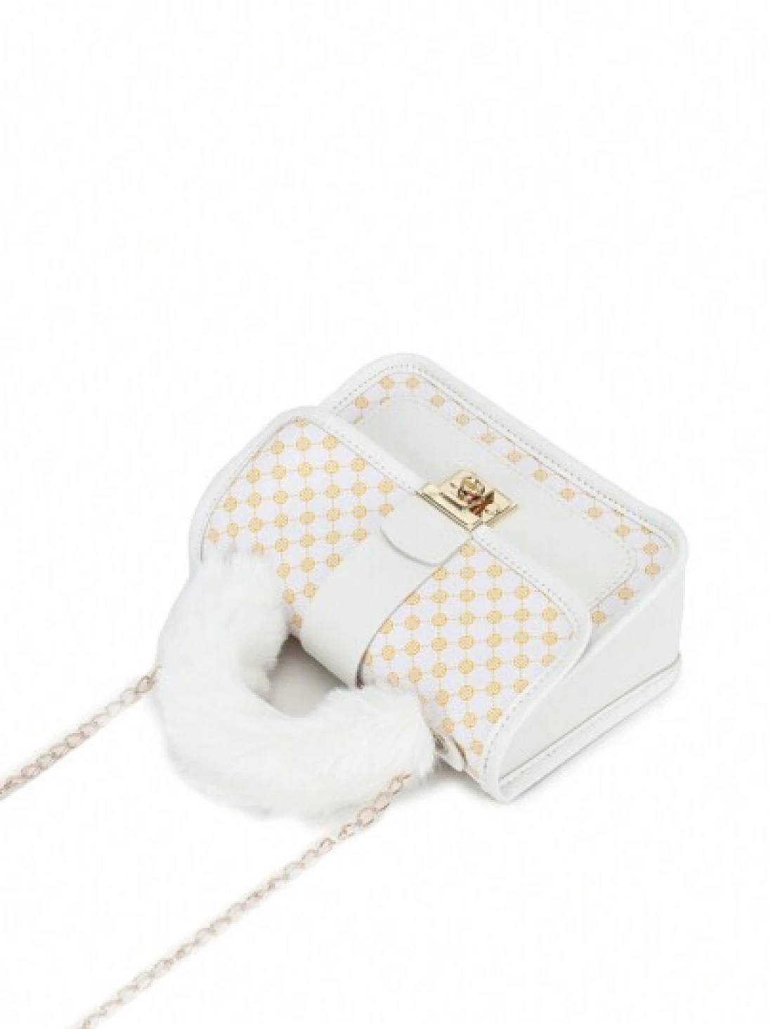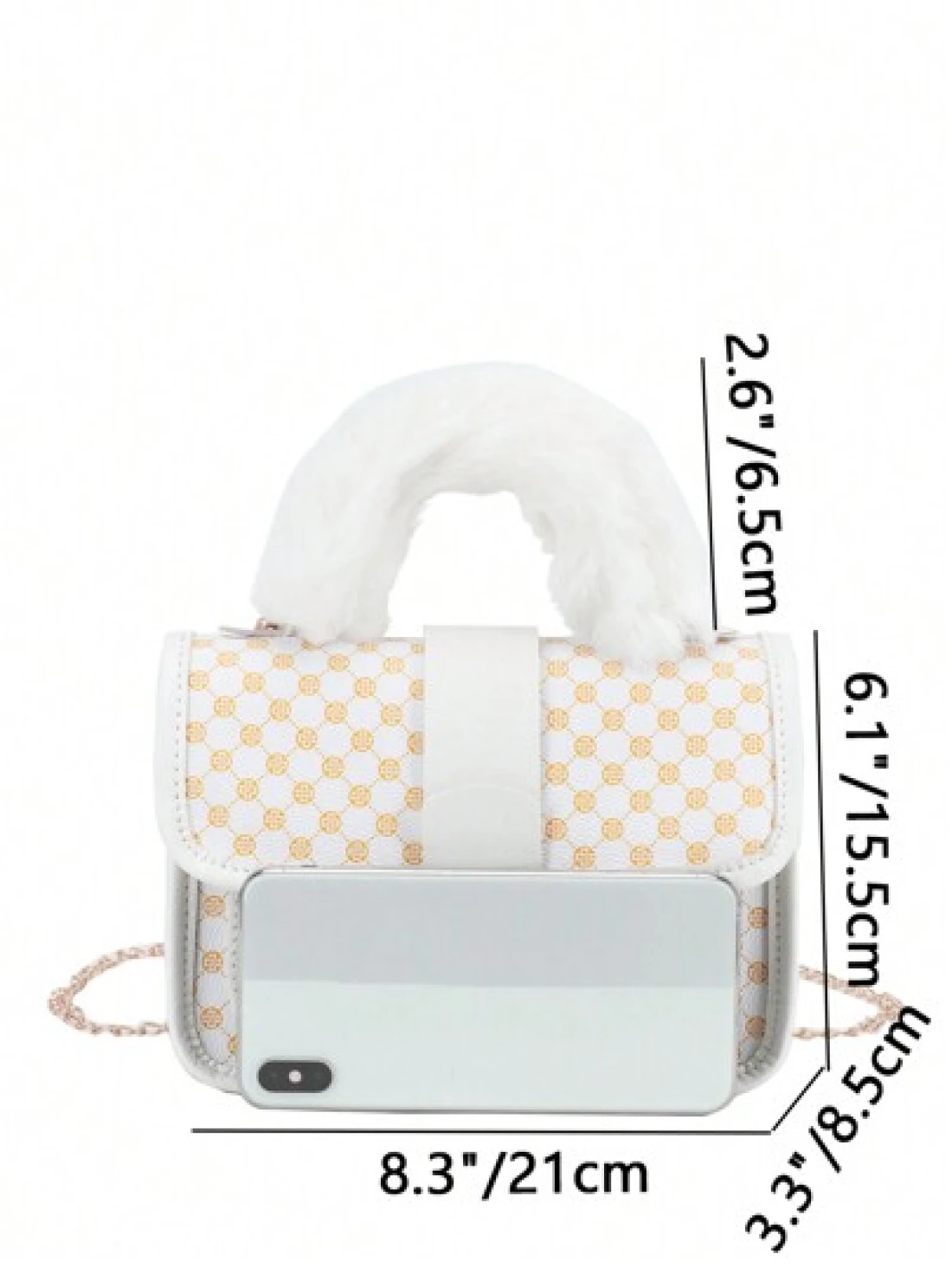 1pc Girl s Vintage Printed Plush Handbag Cute Metal Chain Crossbody Bag Casual Mobile Bag Ideal Choice For Gifts