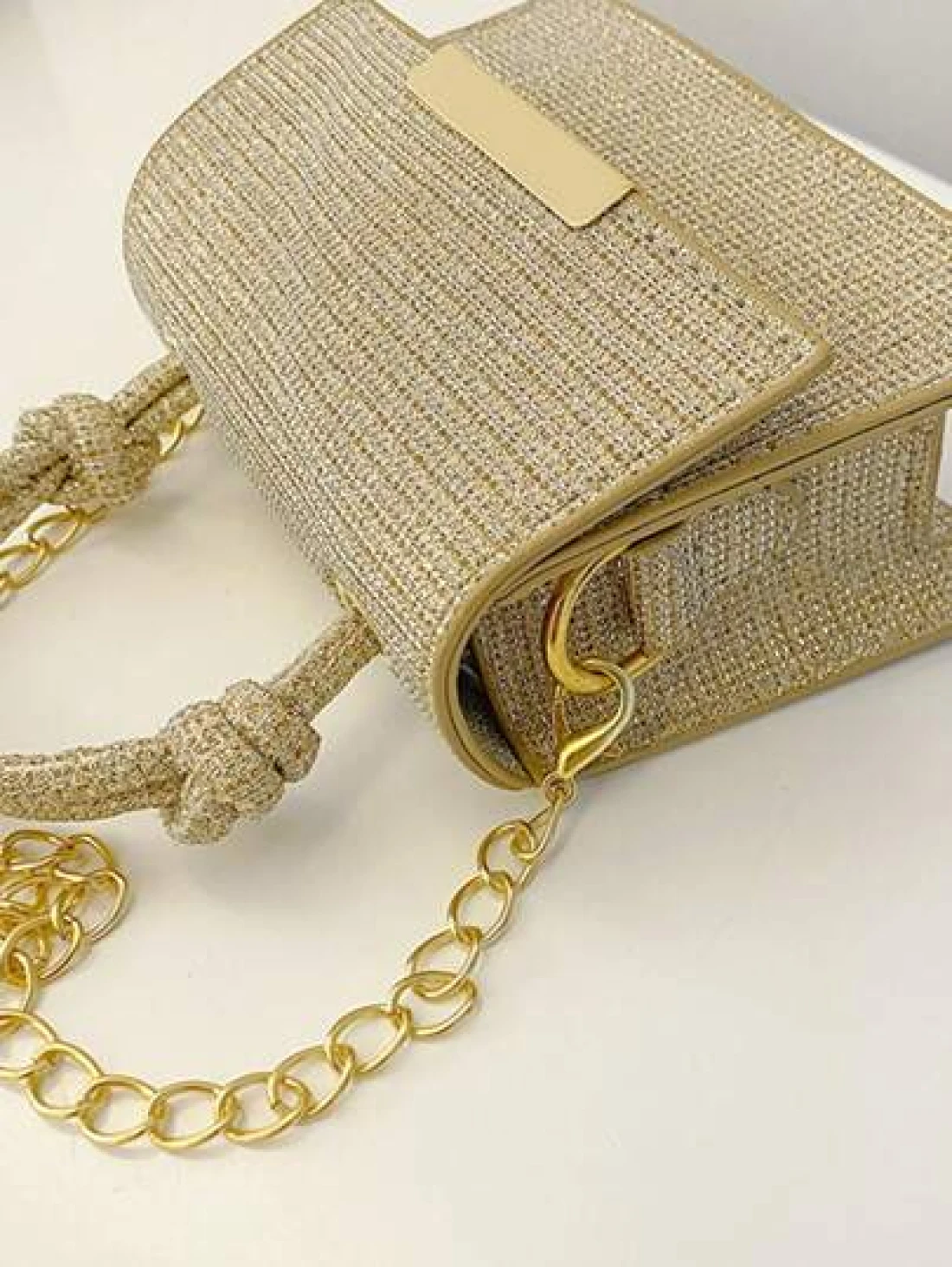 1 Pc New Style Girl s Fashionable Sequin Knotted Handbag Pu Material Magnetic Buckle Light And Fashionable Simple Business Style A Must Have For Daily Shopping And Commuting
