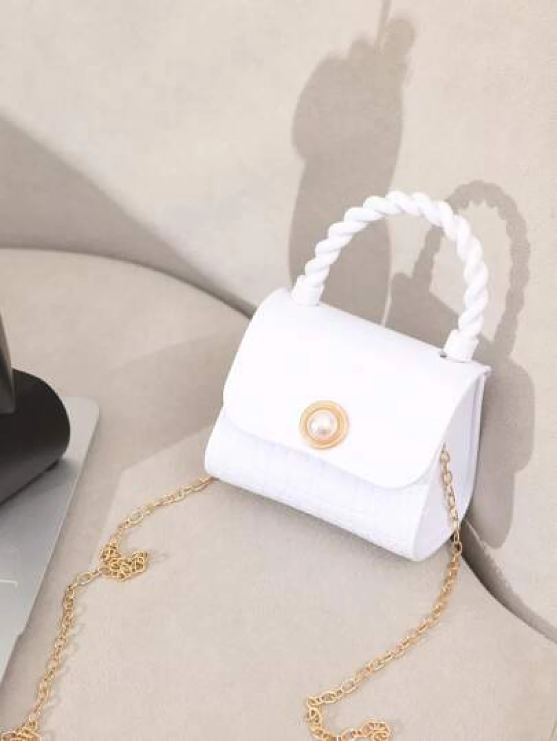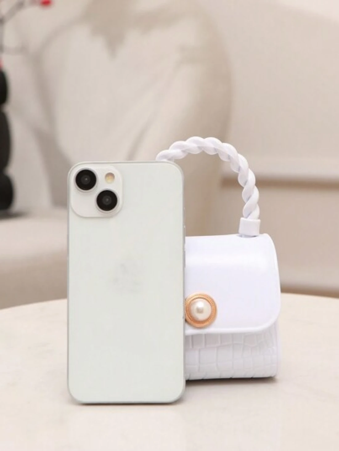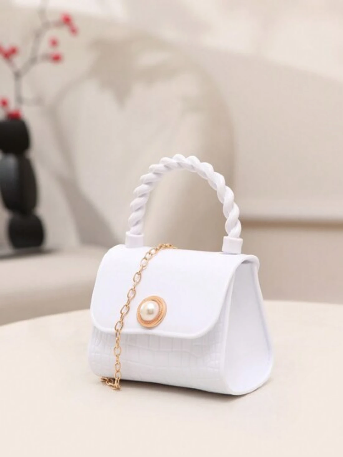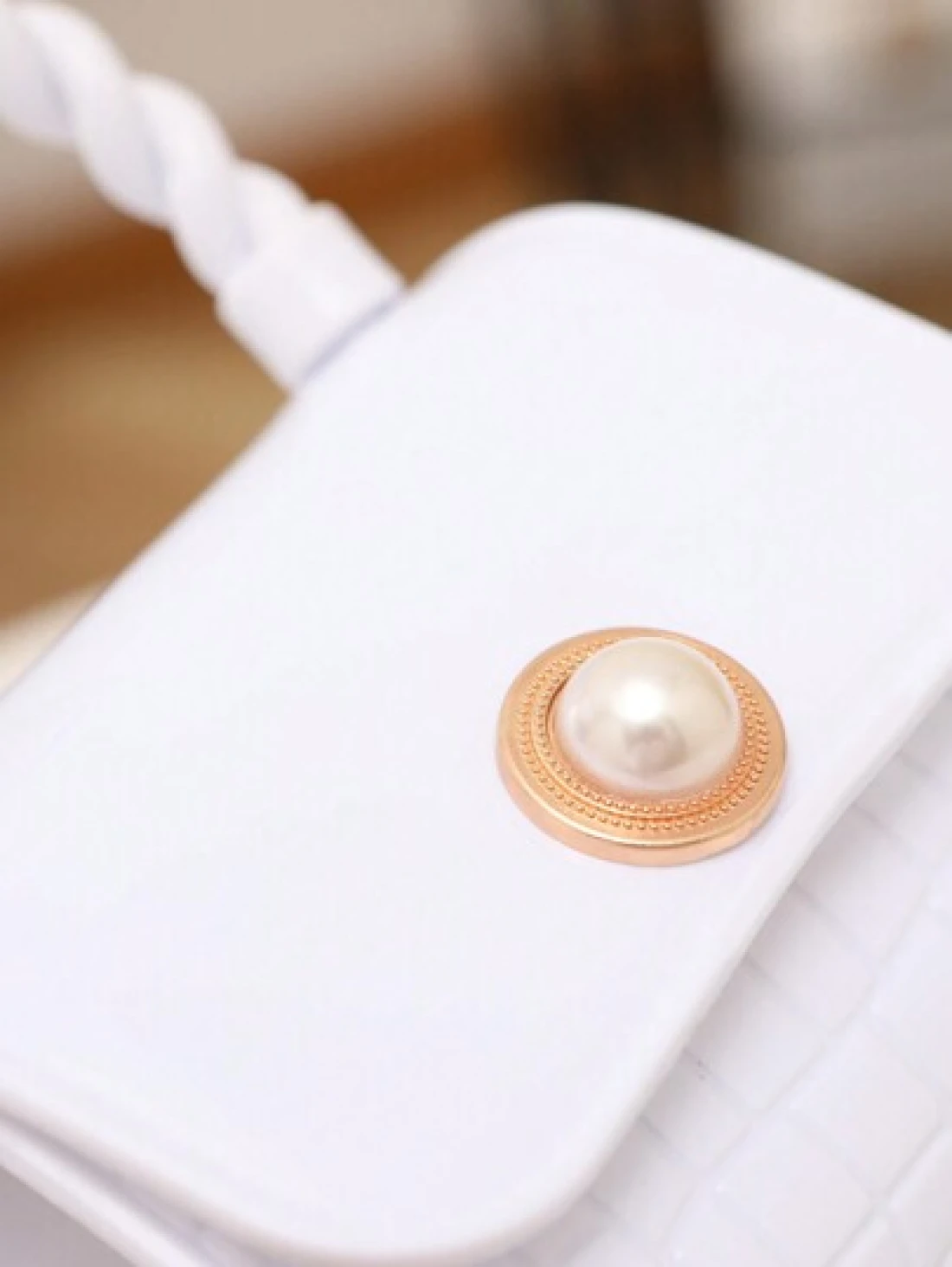 Pearl Decor Handbag Animal Print Shoulder Crossbody Lip Gloss Bag For Coins Keys