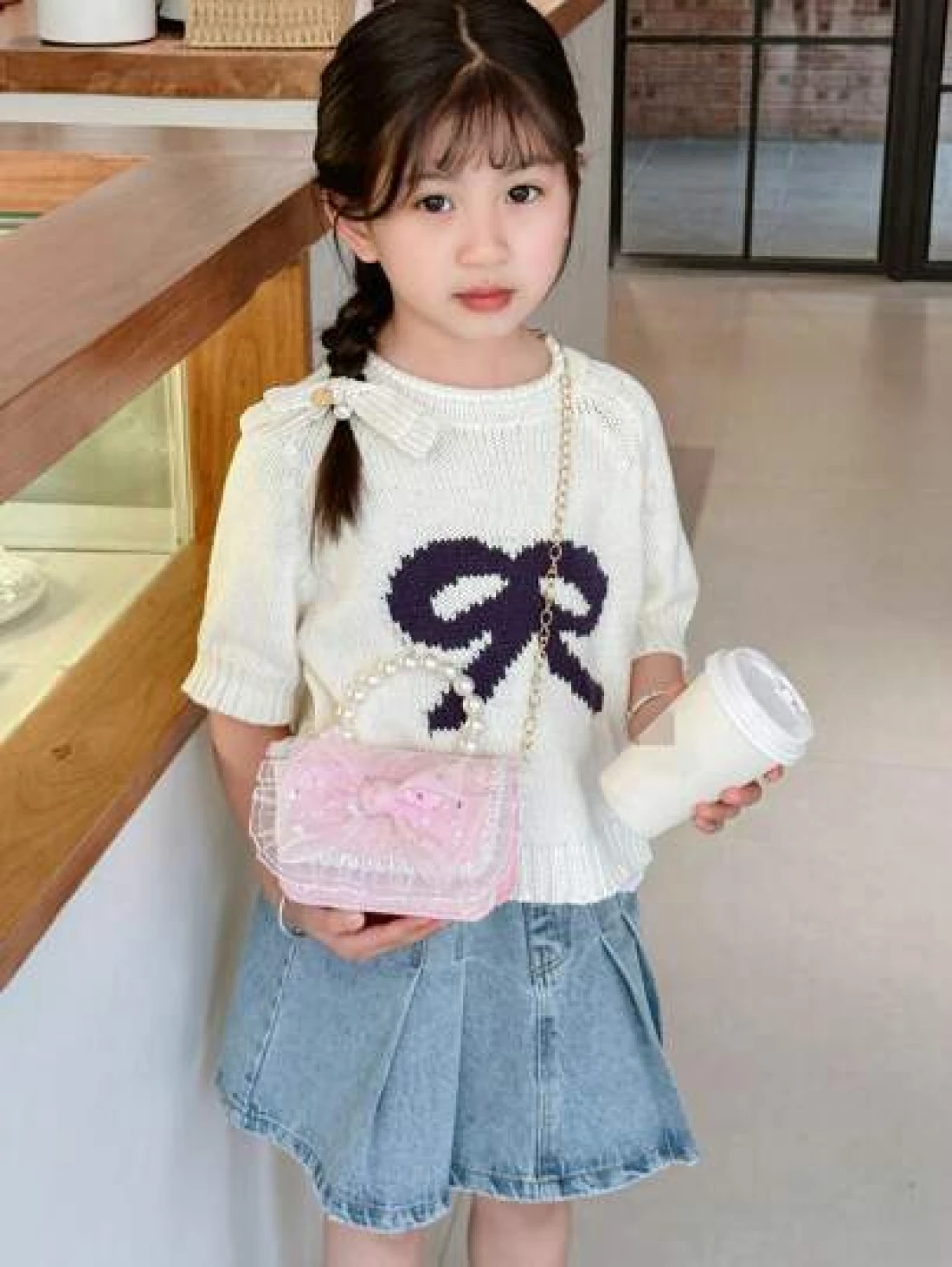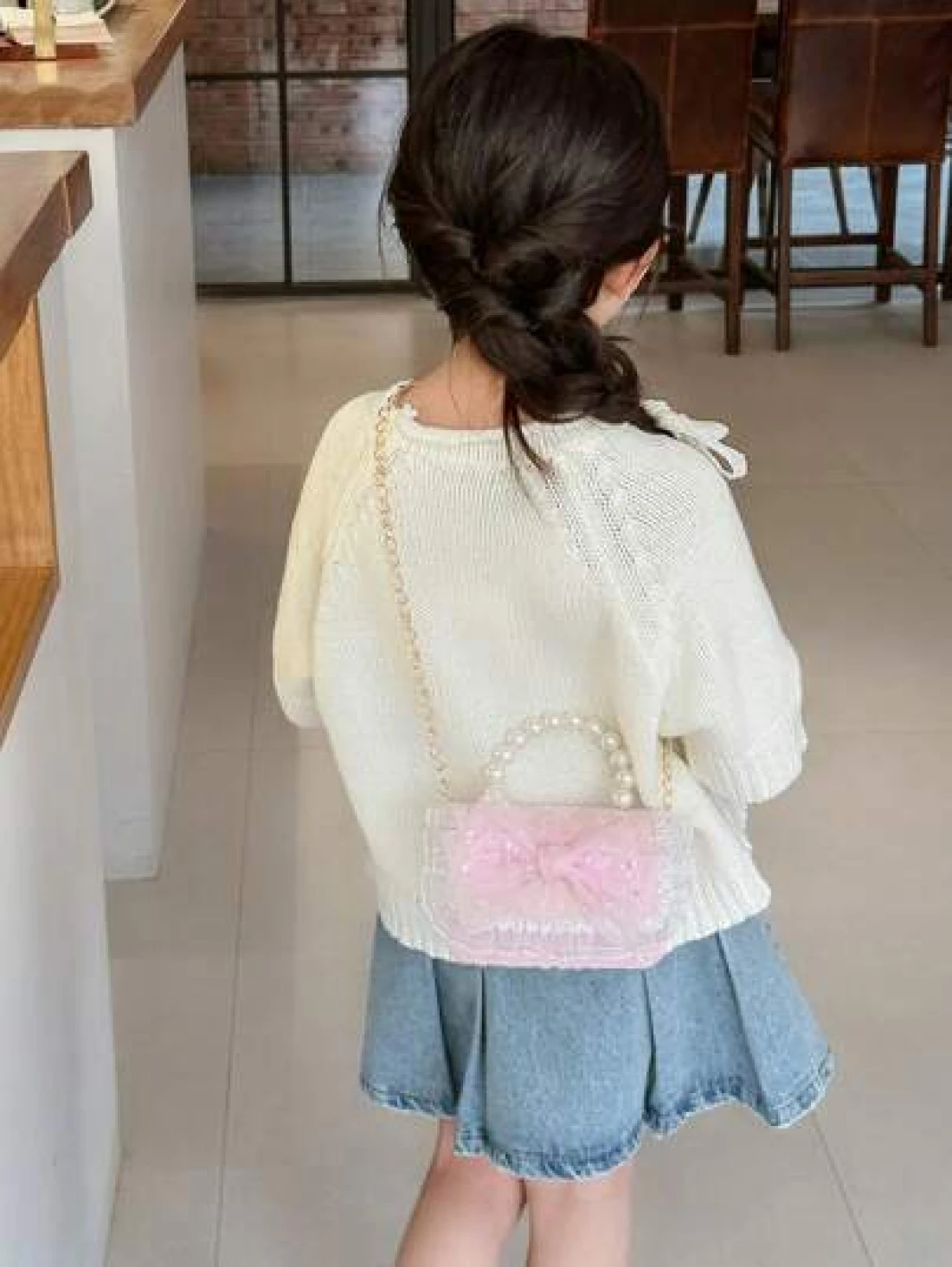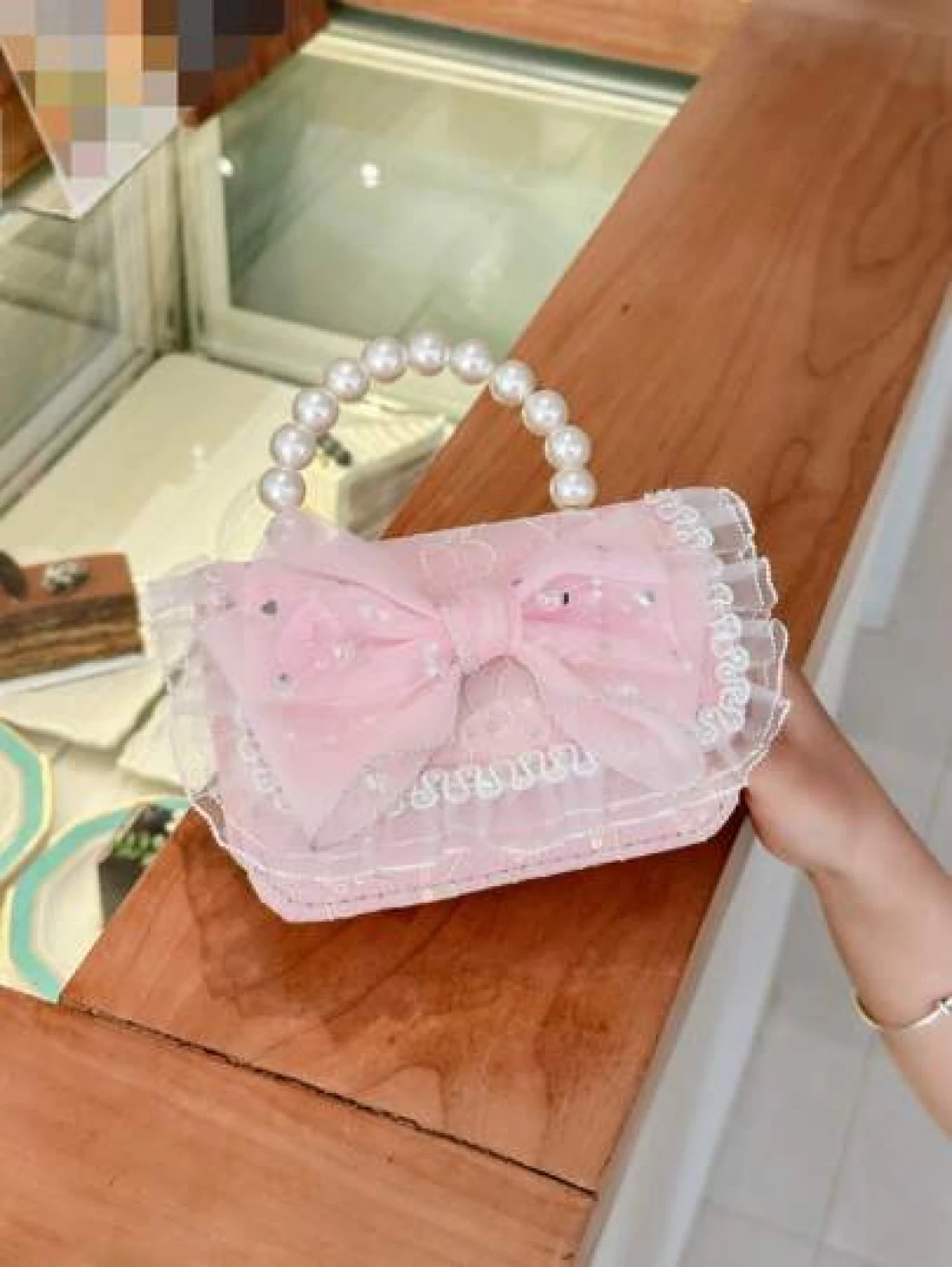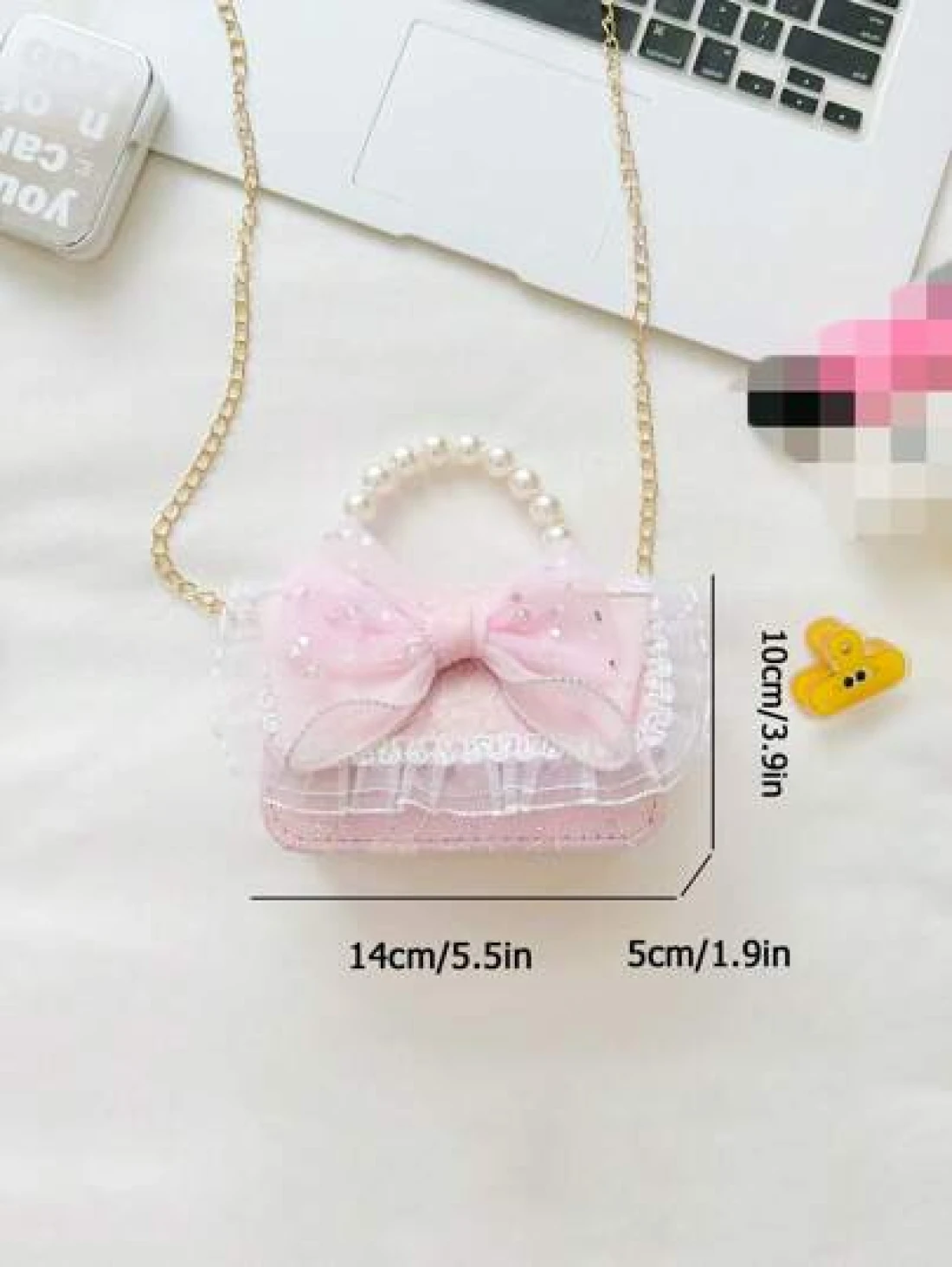 1 Pc Mini Fashion Shiny Young Children Pearl Handbag Chain Crossbody Bag Flip Bag Samll Square Bag Kawaii Princess Bag Toddler Coin Purse Cute Candy Storage Bag Portable Light Sweet Big Lace Bow Sequins Decorate Casual Bag For Students Girls Children Bestfriend Perfect Change Bus Card Key Storage Bag Travel Accessories