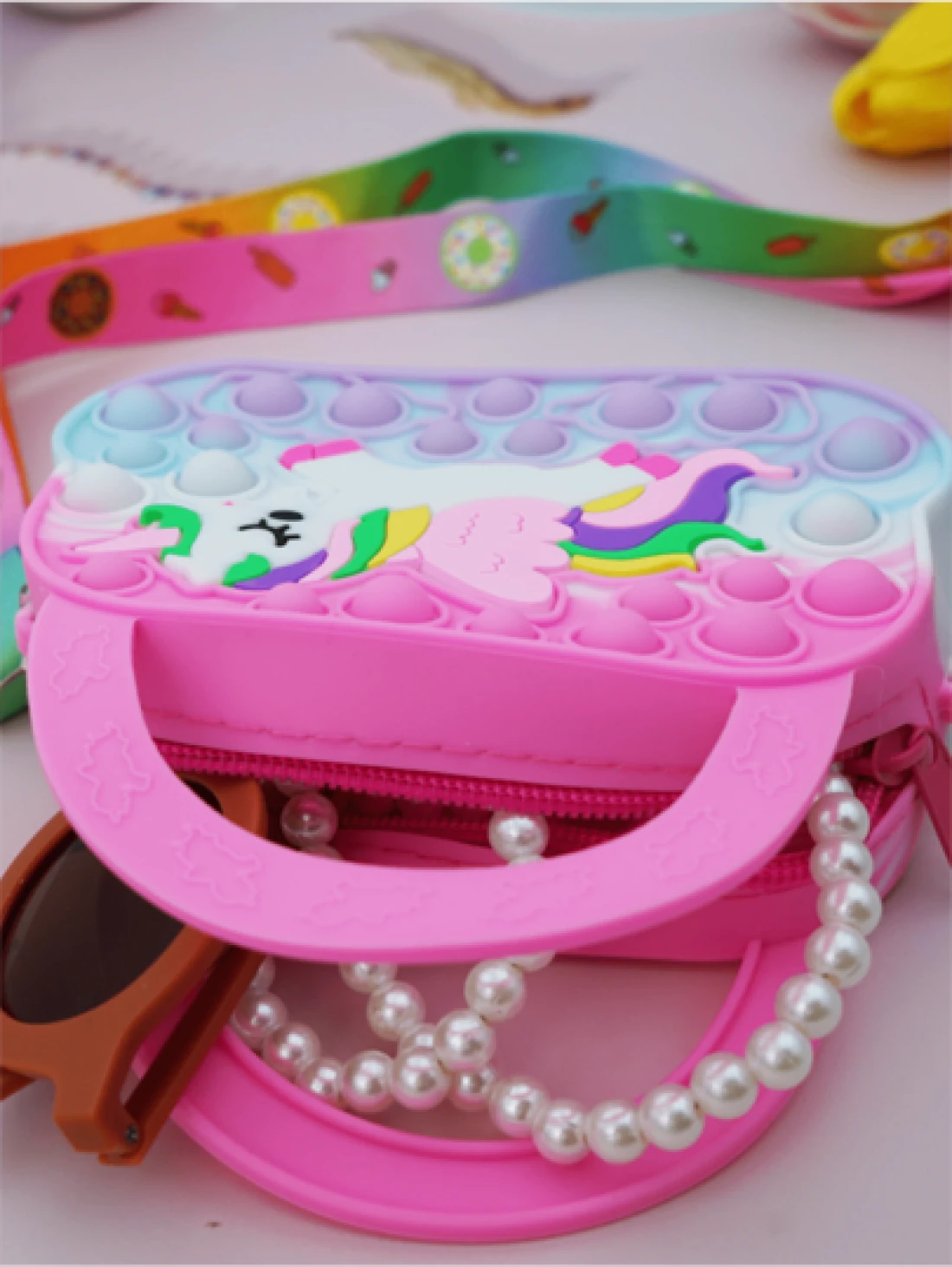 Heart Shaped Tote Bag Silicone Crossbody Bag Unicorn Wallet Stress Relief Waterproof Durable Storage Pouch