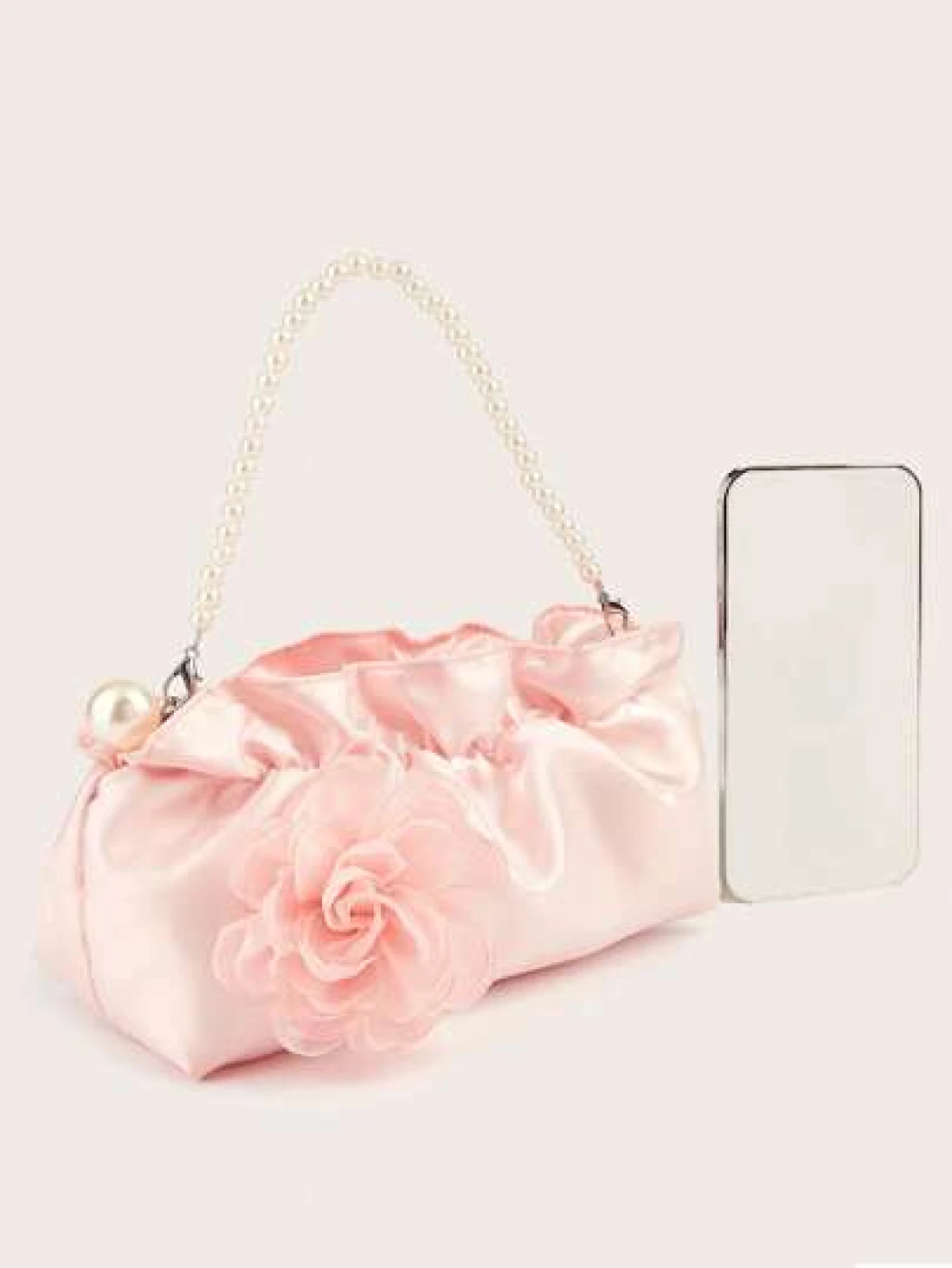 1pc Ruffle Cloud Mobile Phone Coin Purse Floral Pearl Hand Held Clutch Bag