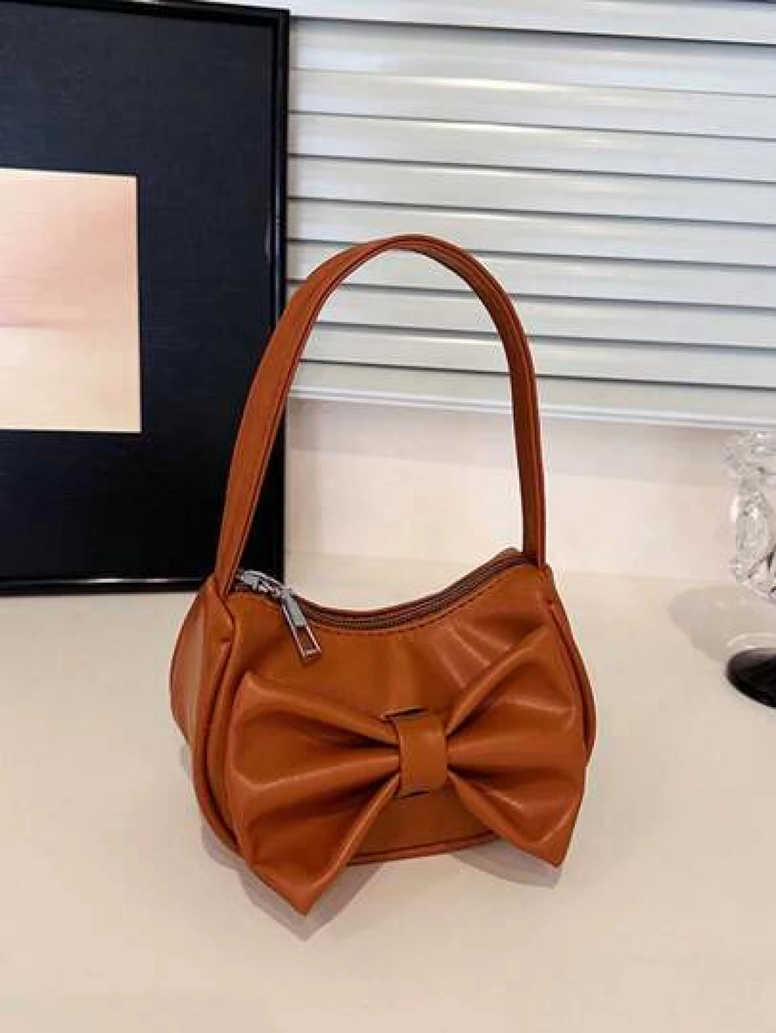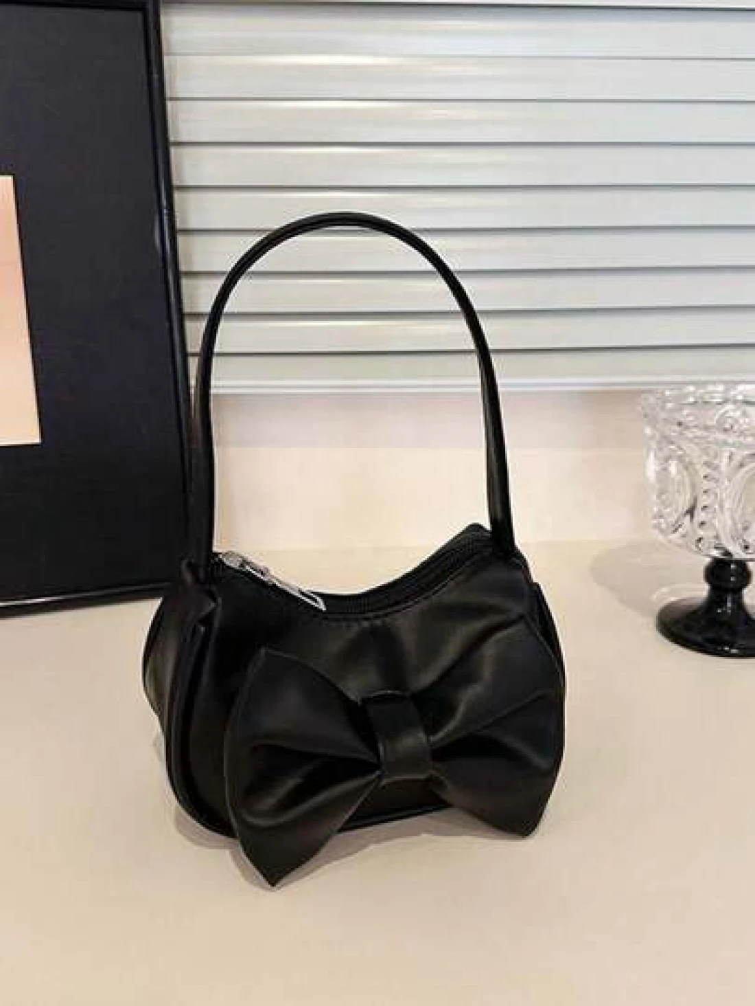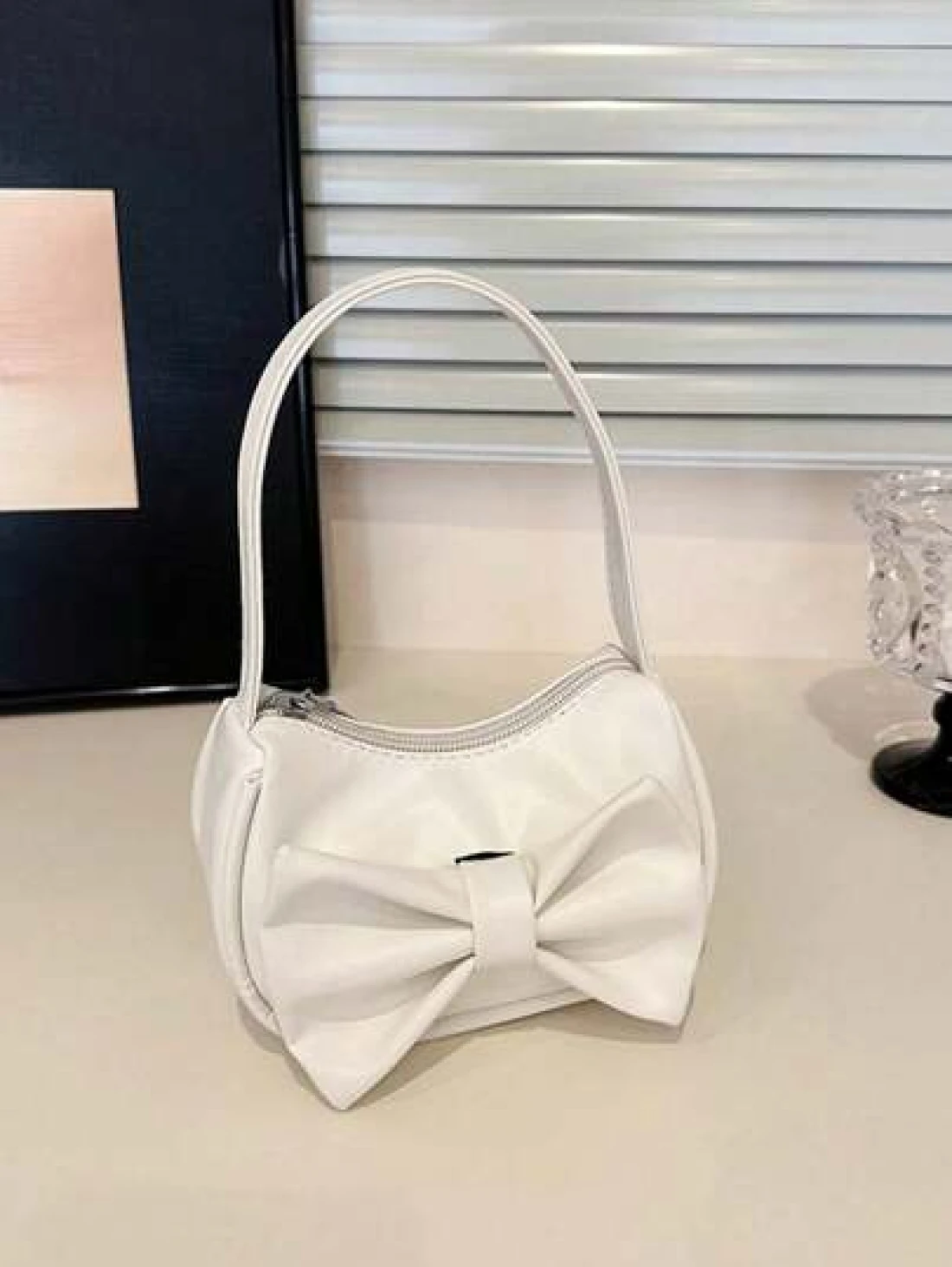 1pc Handbag Pu Zipper Opening And Closing New Style Small Elegant And Sweet Handbag Shoulder Bag Korean Style Small Bag Textured Bow Shoulder Bag Comfortable Shoulder Strap Suitable For Daily Outings