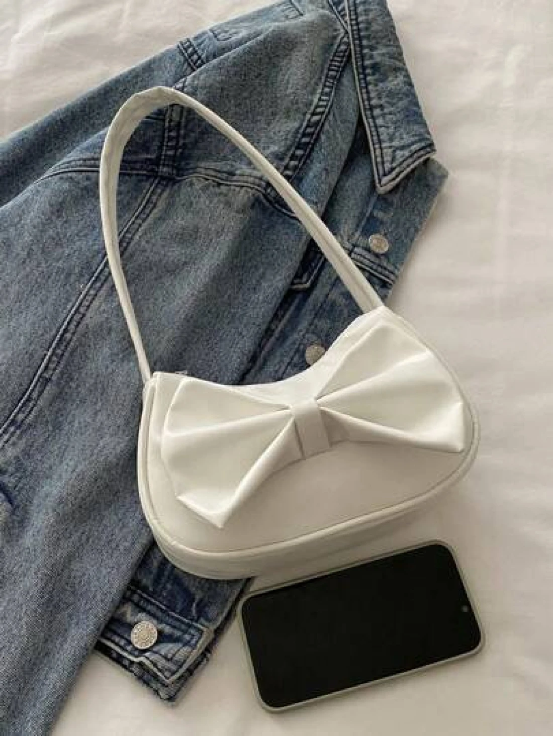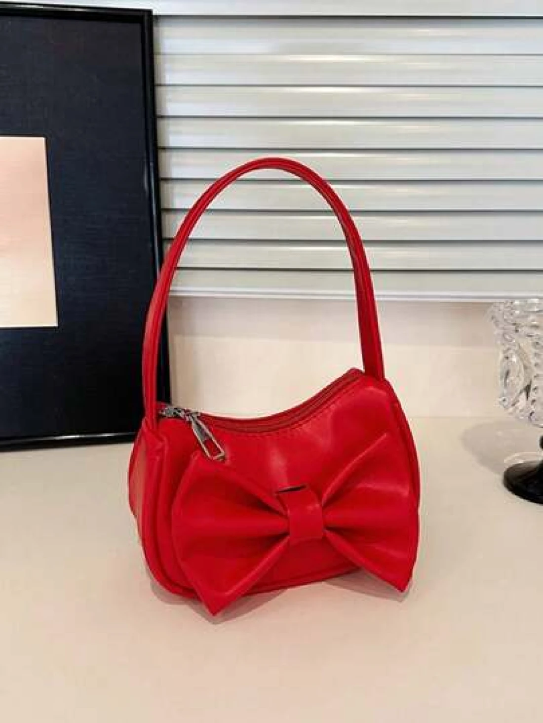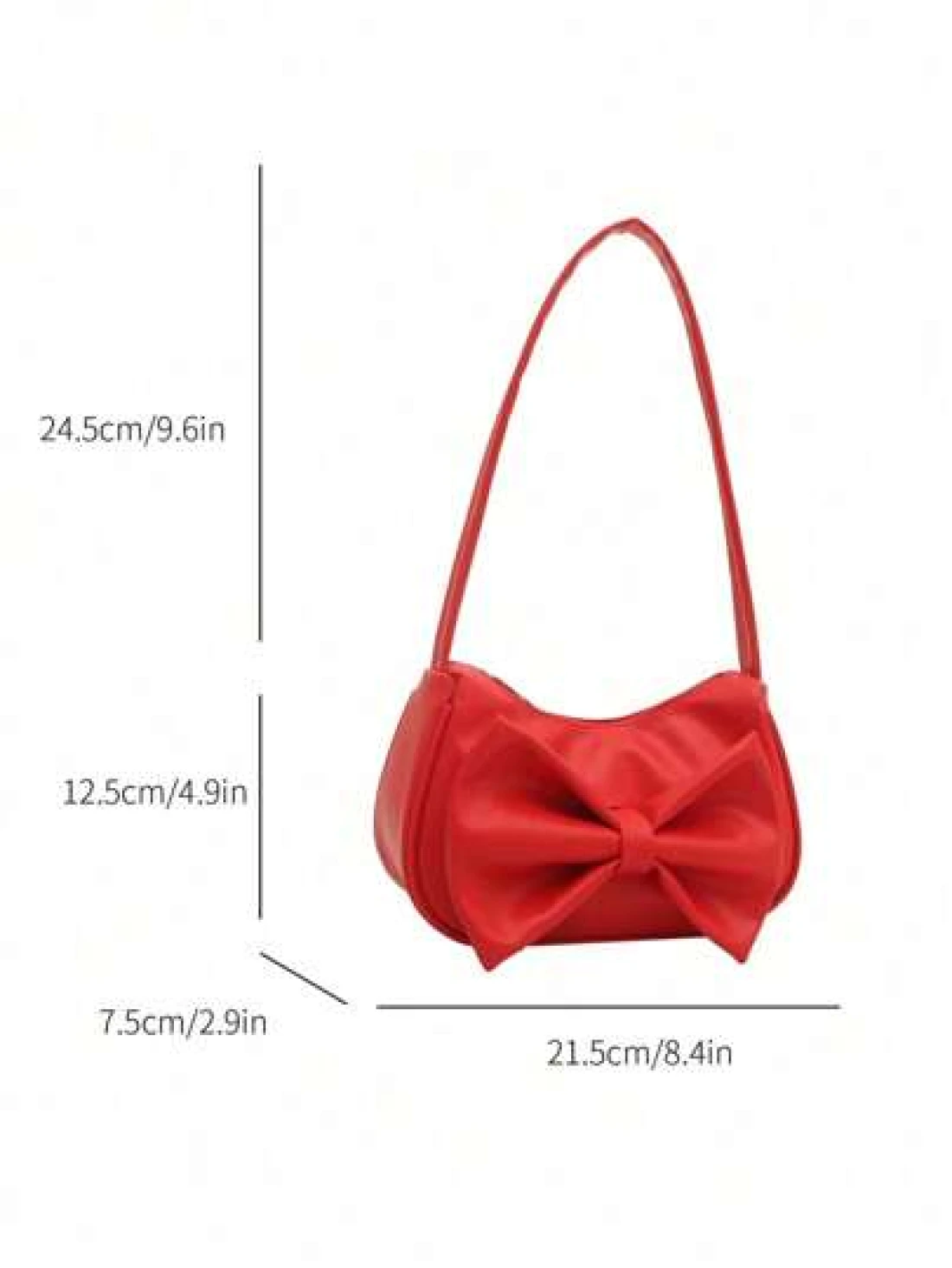 1pc Handbag Pu Zipper Opening And Closing New Style Small Elegant And Sweet Handbag Shoulder Bag Korean Style Small Bag Textured Bow Shoulder Bag Comfortable Shoulder Strap Suitable For Daily Outings Shopping And Taking Pictures Is A Perfect Gift For Girls