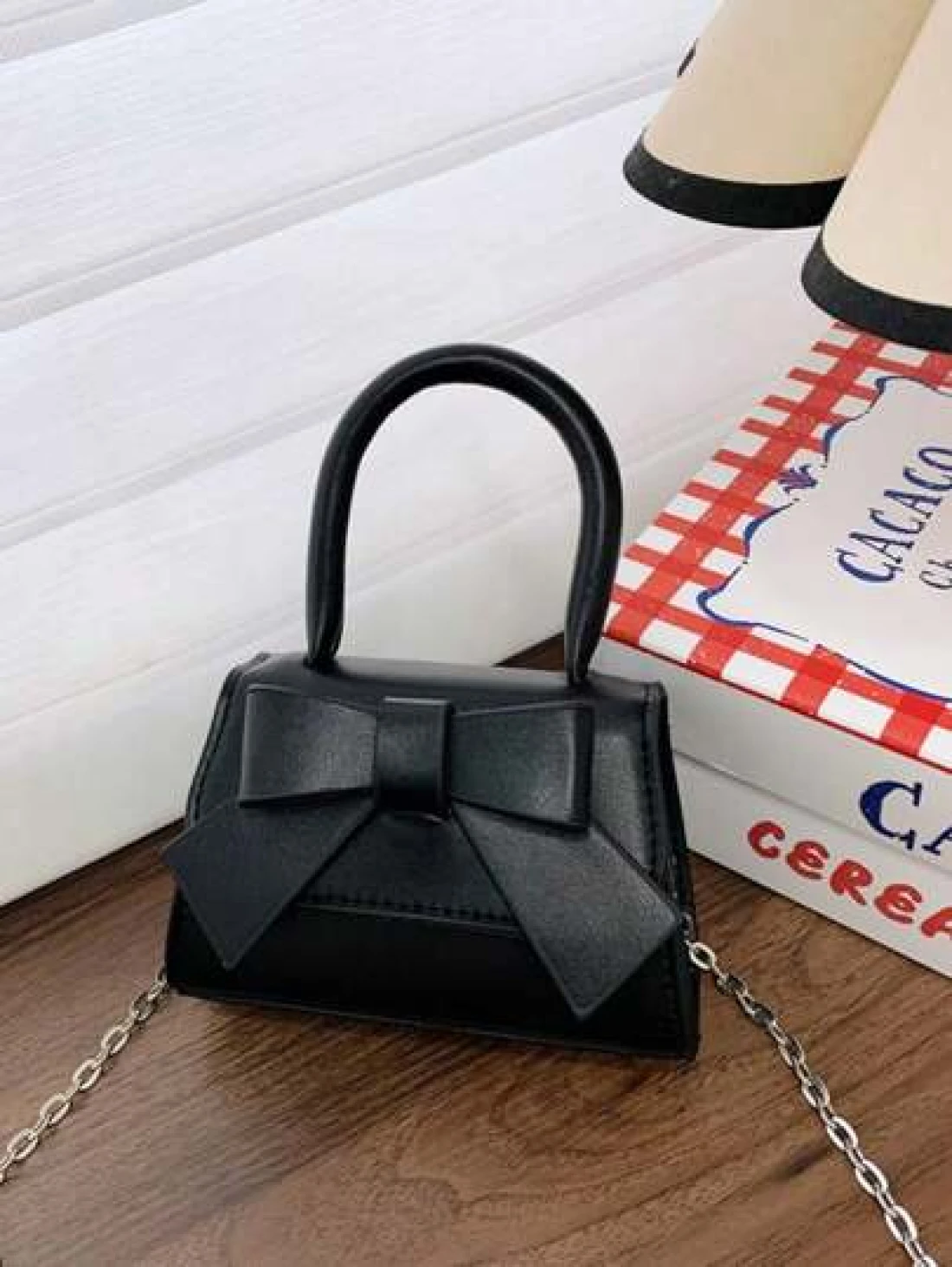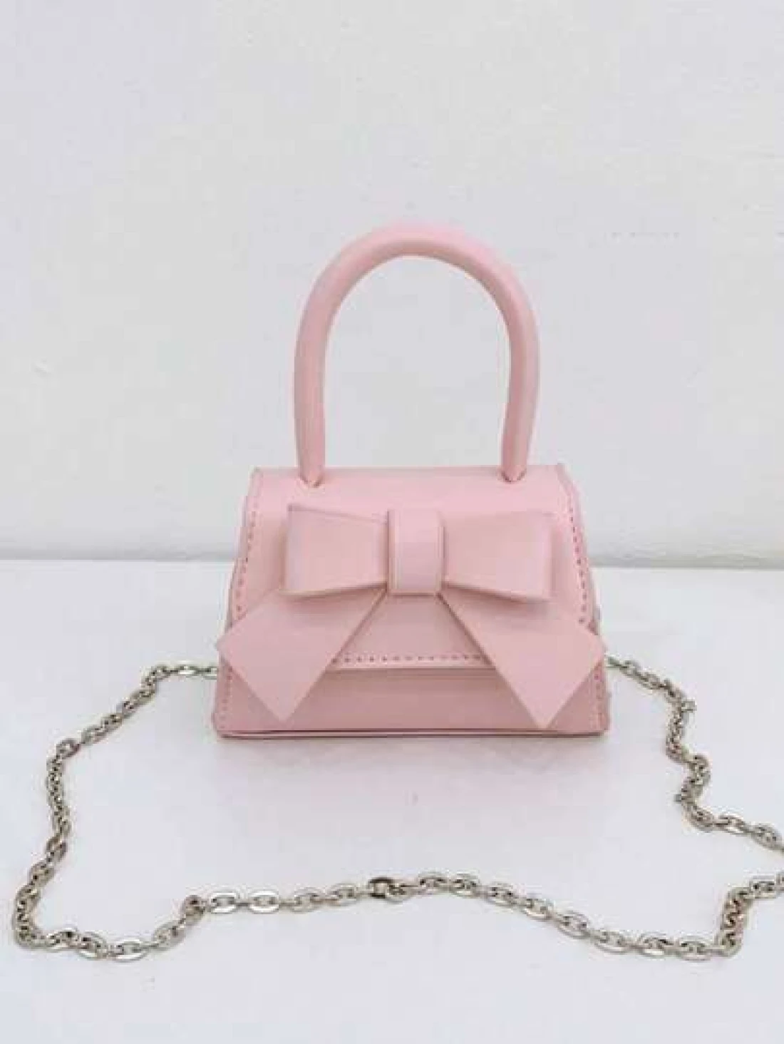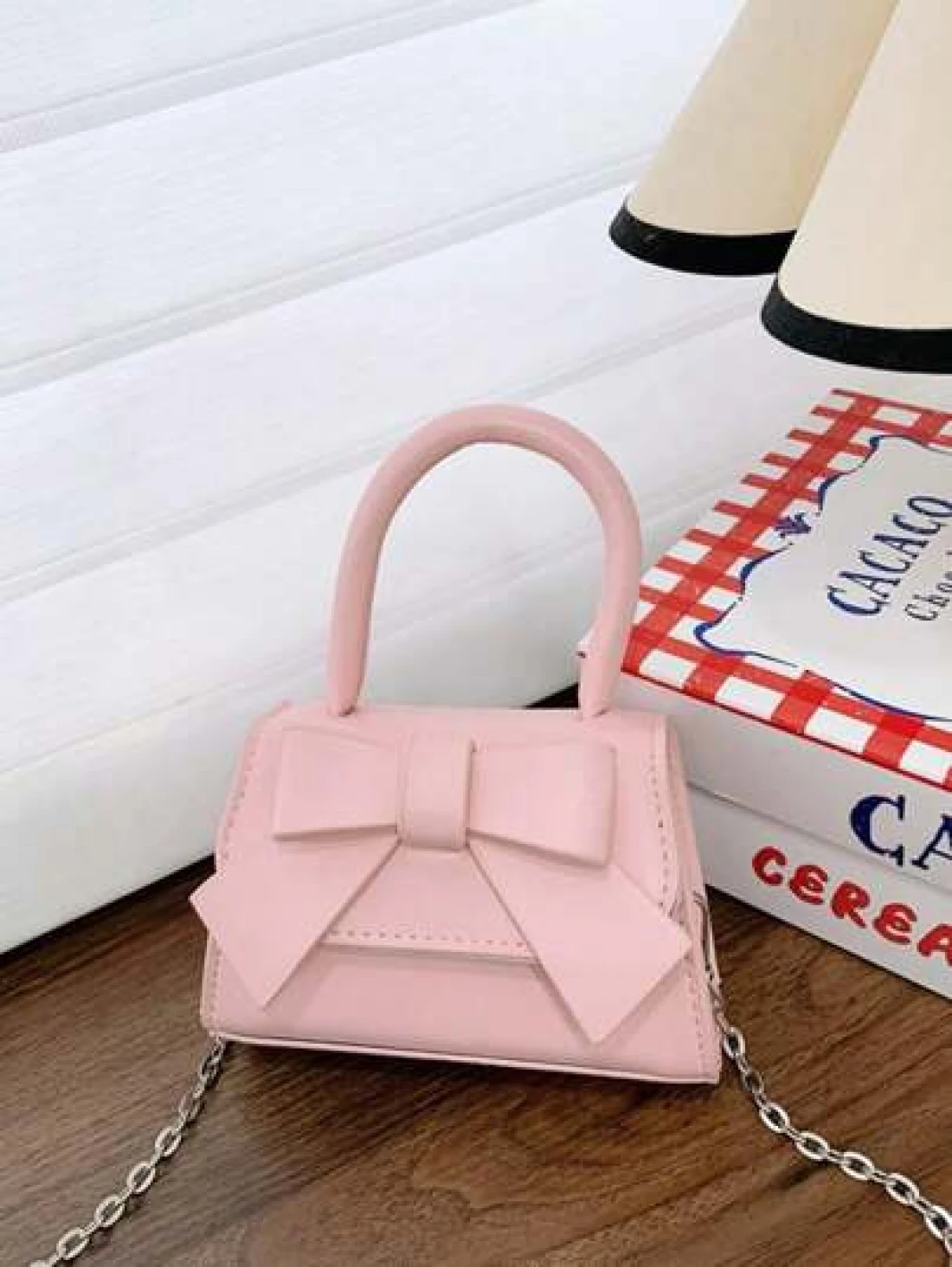 1pc Pu Magnet Closure Mini Fashion Cartoon Cute Sweet Bow Handbag Niche Design For Going Out To Play Change Lipstick Bag Korean Highly Attractive Chain Shoulder Messenger Bag Suitable For Going Out School Commuting Daily Use Is A Perfect Gift For Teenagers