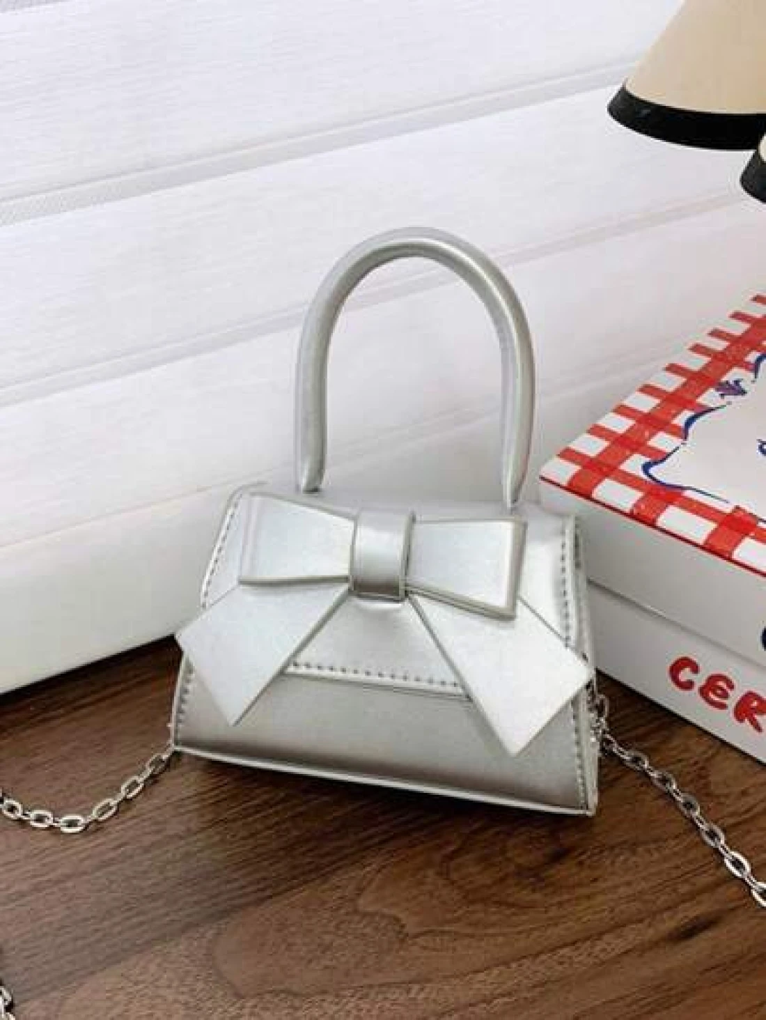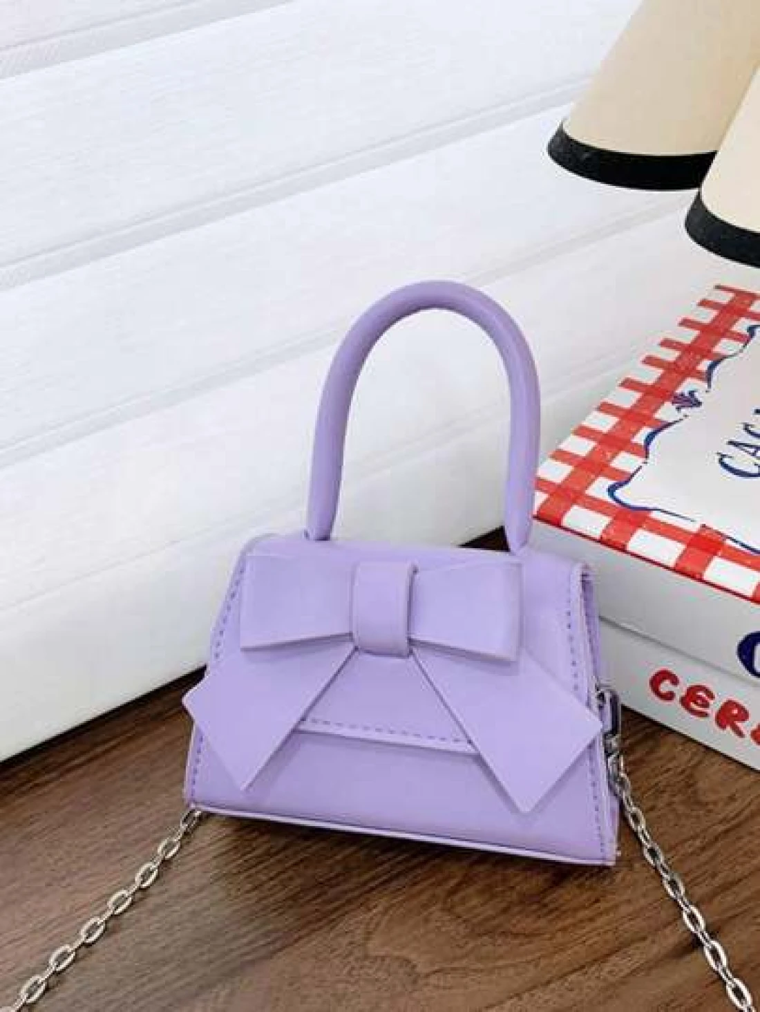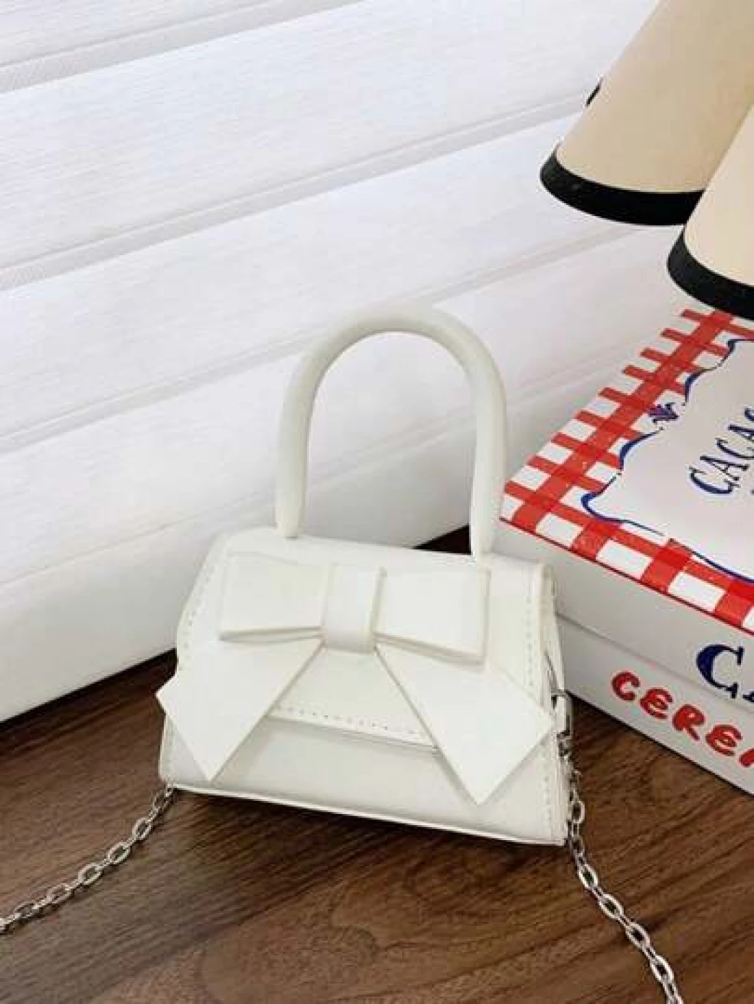 1pc Pu Magnet Closure Mini Fashion Cartoon Cute Sweet Bow Handbag Niche Design For Going Out To Play Change Lipstick Bag Korean Highly Attractive Chain Shoulder Messenger Bag Suitable For Going Out School Commuting Daily Use Is A Perfect Gift For Teenagers