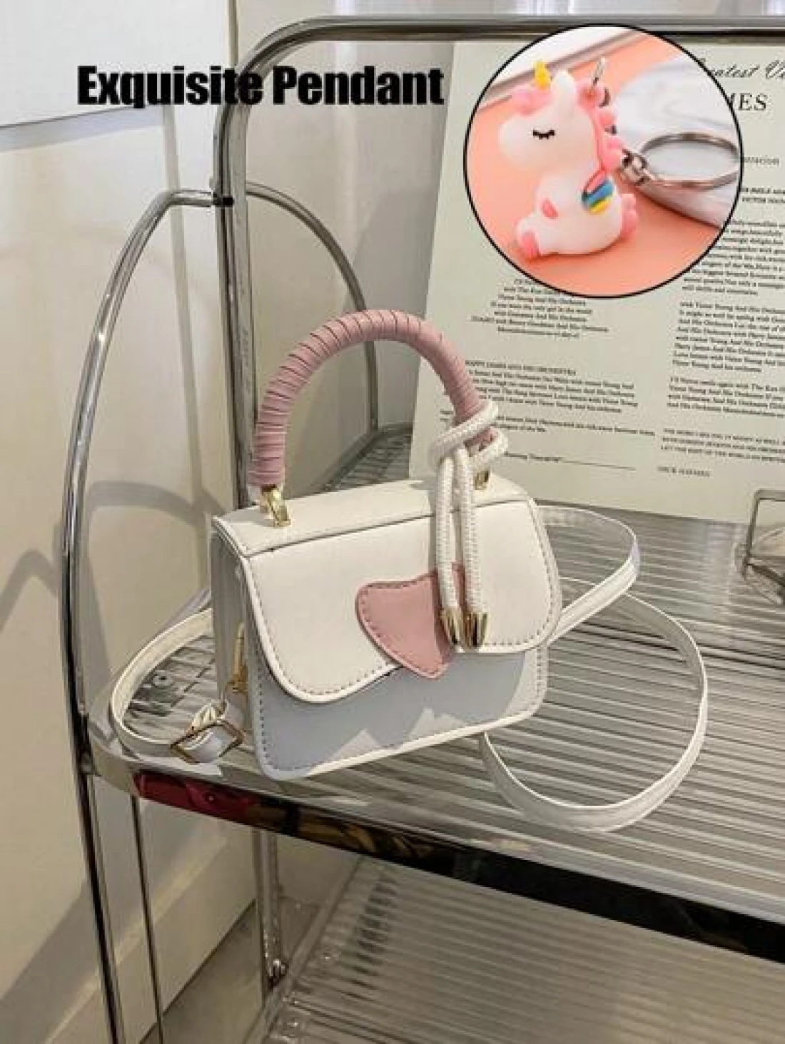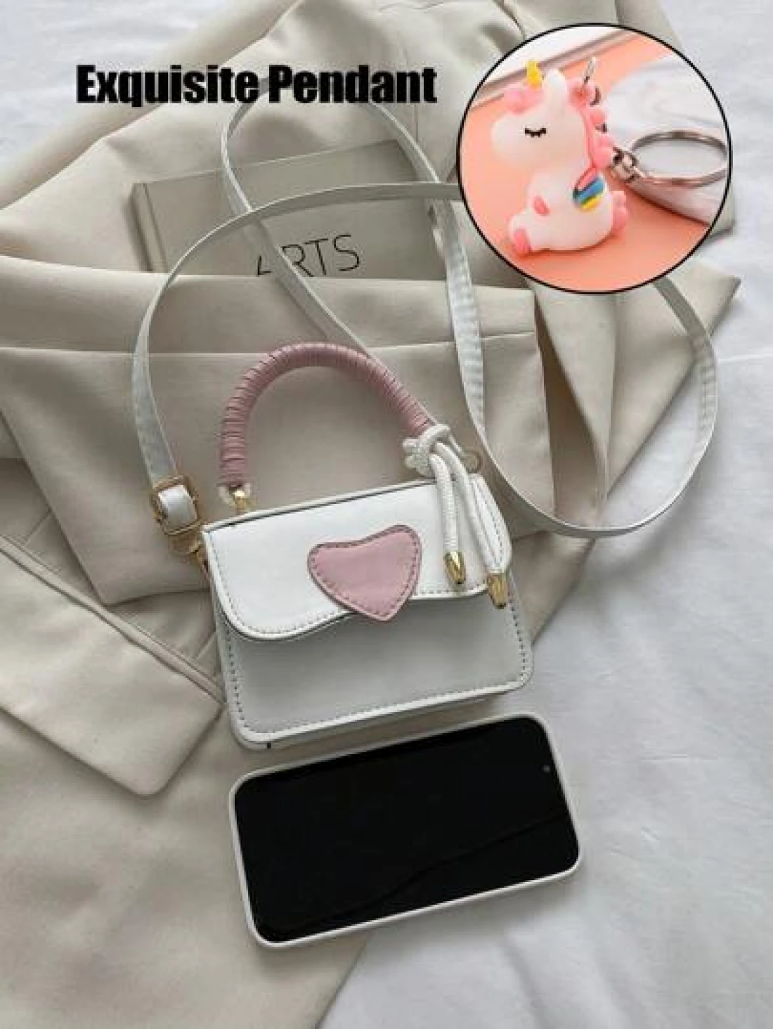 1 Pc Mini Girls Heart Shaped Color Block PU Fashion Shoulder Handbag Crossbody Bag Suitable For Daily Use
