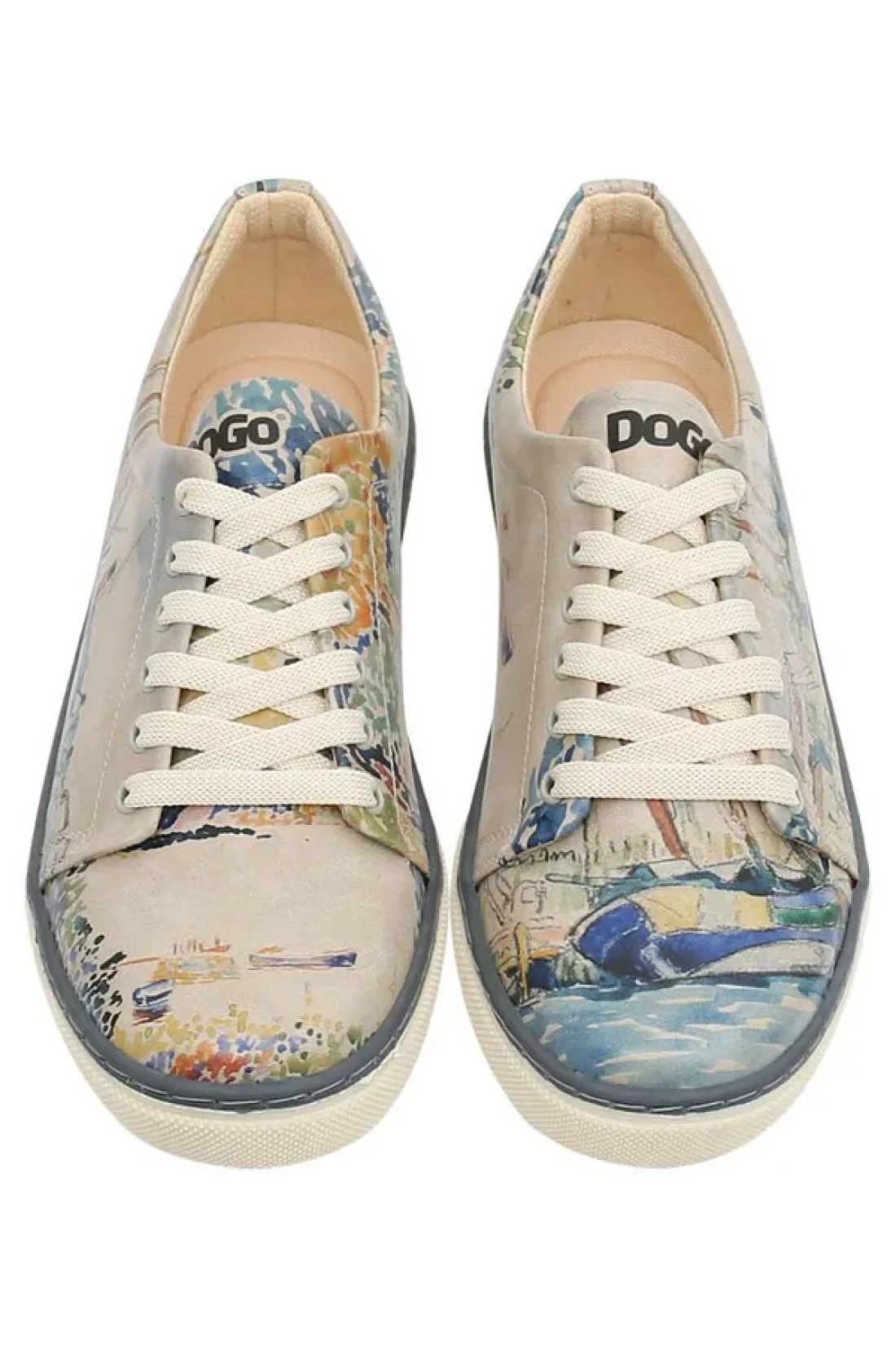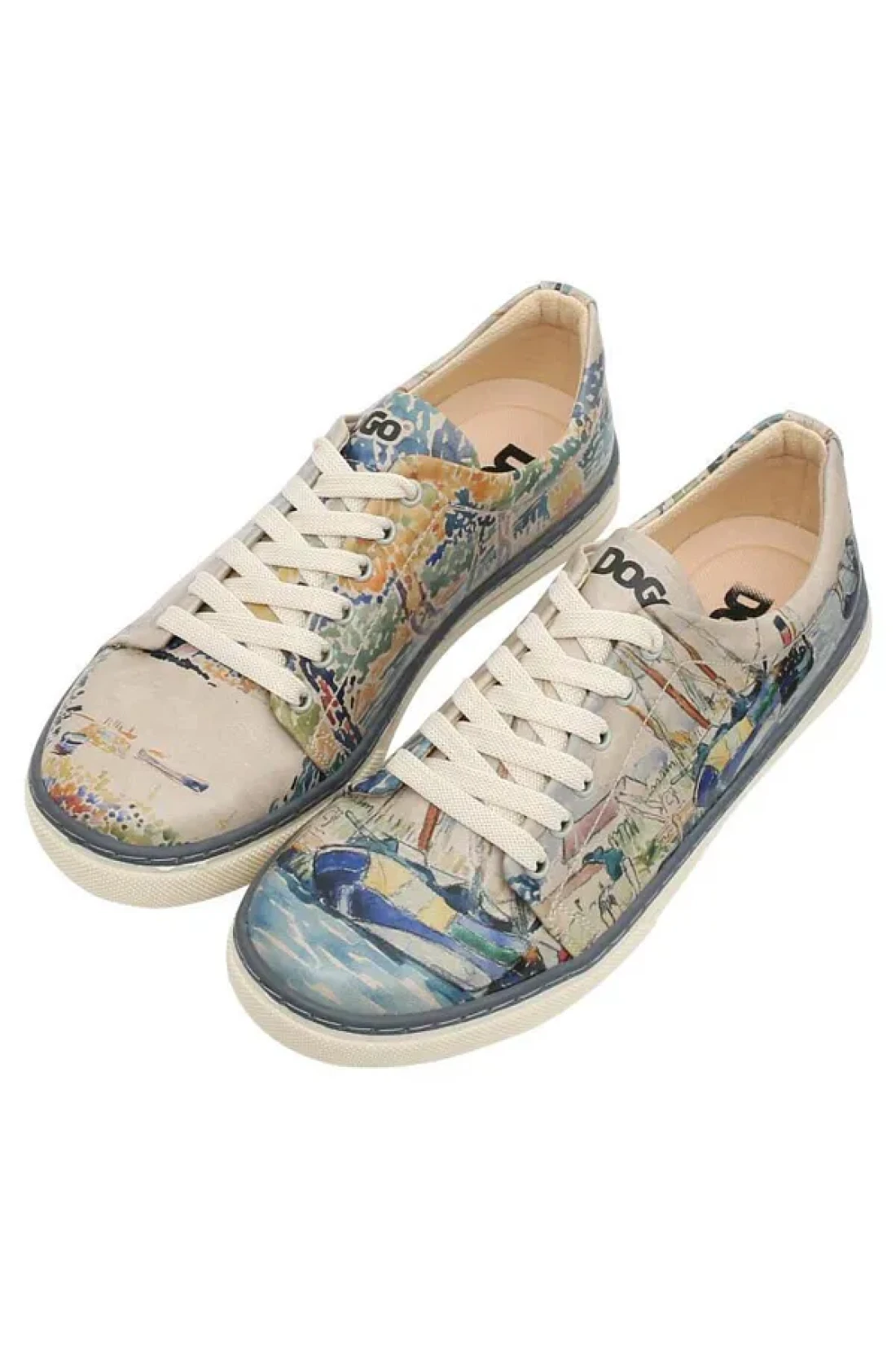 Dogo Women's Vegan Leather Beige Sneakers - Watercolor And Sailors Design