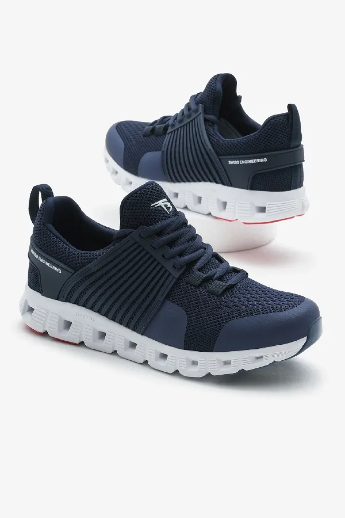 Tonny Black Unisex Navy Blue Design Thermo Sole Stripe Breathable Fabric Lace-Up Sports Shoes