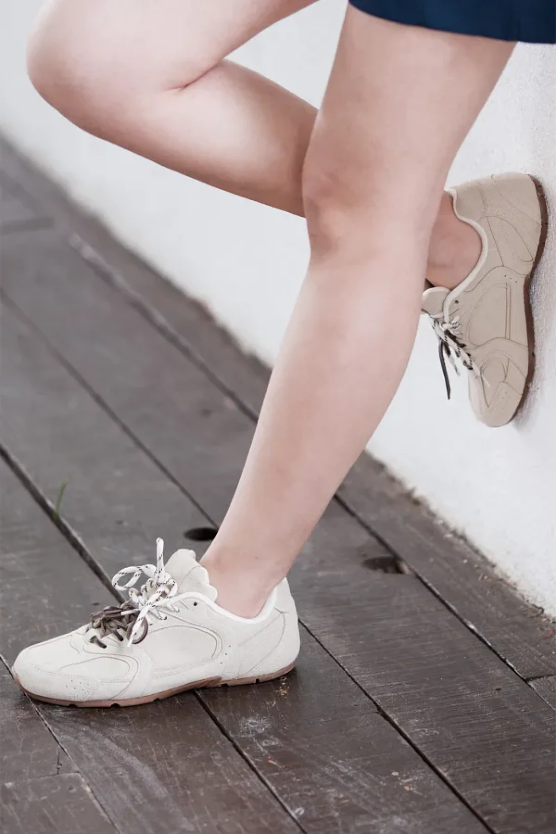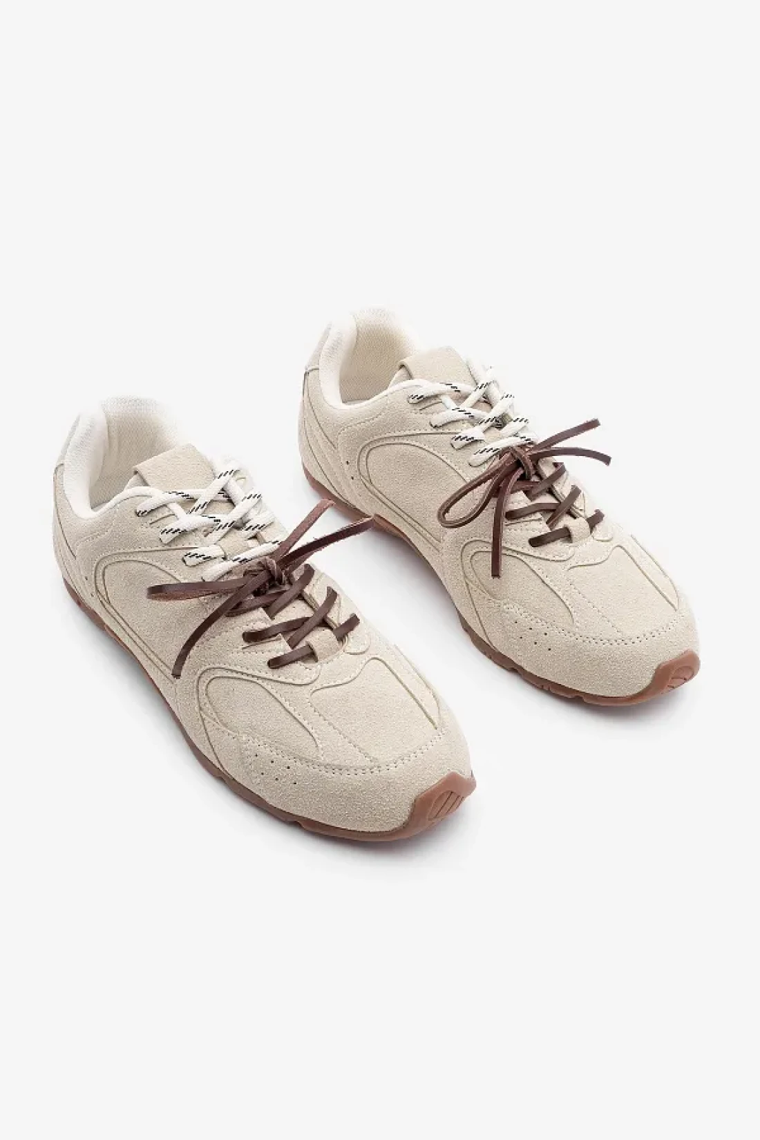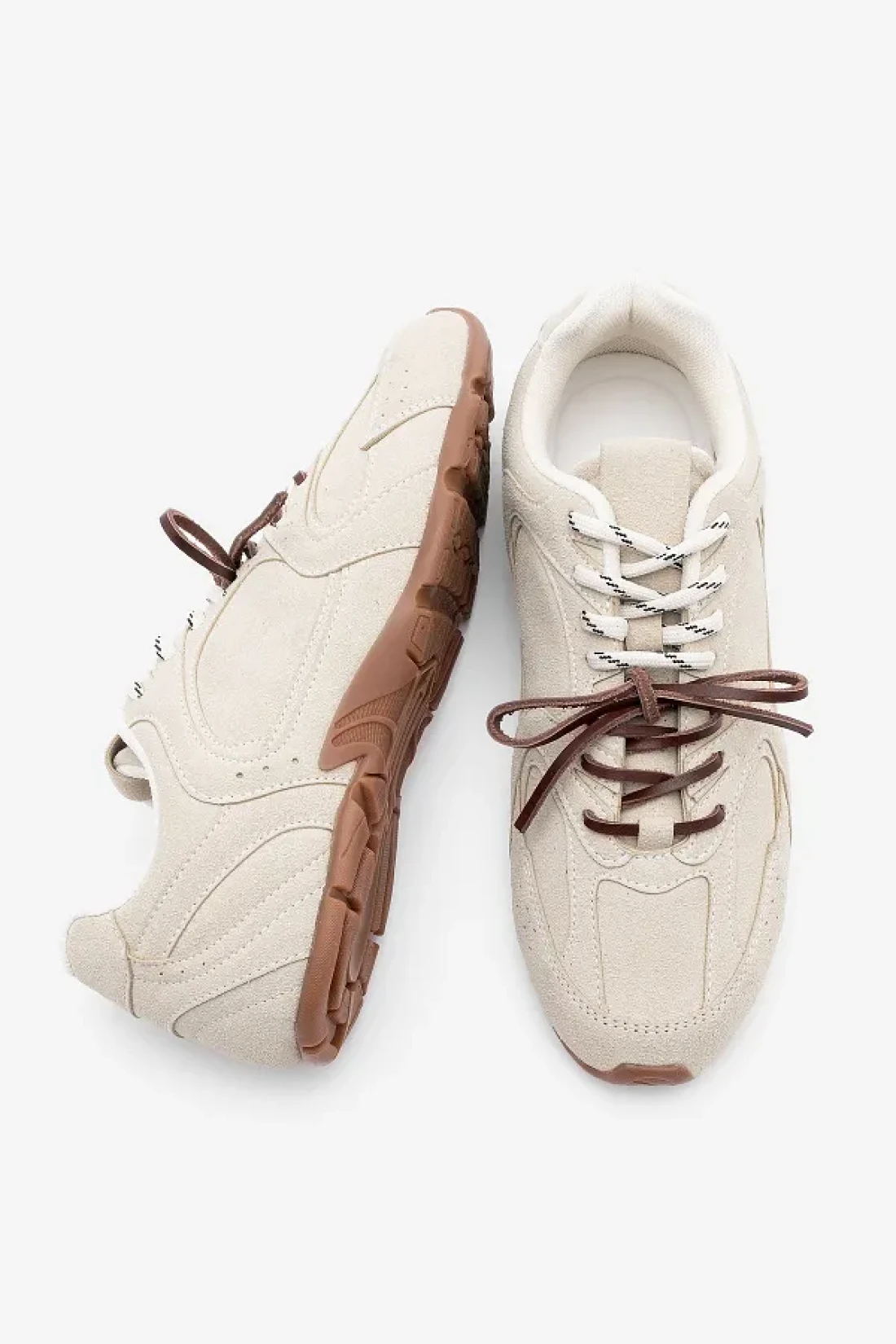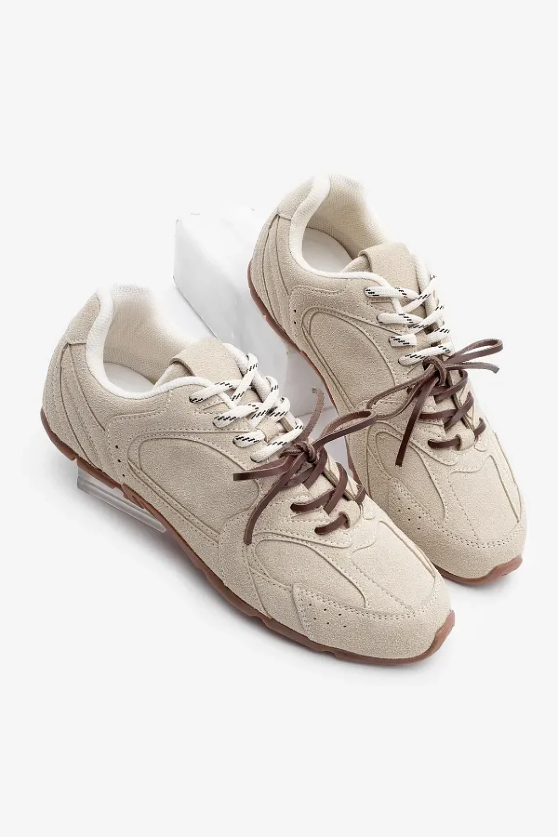 Marjin Beige Suede Women's Sneakers - Double Lace-Up Sports Shoes