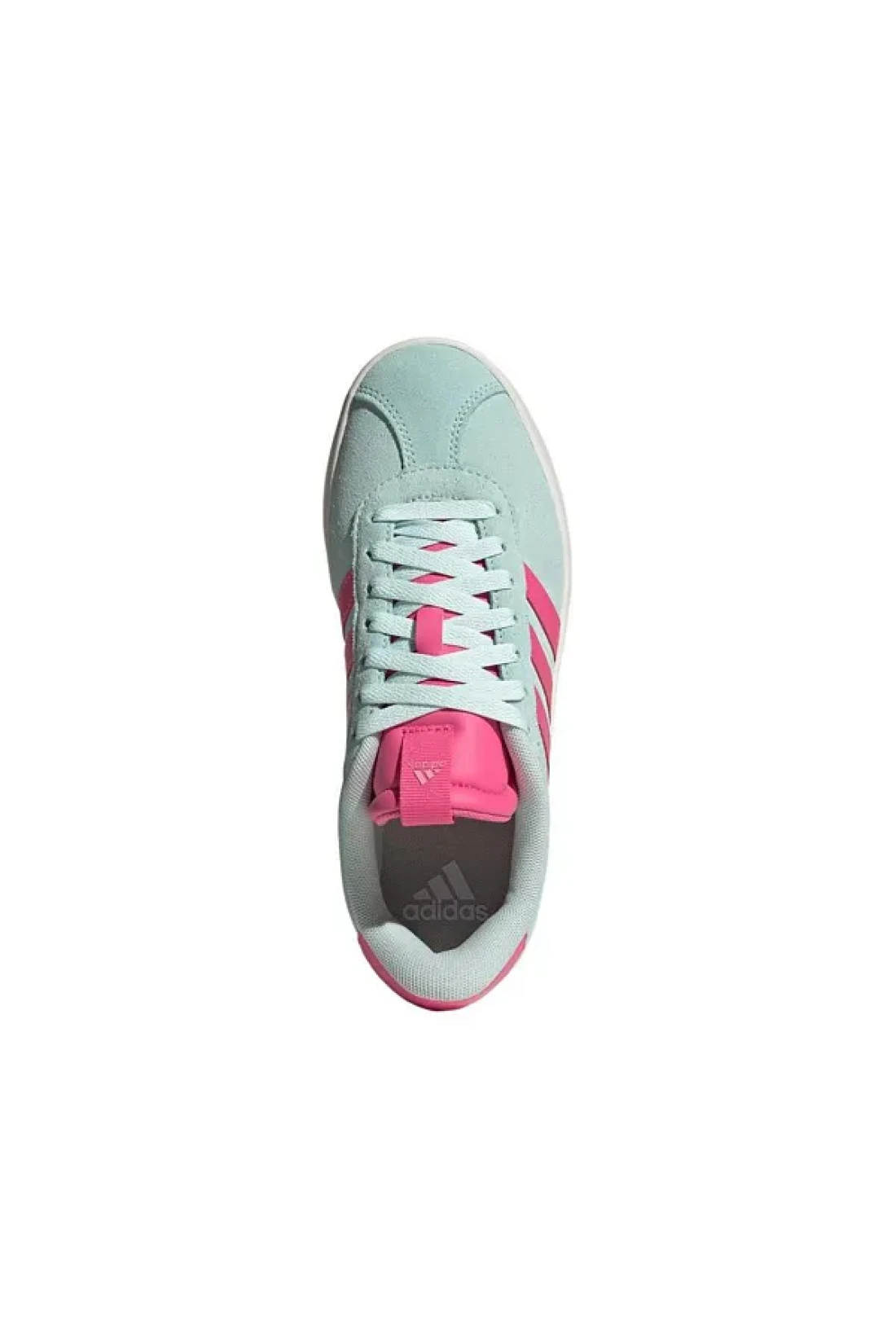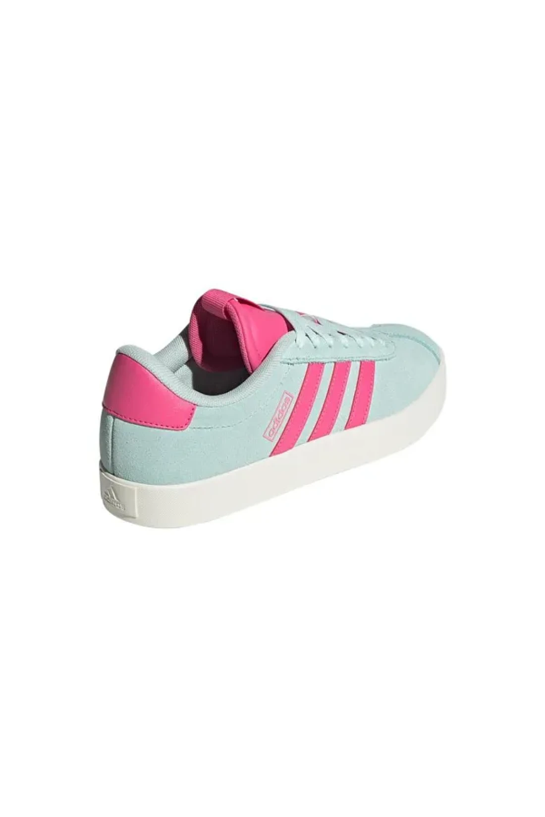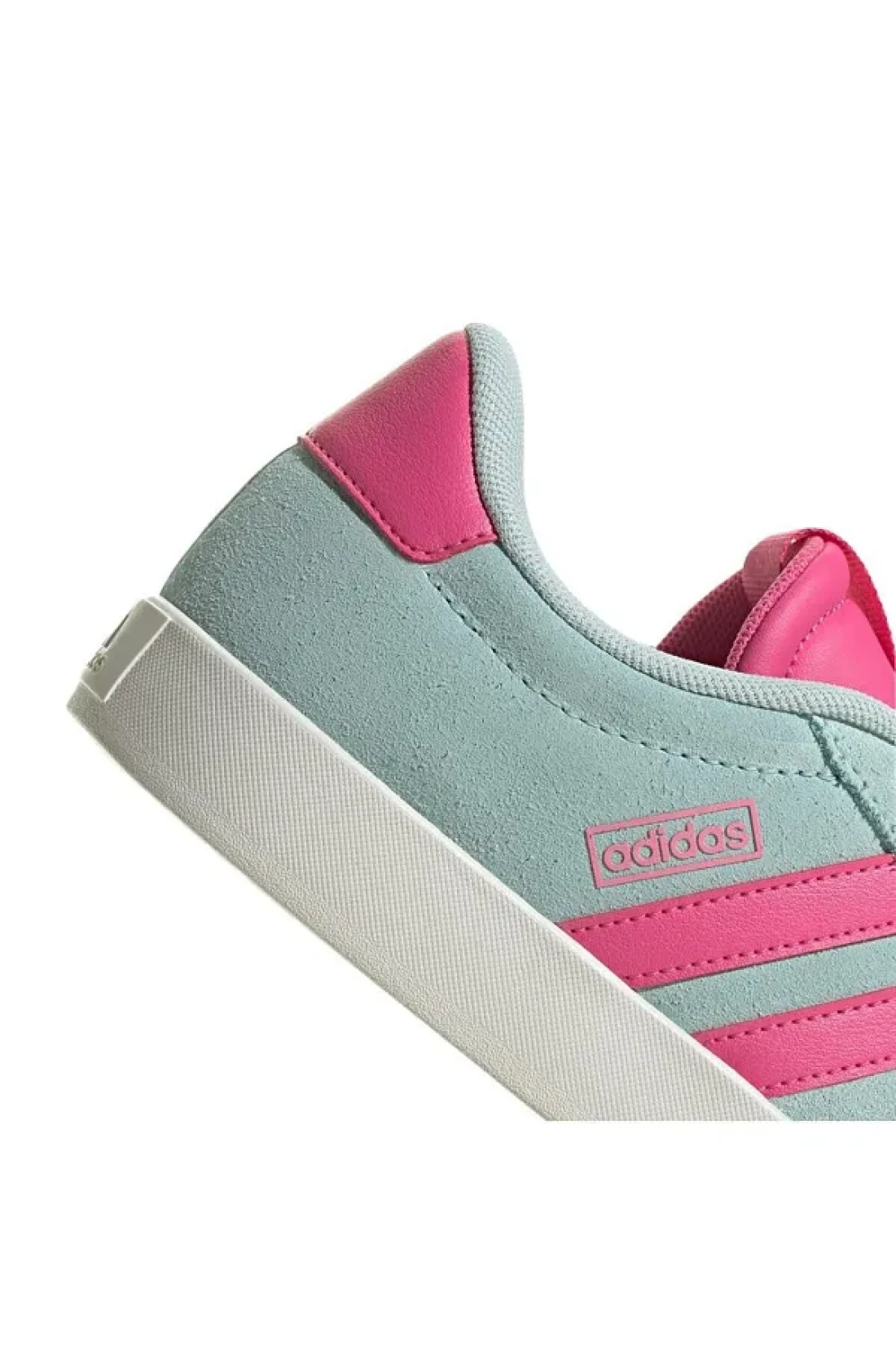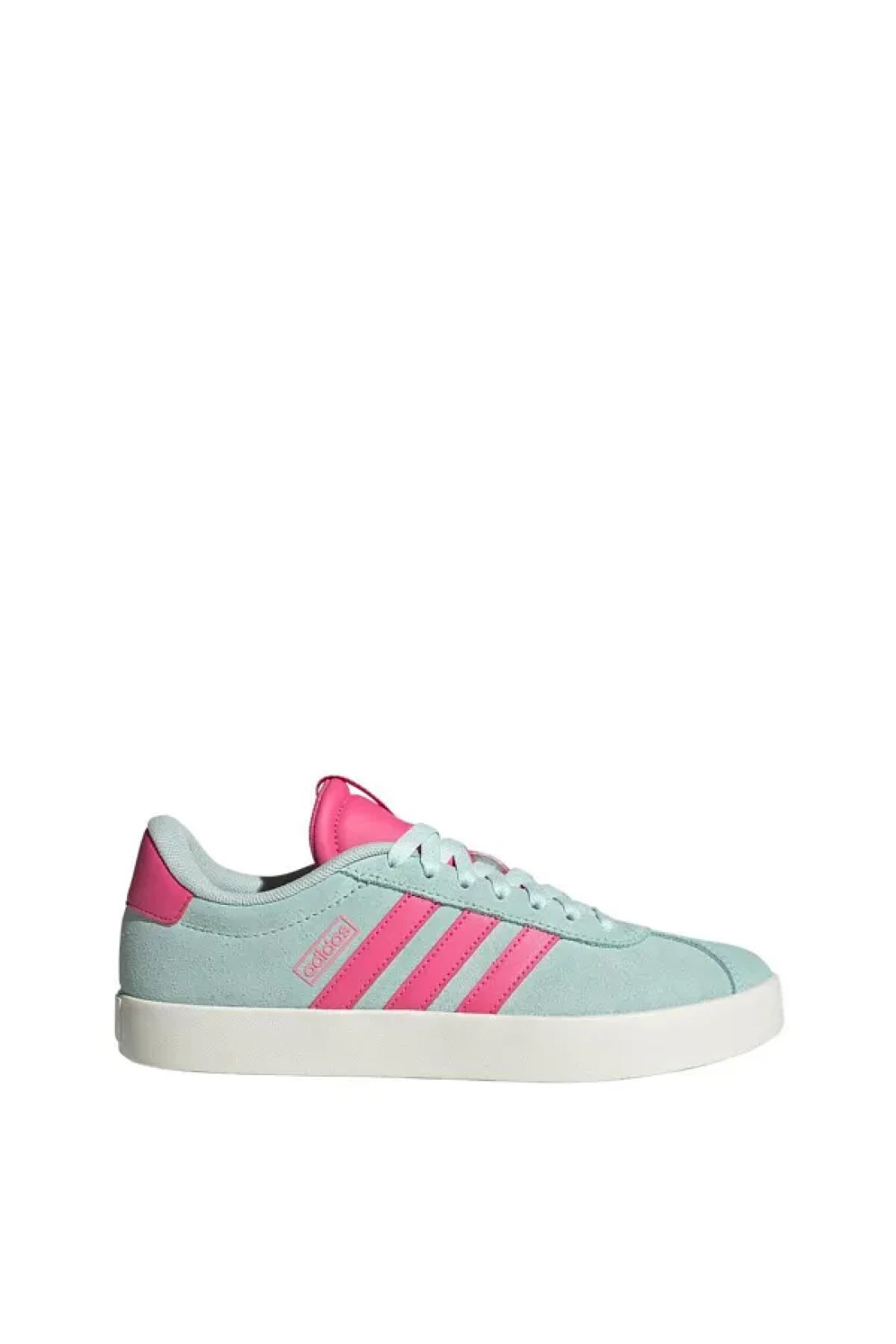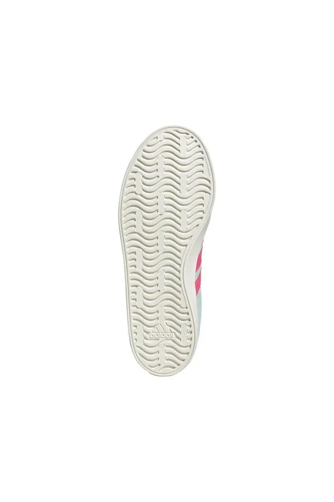 This adidas sports shoe stands out with its clean lines, soft coated leather upper surface, and skateboard-style hardened outer sole.