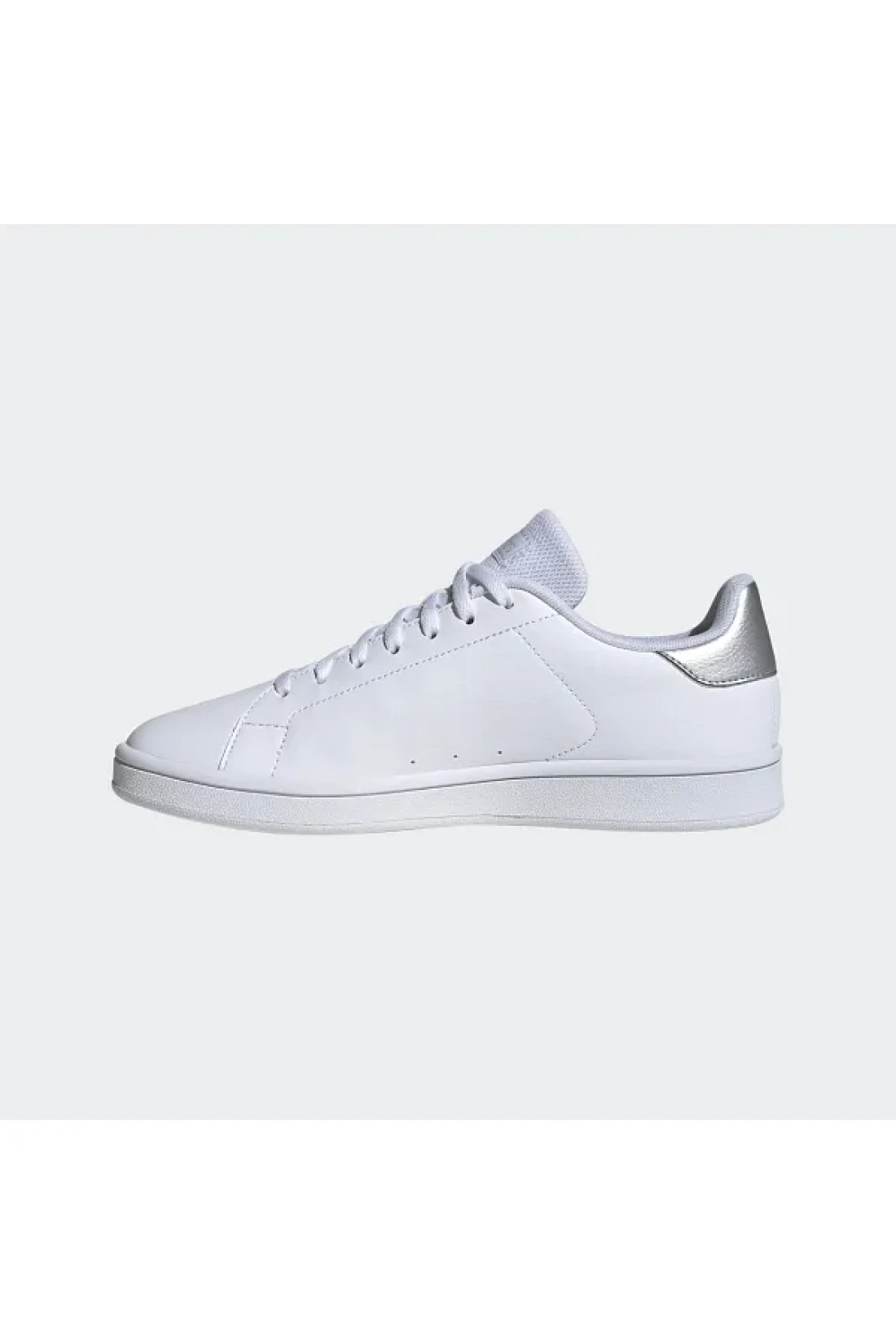 regular fit lace closure synthetic upper textile lining rubber sole contains at least 20% recycled content color: cloud white / silver metallic / silver metallic product code: if9787
