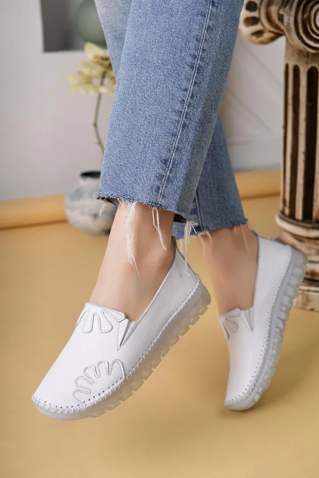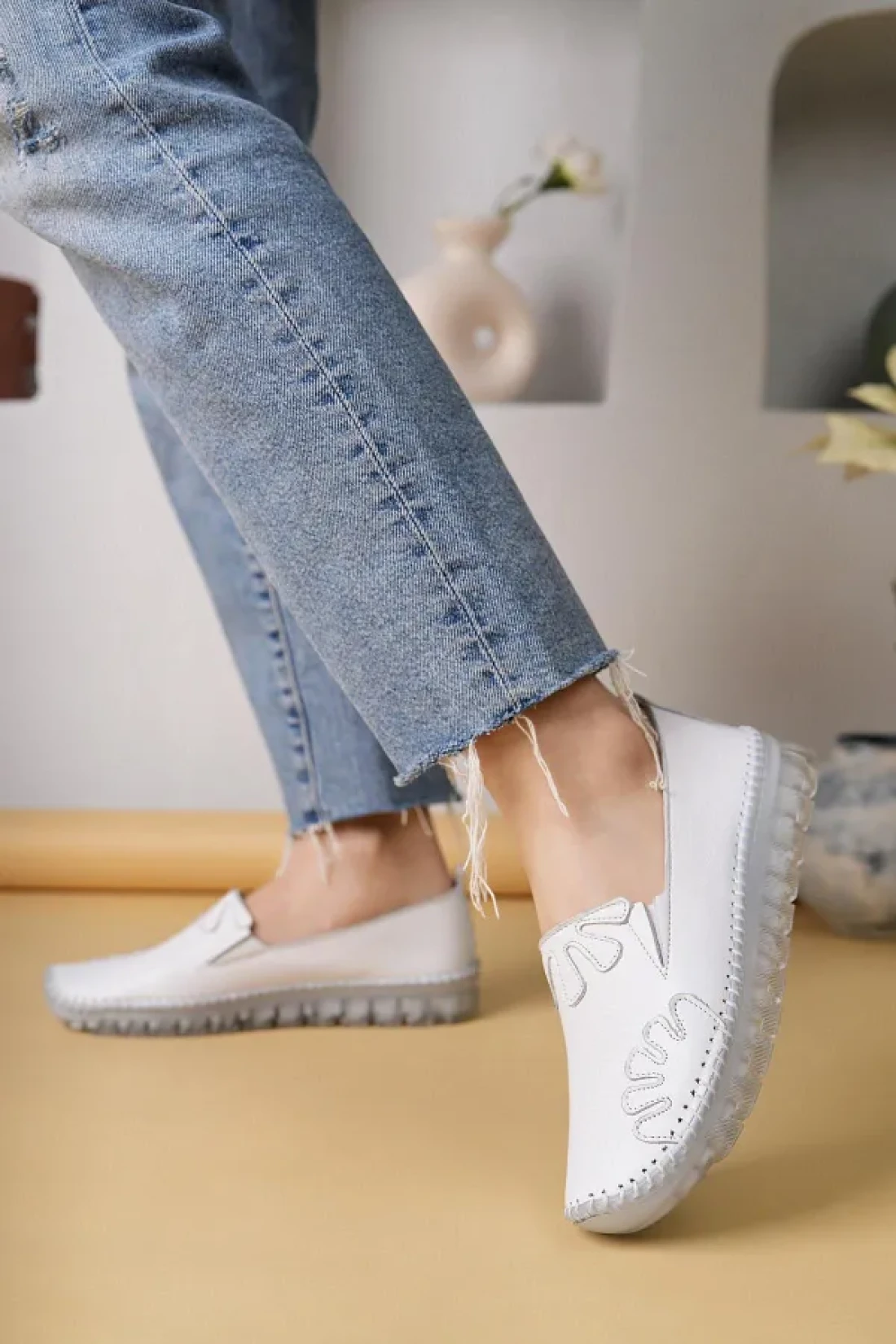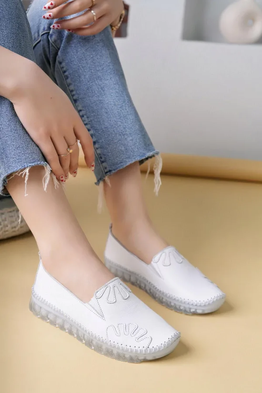 Nesil Shoes Knc 10 White Genuine Leather Transparent Sole Women's Shoes