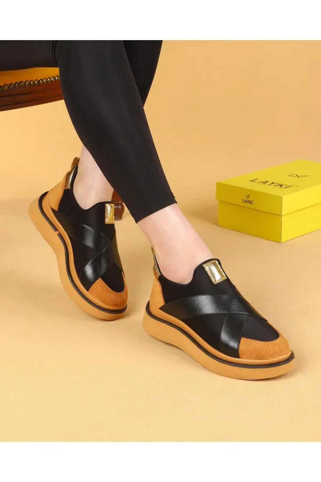 layki Nesica Black and Tan Colored Elastic Parachute Fabric Hiking Shoes