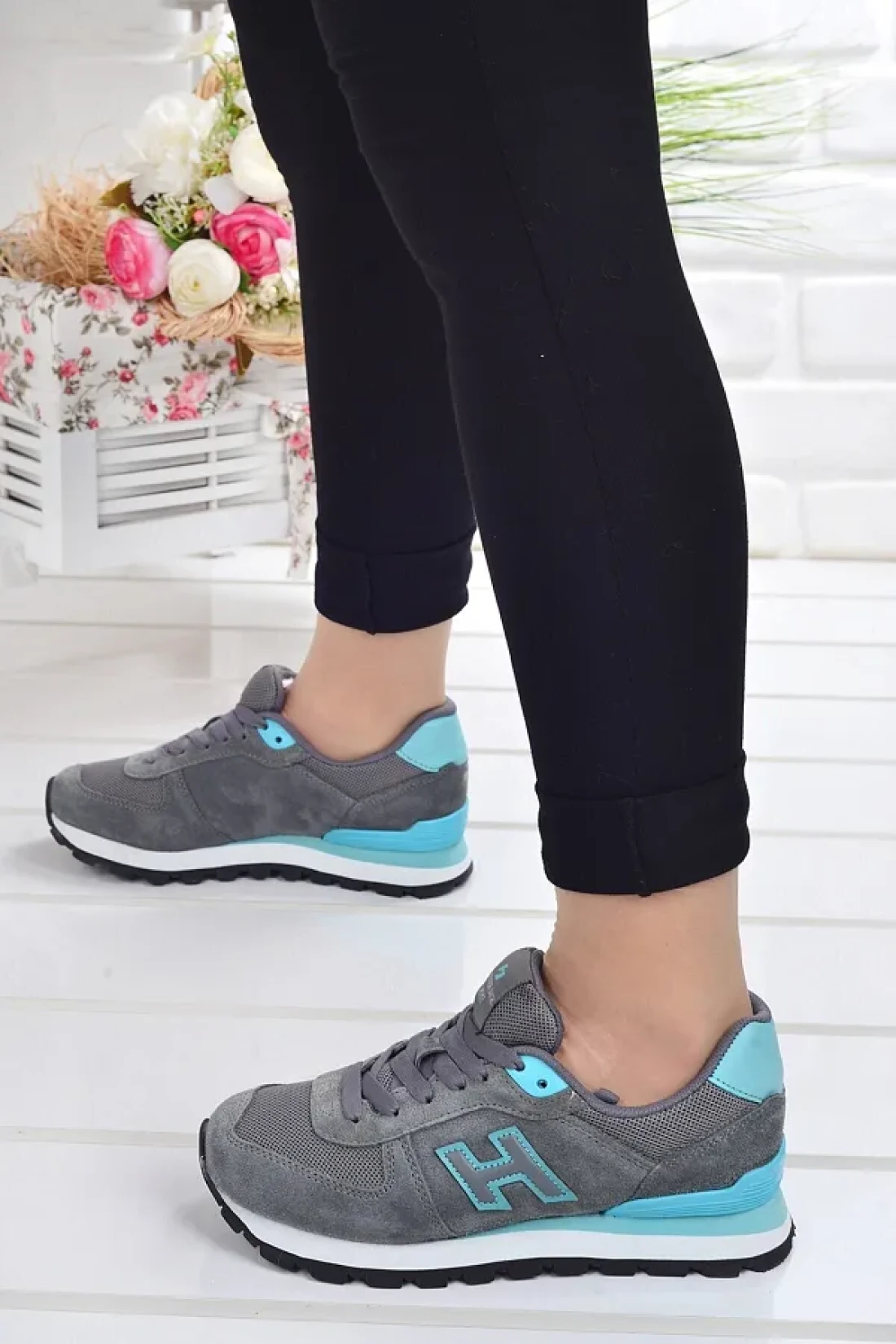 Gray, which stands out with its comfortable and stylish design, ideal for daily use. Turquoise sneakers With its simple and solid pattern, it easily matches any outfit, presenting a timeless style