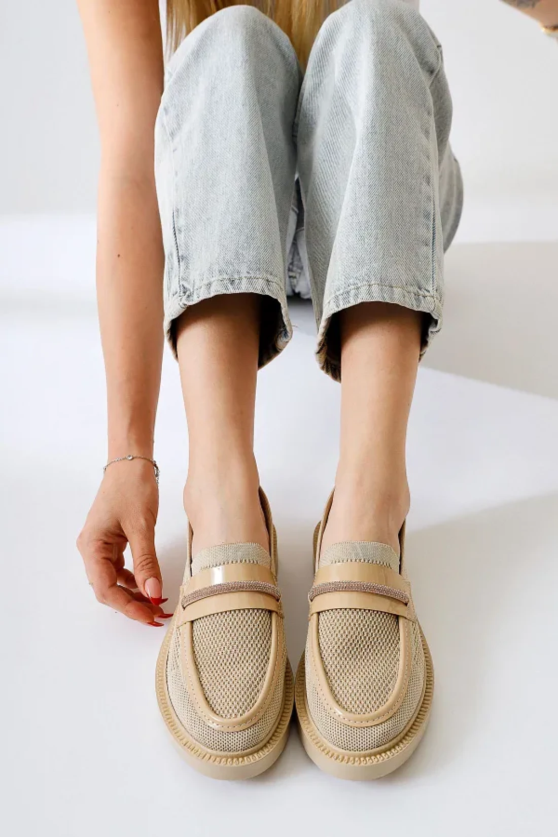 Micka bej örgü rugan detailed stone banded women's daily shoes comfortably ideal for daily use, with short heels (1
