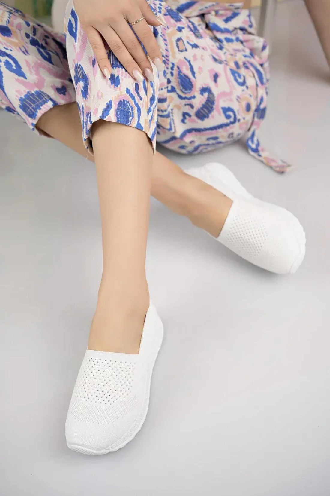 Nesil Shoes Aky 055 White Knitwear Summer Women's Shoes