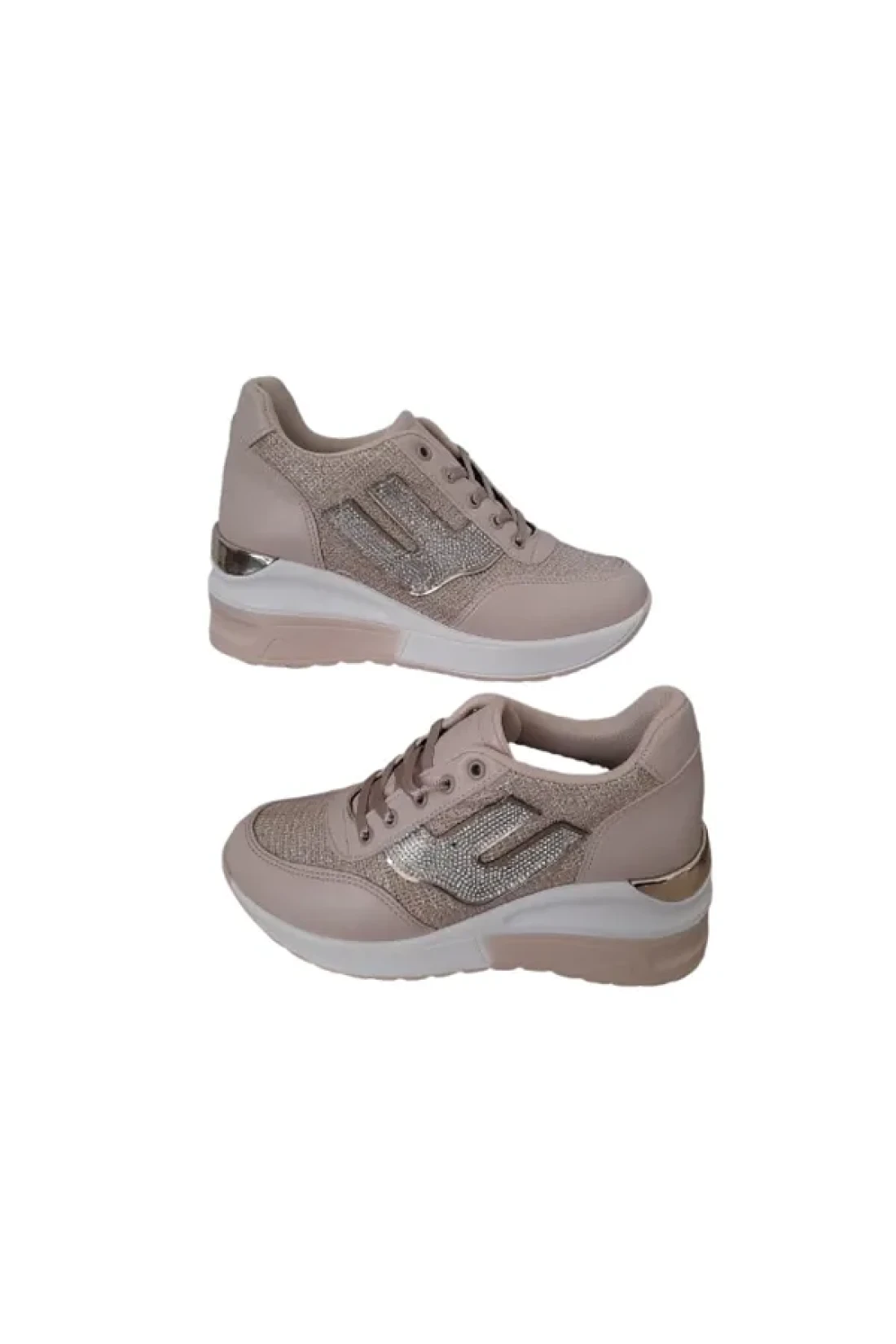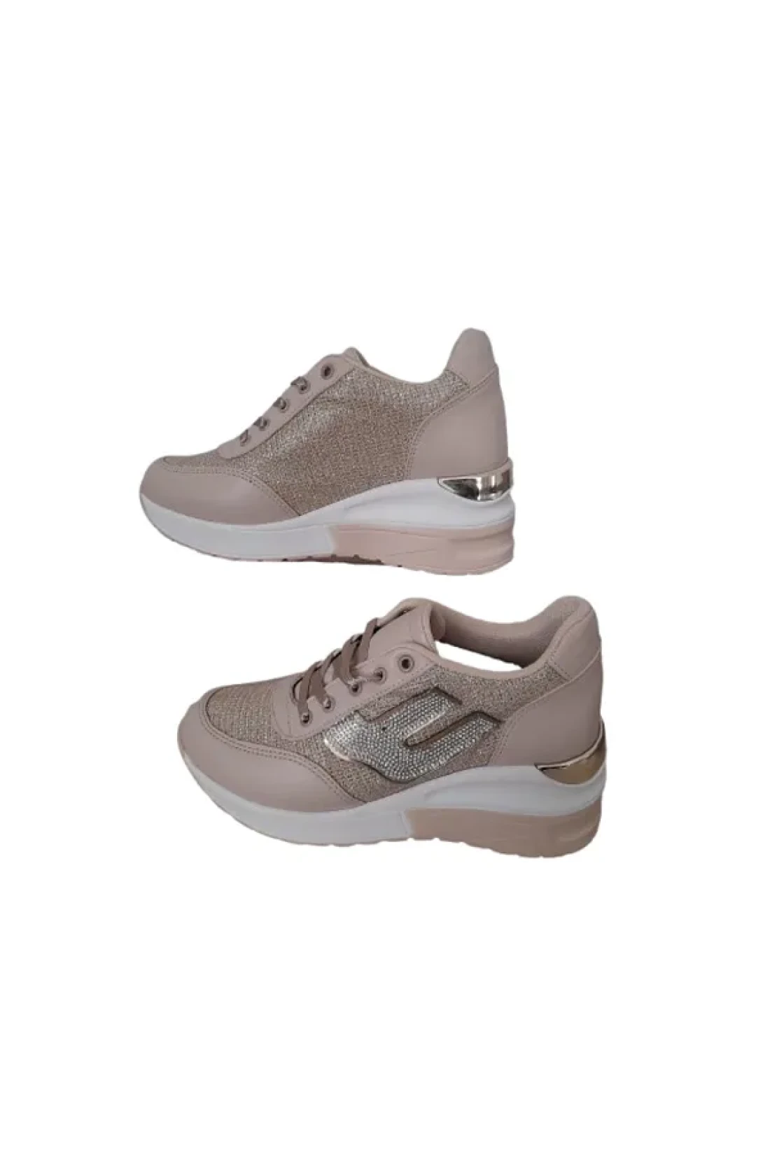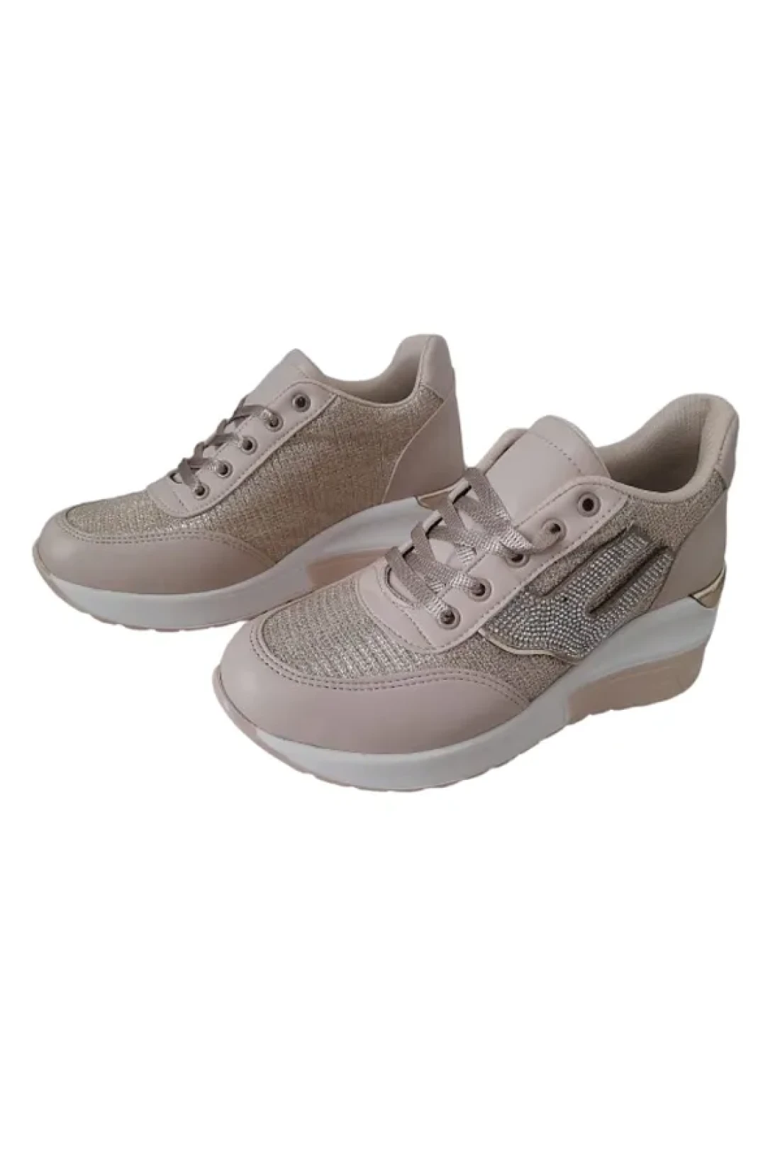HİGH STEP High Step Women's Silvery Hidden Heels Stylish Ecru Sneakers