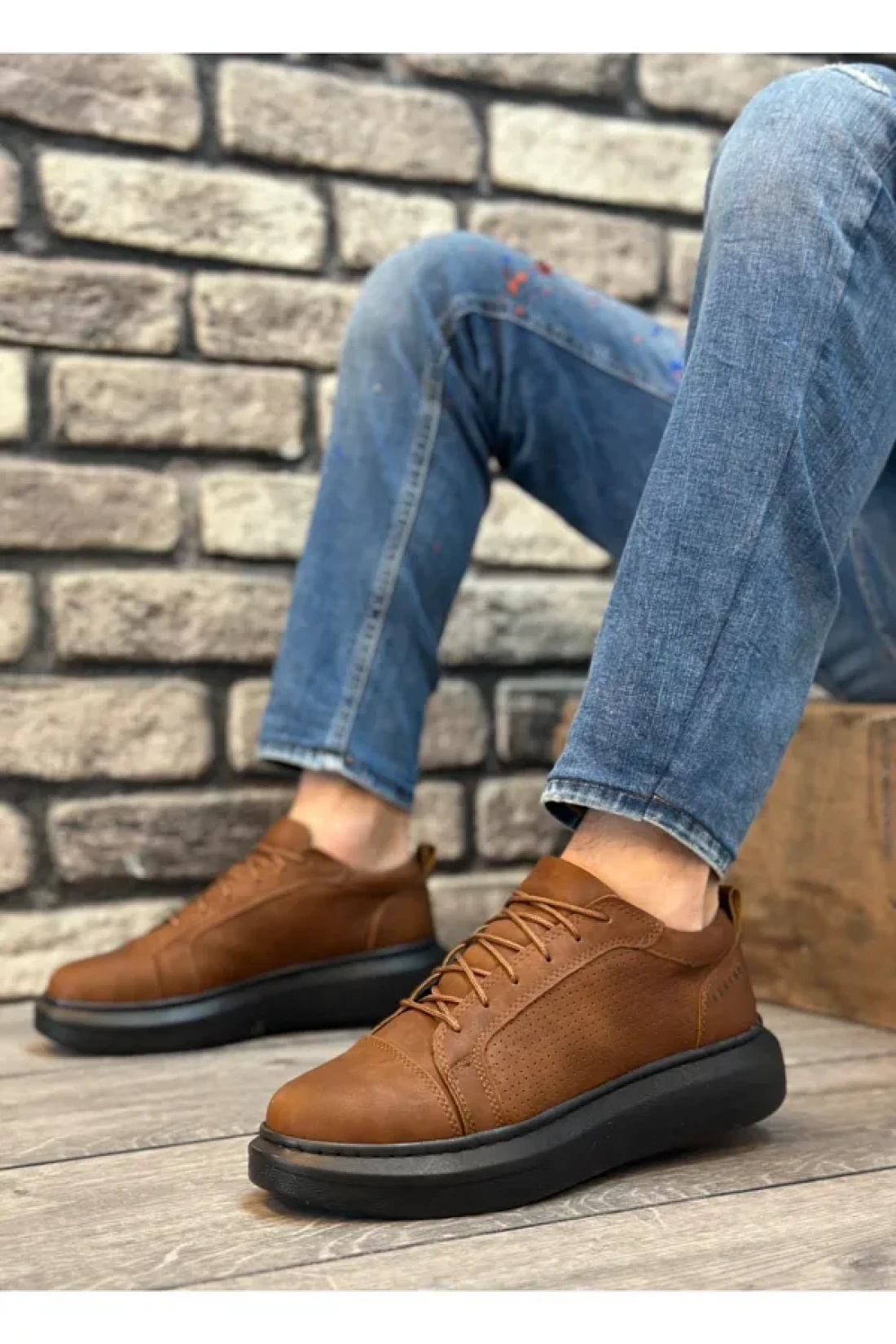BOA Ba0548 - Tan Black Sports Men's Shoes with High Sole and Laces