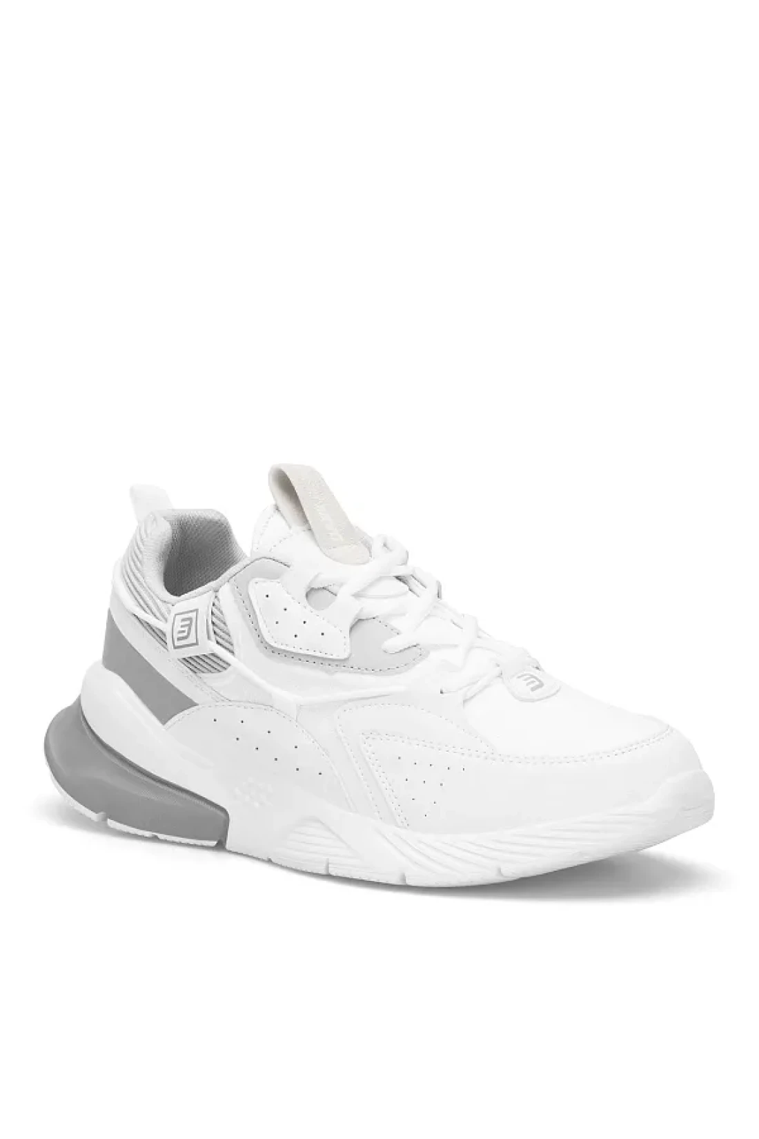 Plain patterned white sneakers that adapt to any environment with their simple and stylish design It offers comfort all day long with its breathable textile lining material. An indispensable part of the basic collection, ideal for daily use. It does not compromise its elegance while increasing durability with faux leather details. Thanks to the lace-up design, it fits perfectly on the feet and improves personal comfort