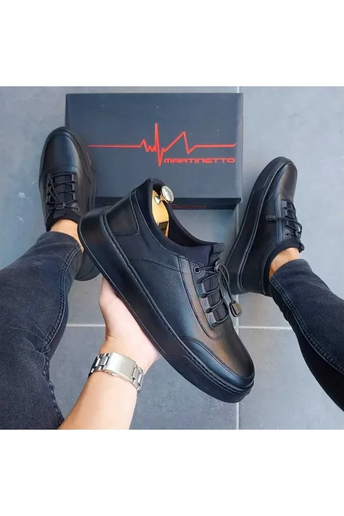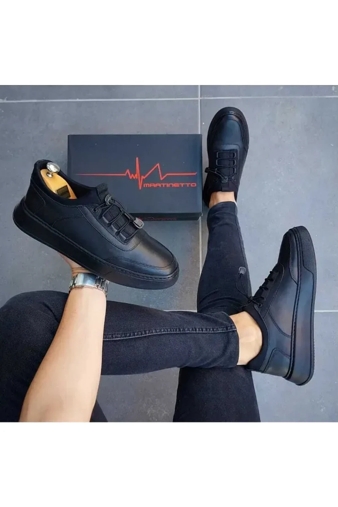 Martinetto Black Genuine Leather Stretch - Casual Shoes