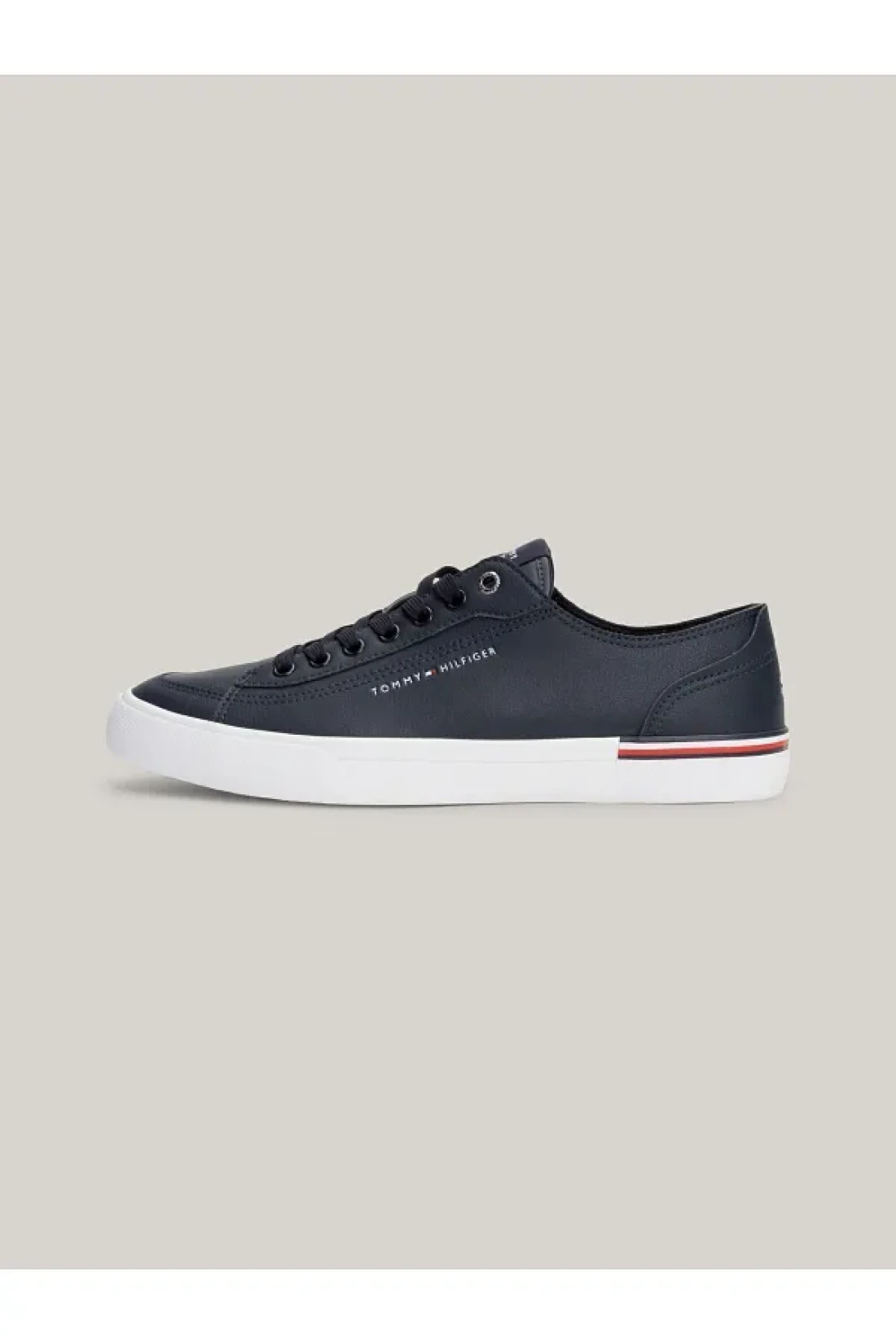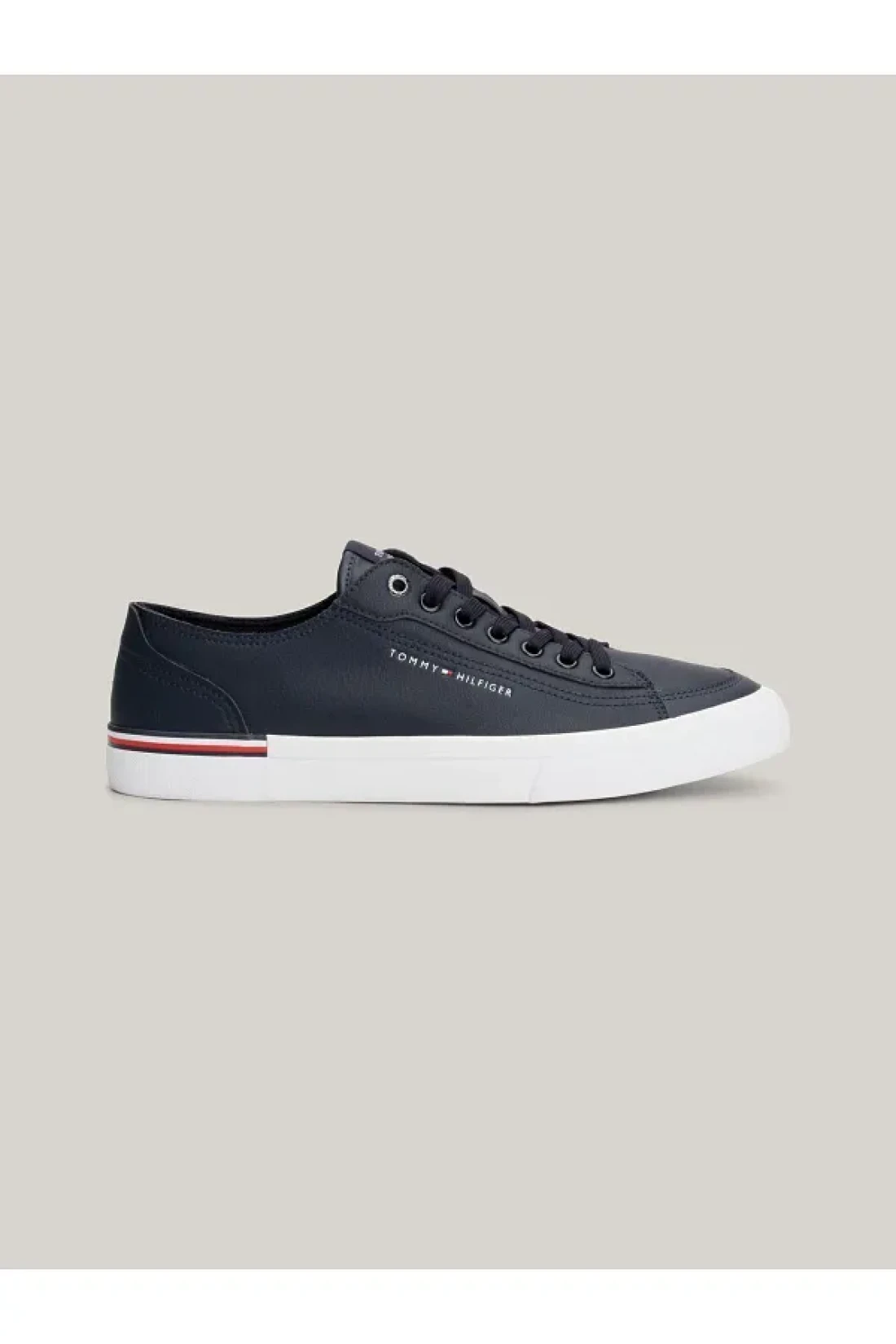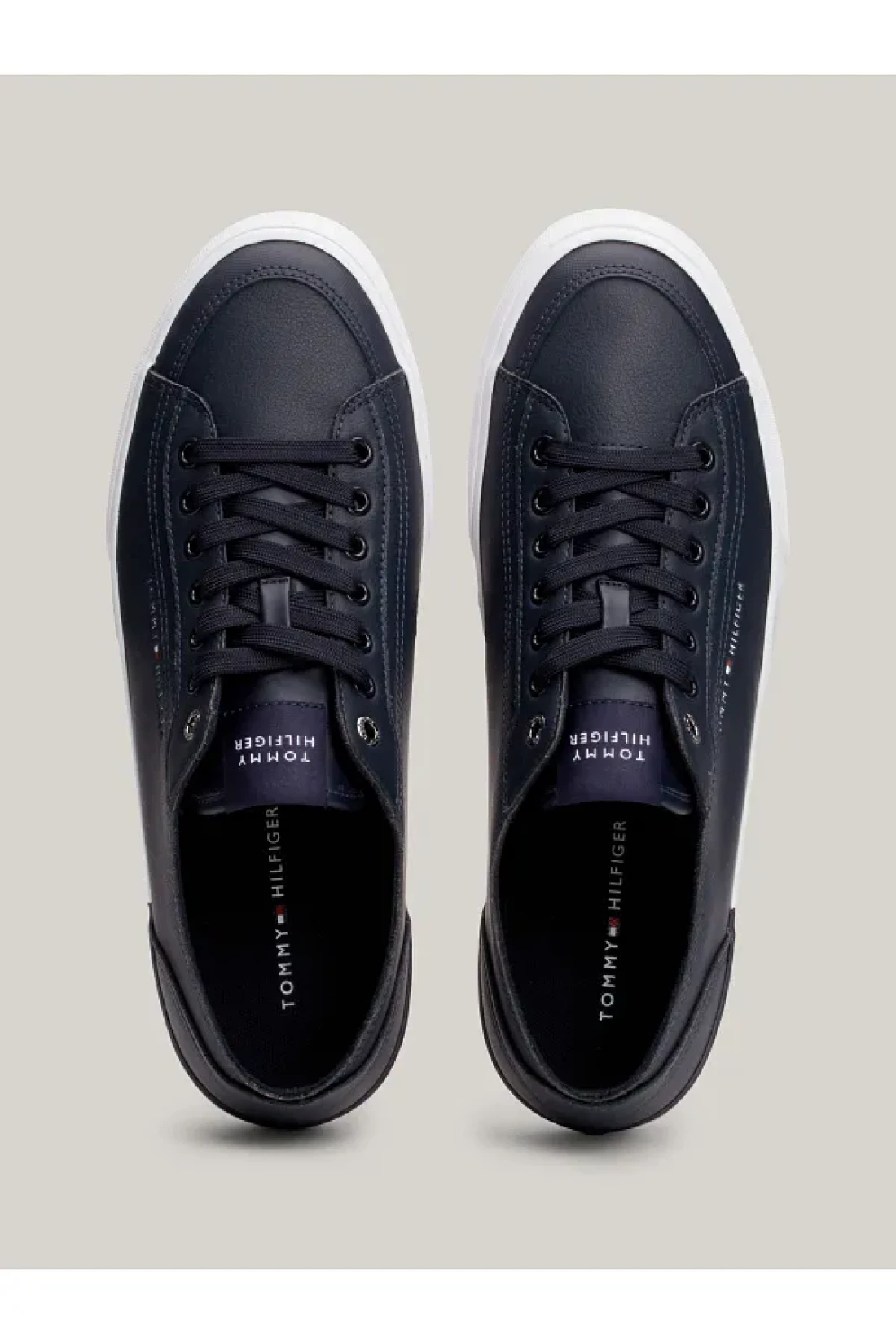 Highlights • leather blend upper • recycled polyester lining • polyurethane, recycled polyurethane and recycled thermoplastic rubber removable insole • vulcanized rubber and natural rubber outsole • signature detail on the outsole • tommy hilfiger logo on the side • tommy hilfiger brand • embossed tommy hilfiger flag on the back • low top • lace-up • round toe composition and care • 70% leather, 20% nylon, 10% polyurethane fm0fm04953