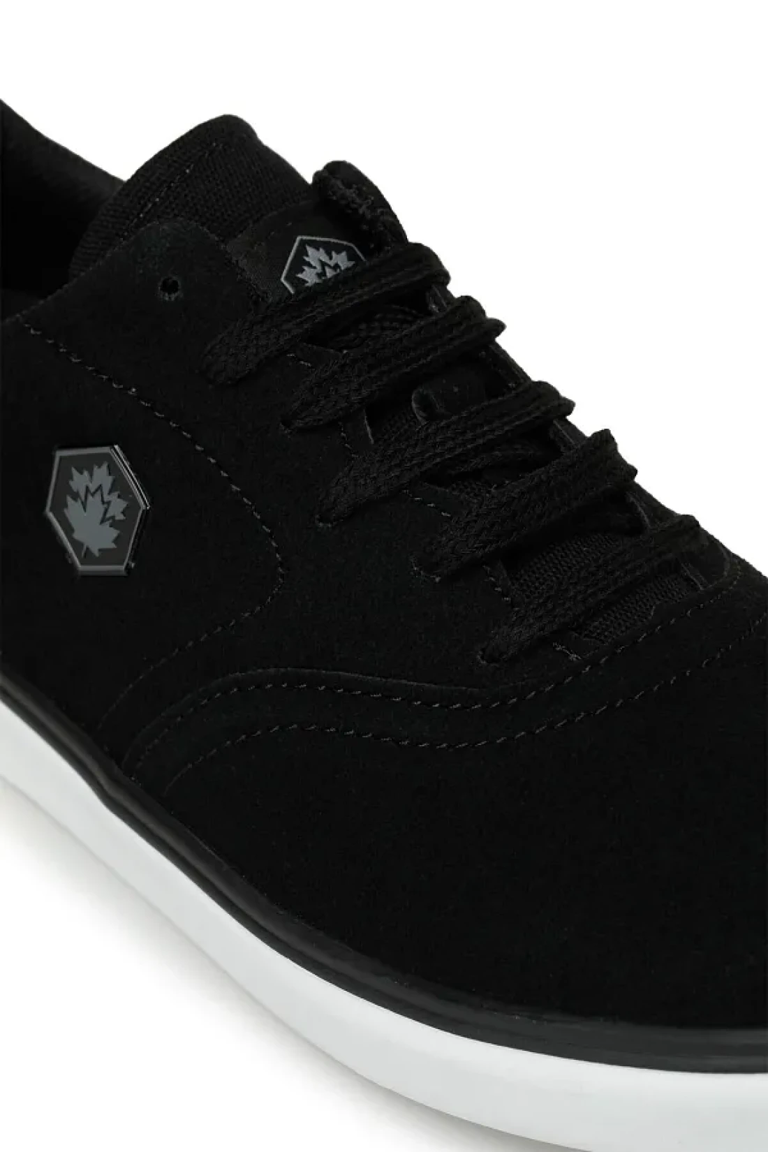 Black men's sneakers that stand out with their comfortable and stylish design, ideal for daily use. Thanks to its artificial leather material, it offers durability and comfort together. With its solid pattern, it provides a simple and timeless look that easily matches any outfit