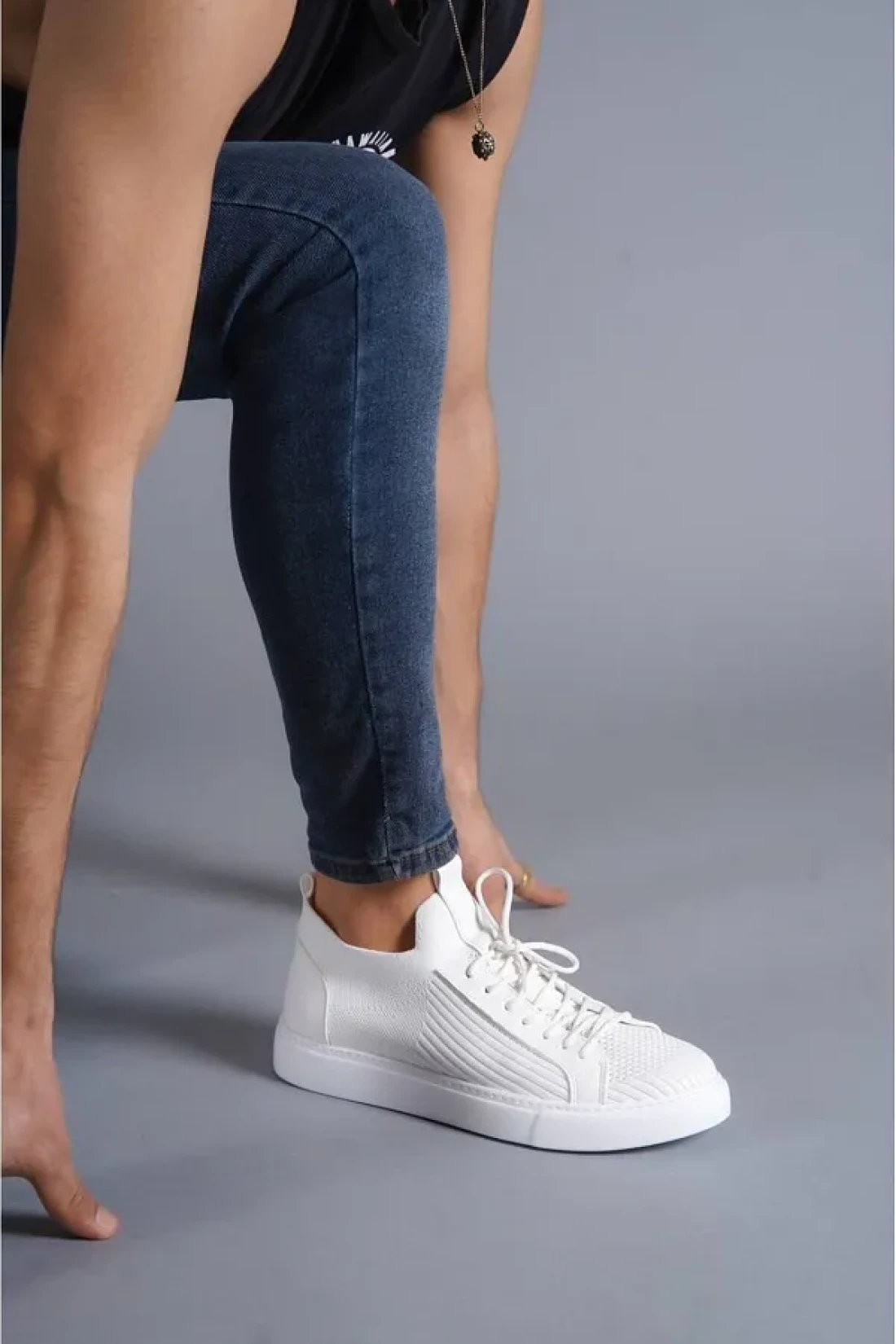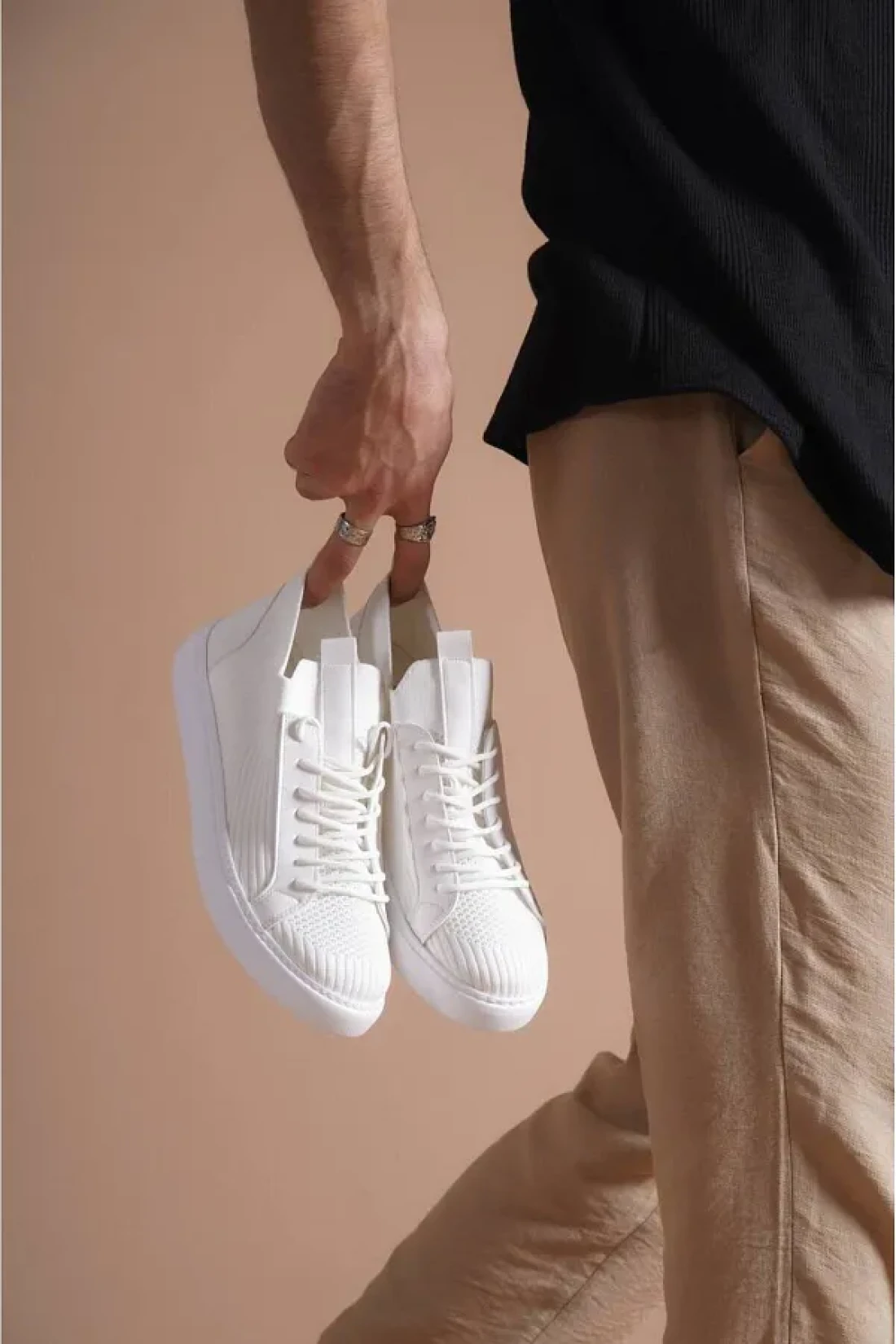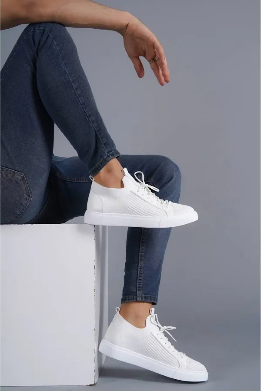 BZ Moda B112 BT Laced Orthopedic Sole Knitwear Men's Sneaker Shoes White