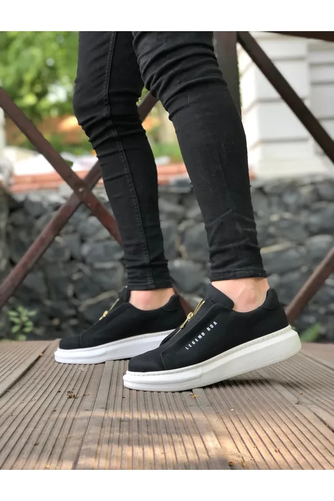 BOA Ba0310 Thick High Sole Zippered Black and White Men's Shoes