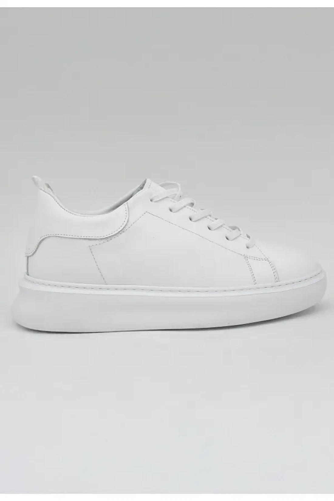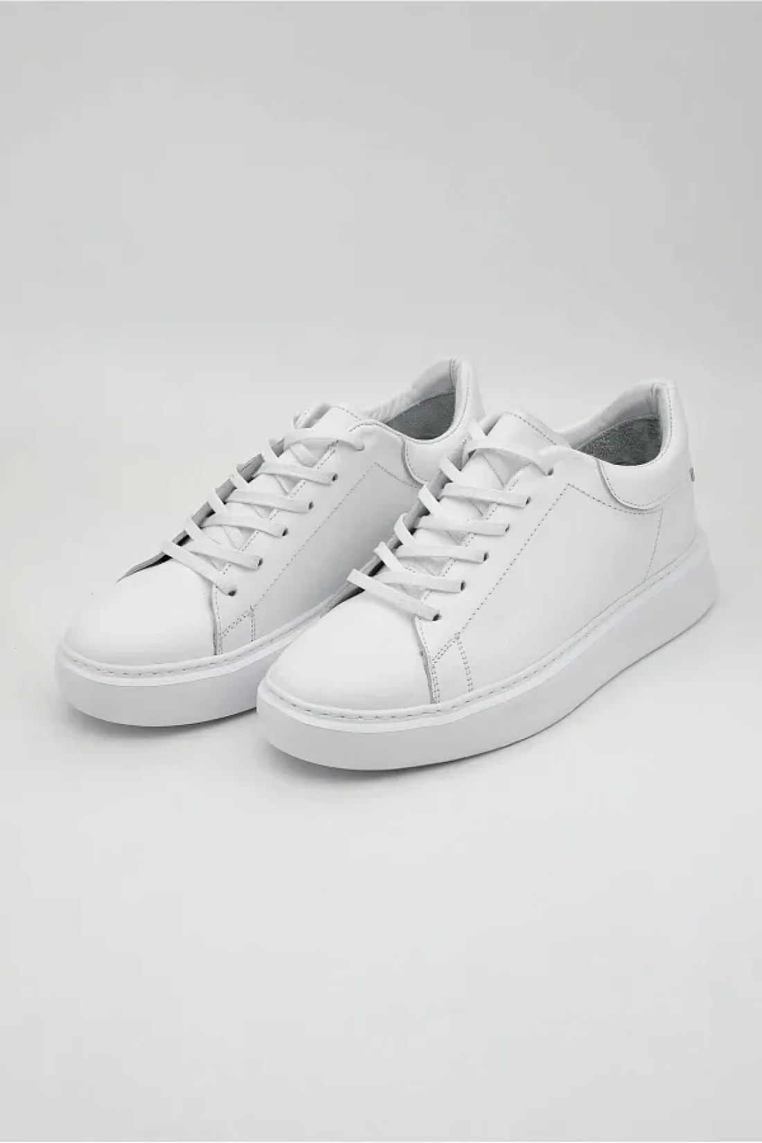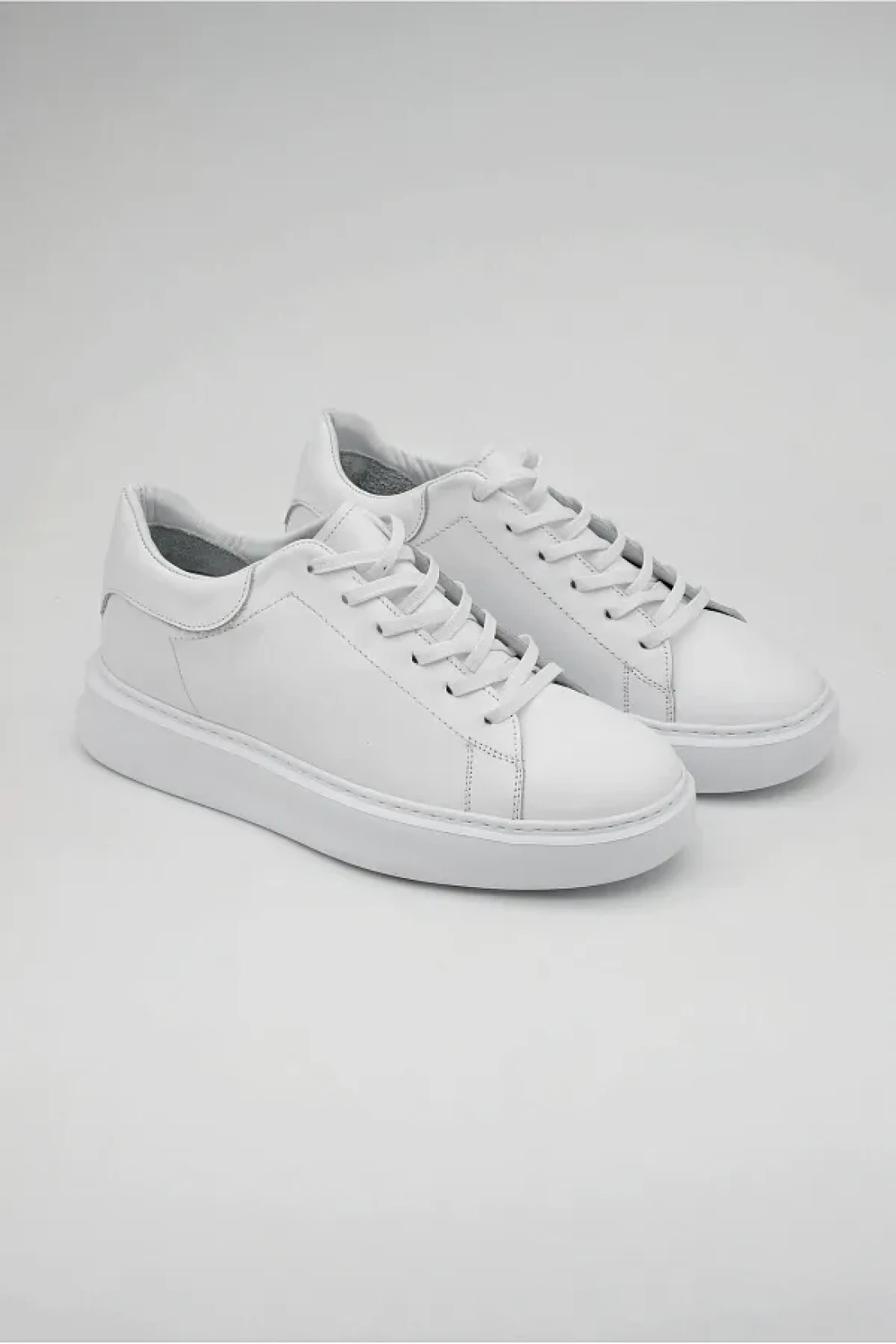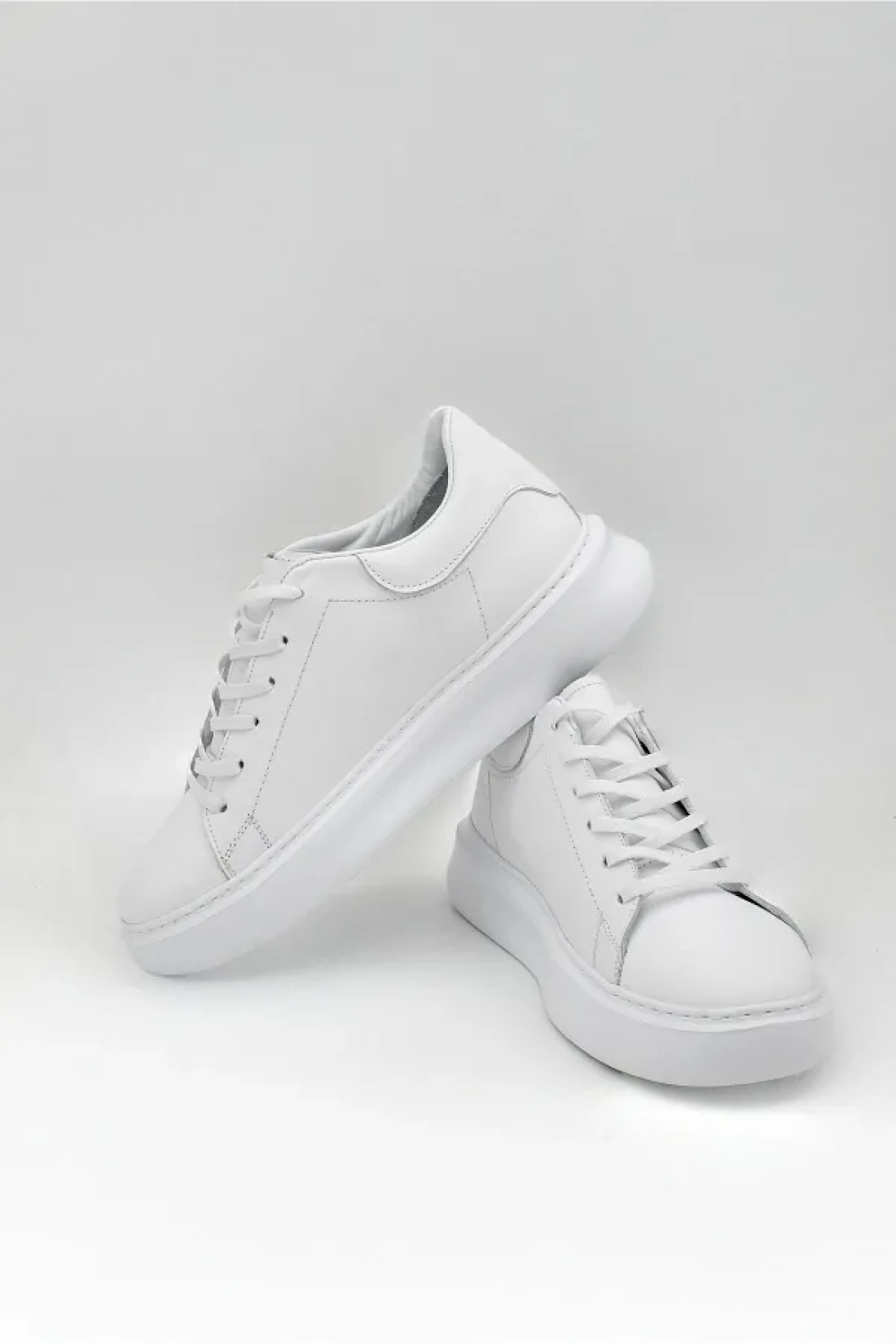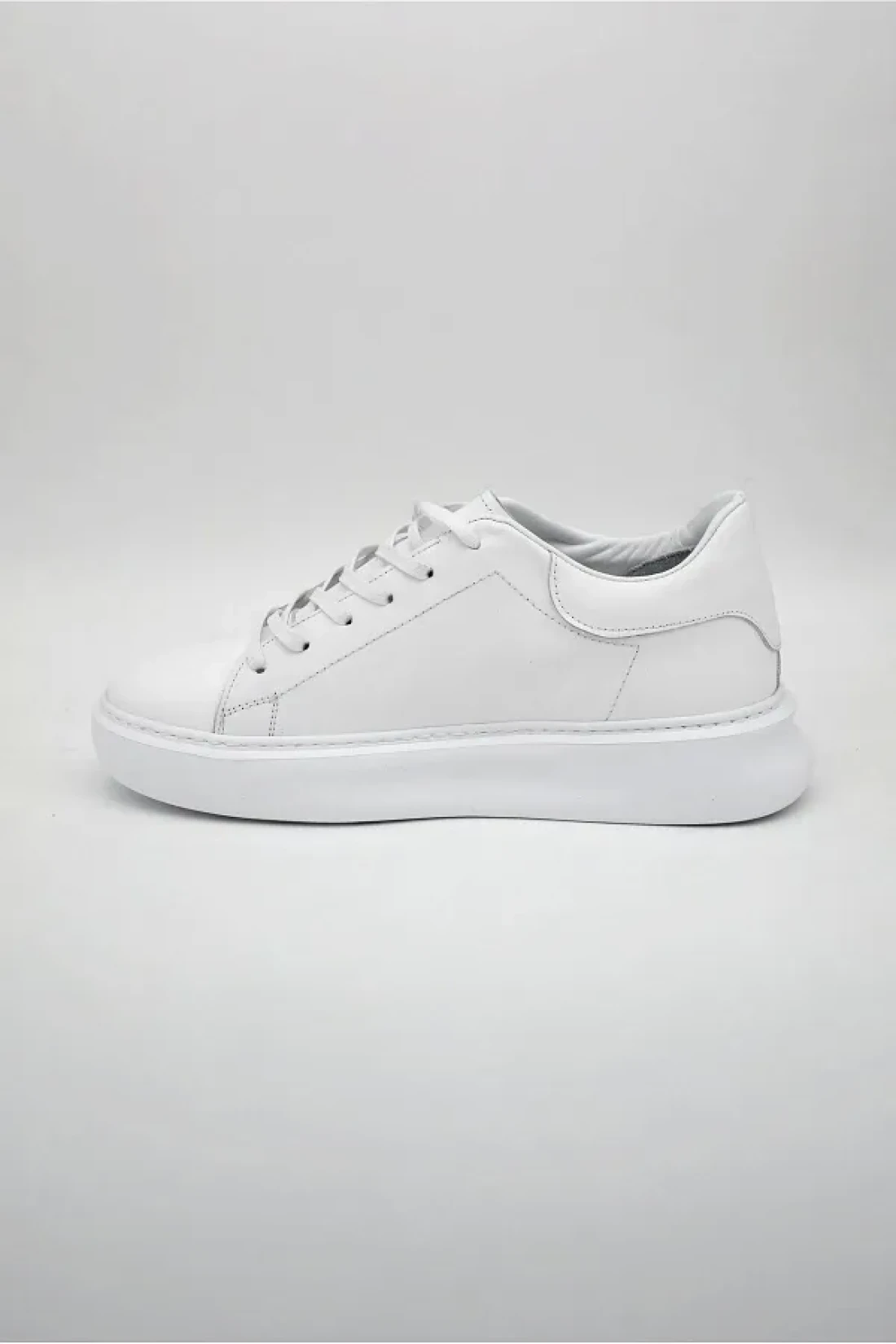 Elevold Mela Men's Genuine Leather 7 cm Height Increase White Sports Shoes