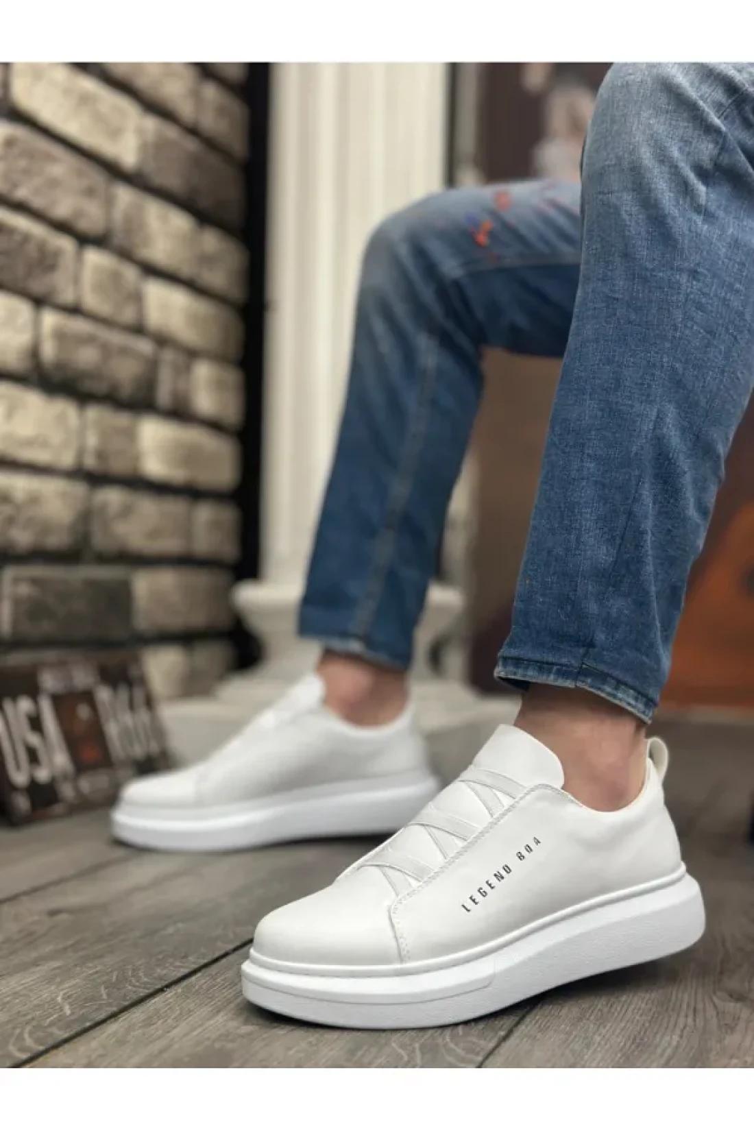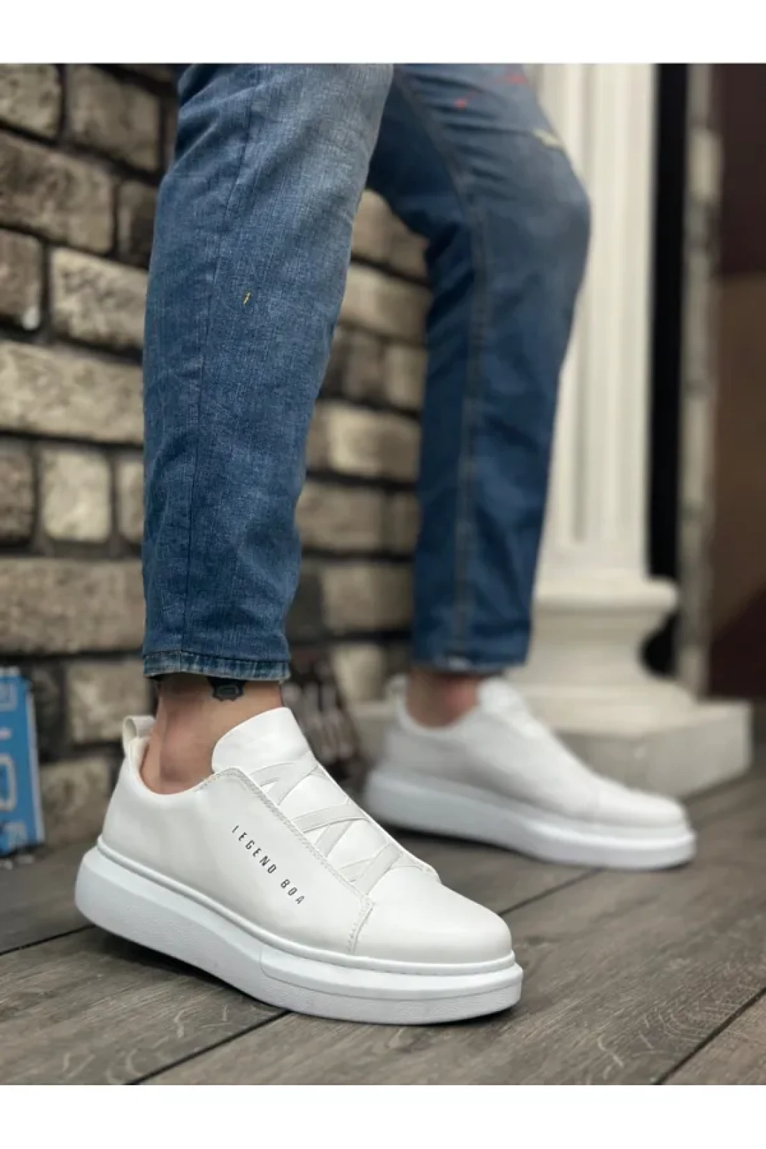 BOA Ba0134 Thick High Sole Cross Band White Men's Shoes