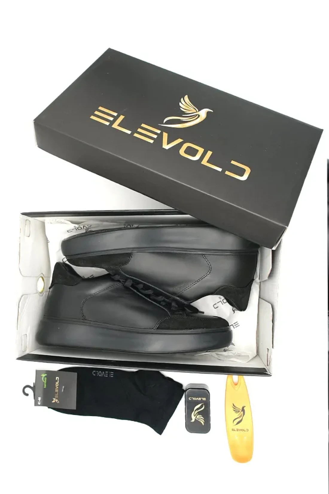 Elevold Man Men's Genuine Leather 7 cm Height Increase Black Sports Shoes