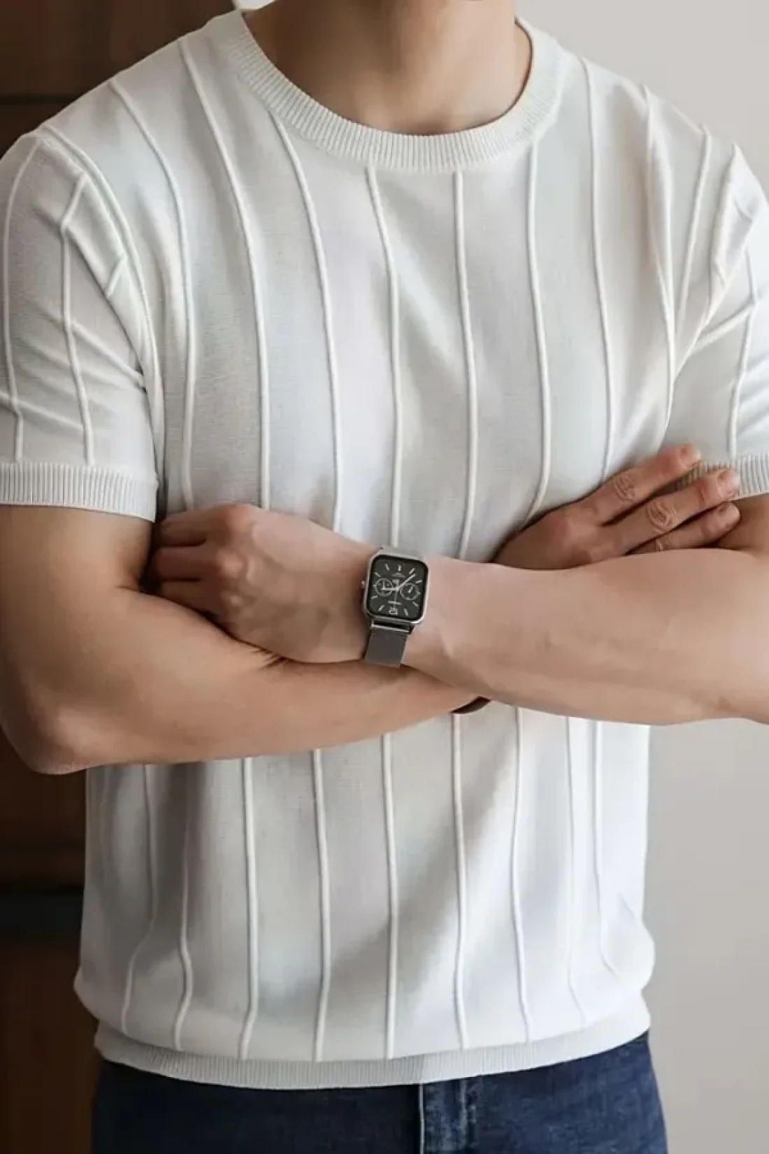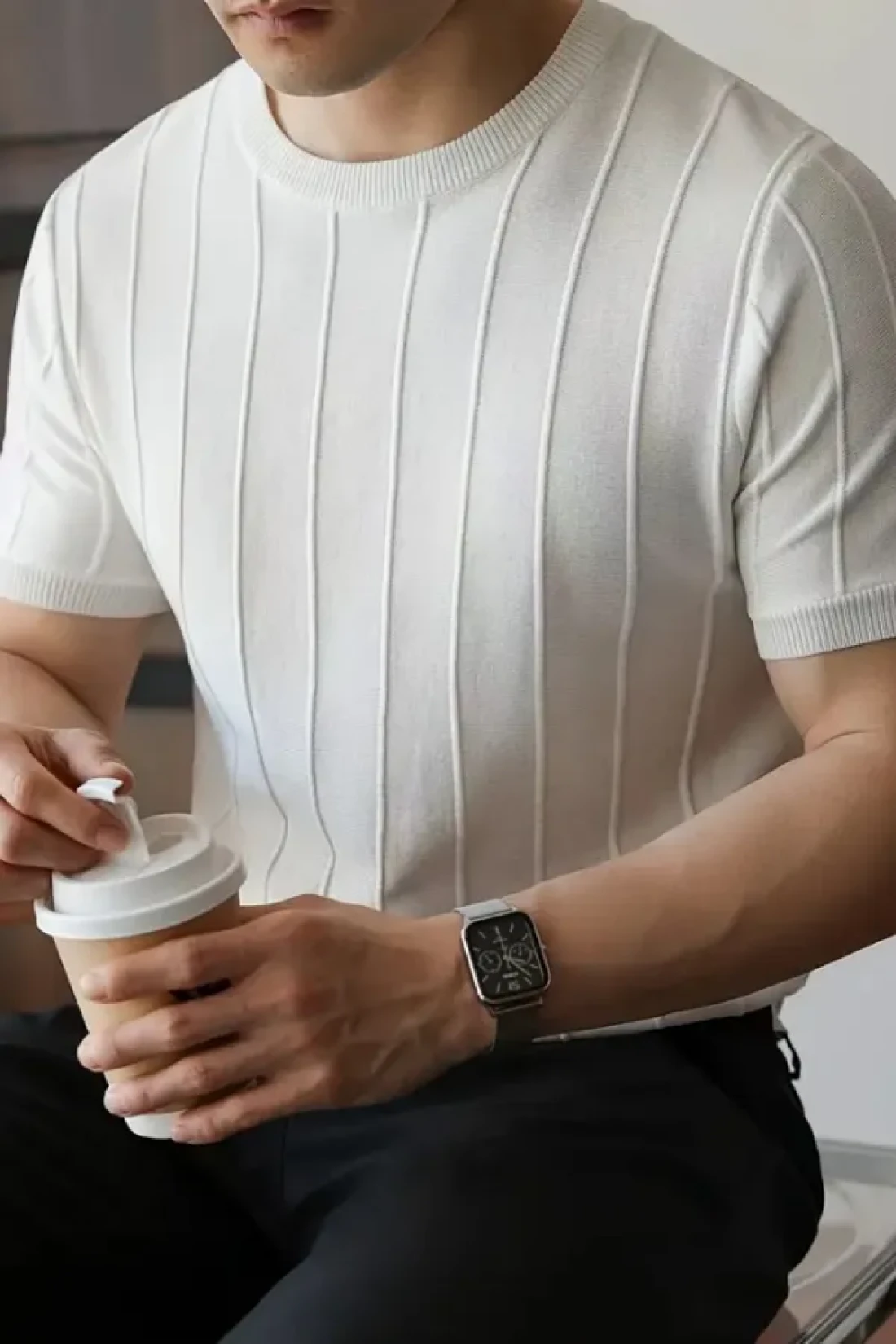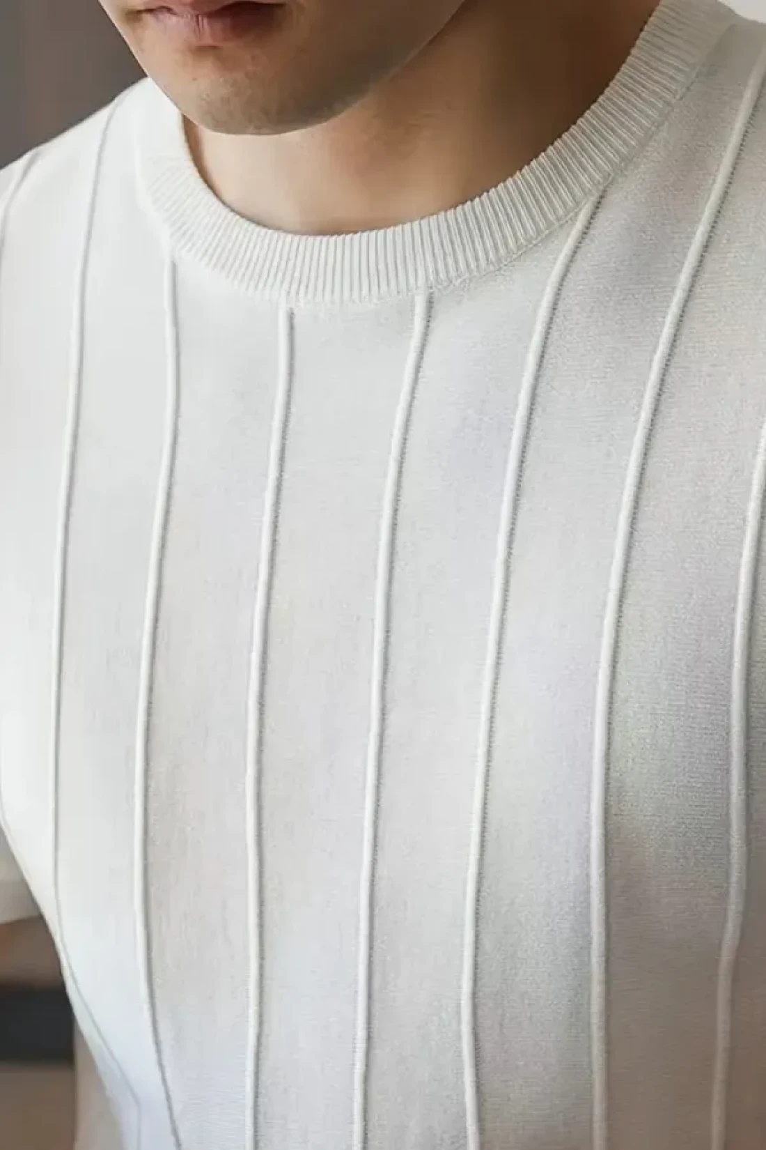 COOL TARZ Vibrant White Men's Round Neck Knitted T-Shirt