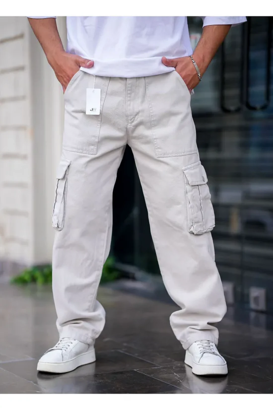 COOL TARZ Men's Cargo Pocket Baggy Trousers Gray Color