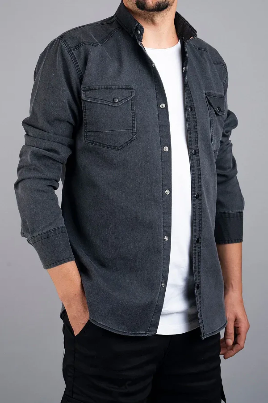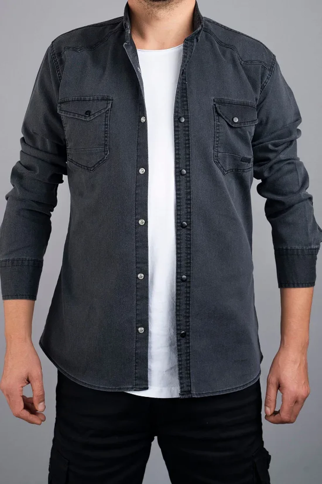 bombe Men's Denim Shirt Slim Fit Smoked 124