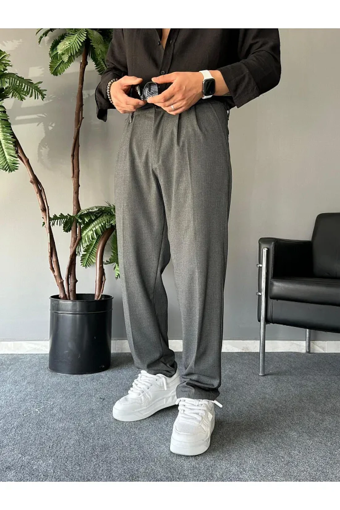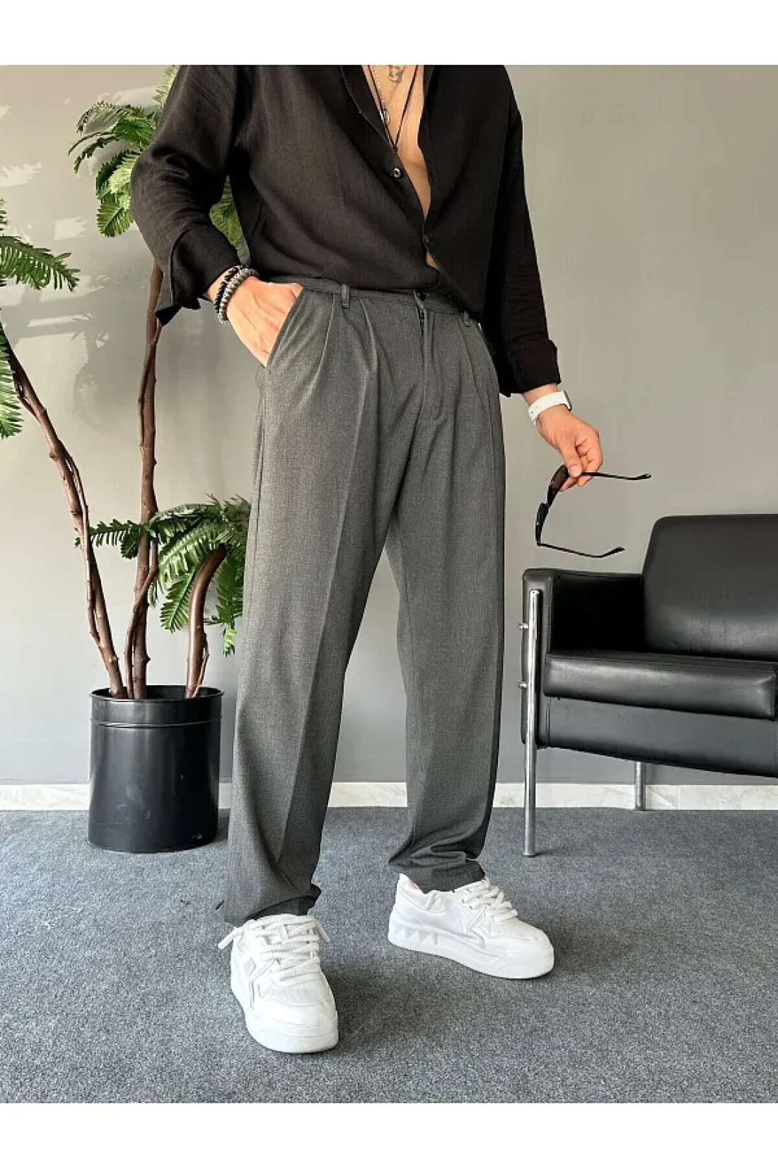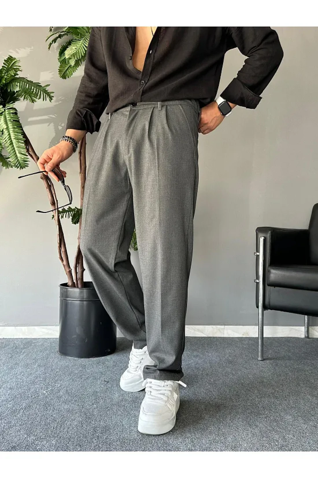 THEMANN Baggy Pleated Anthracite Pipe Leg Trousers