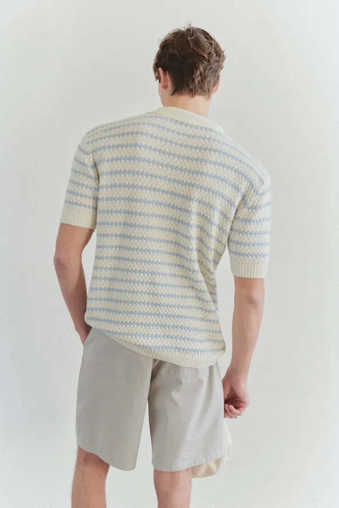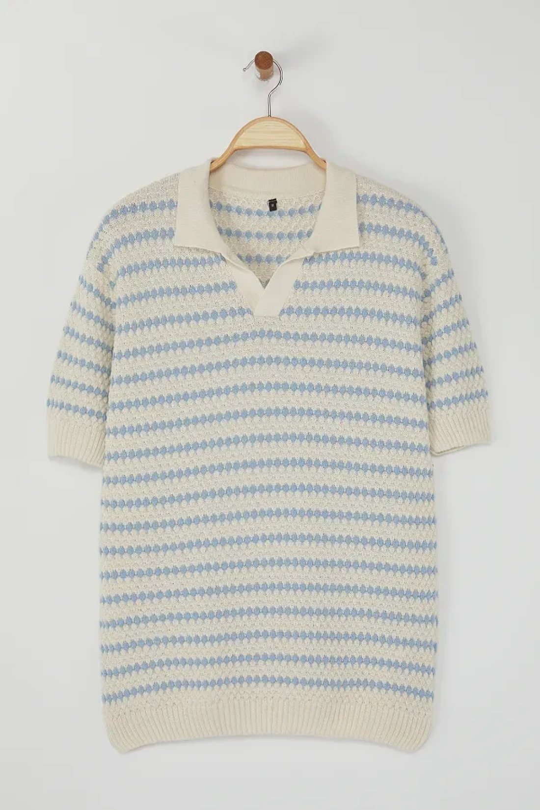 Collection Ecru Regular Striped Textured Knitwear Polo Neck T-Shirt Tmnss25Po00007