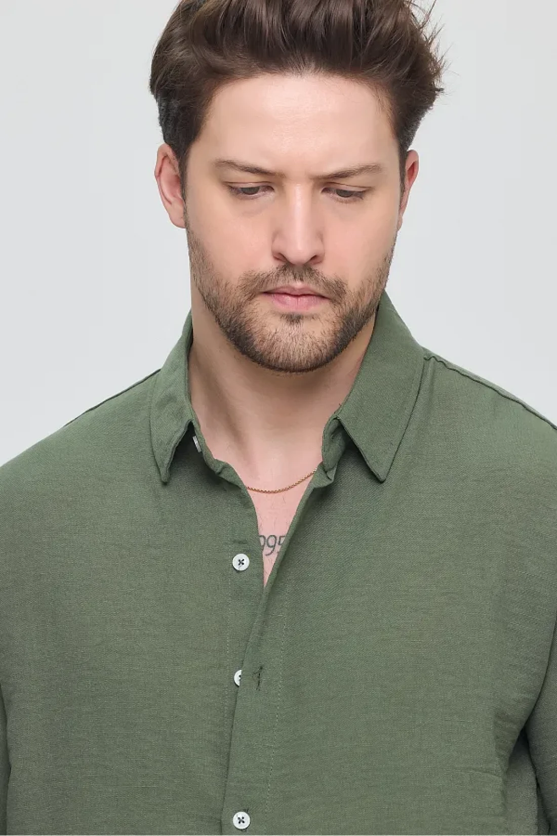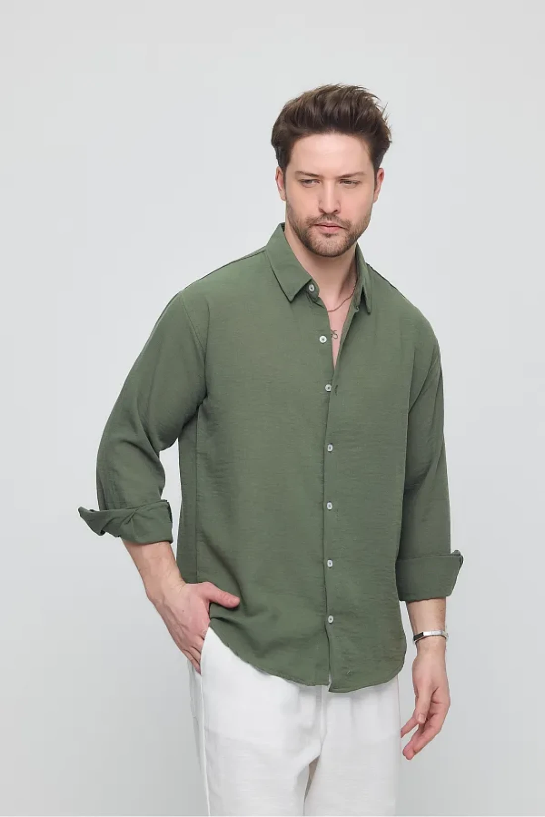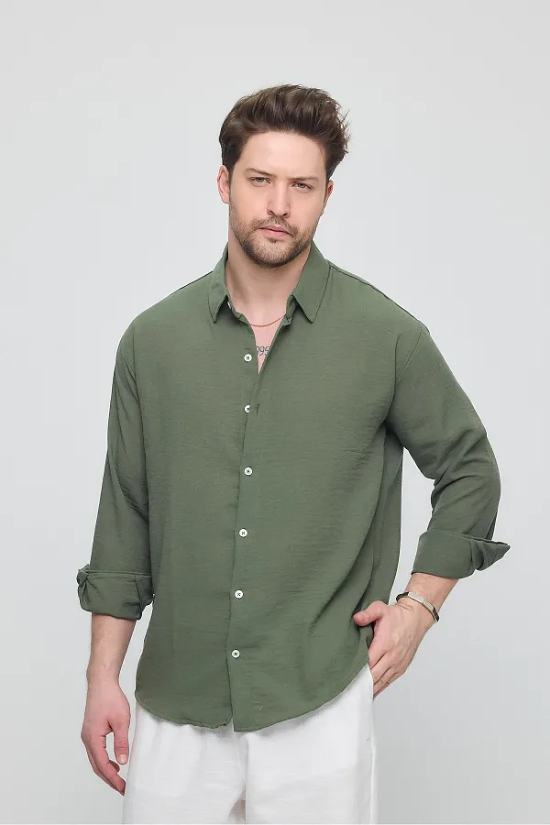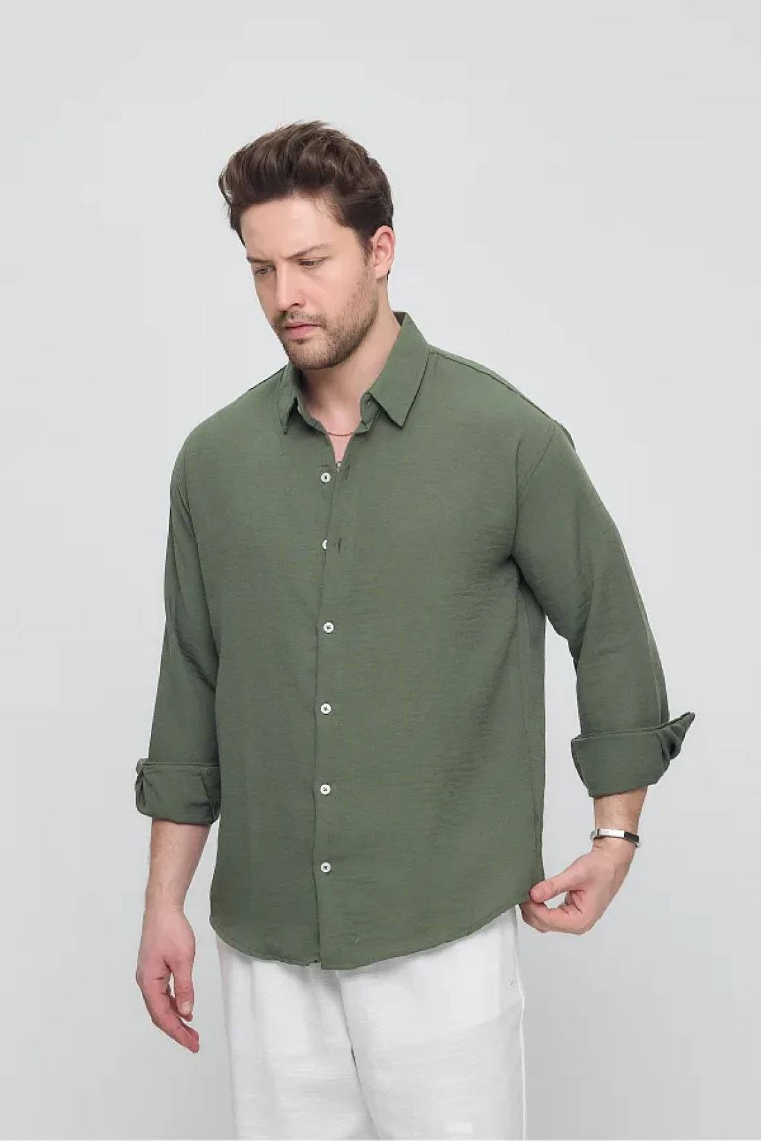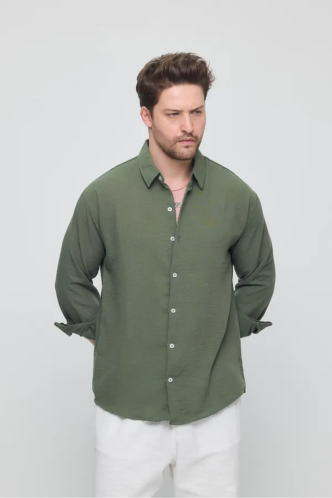 GEİO Men's Oversize Cut Linen Shirt